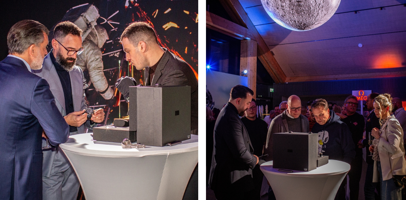 Emotionaler Höhepunkt des Abends war der Blick hinaus ins All: die Geschichte von Apollo 8, die Stille der „Dark Side of the Moon“ und das erste Licht, das die Mondoberfläche offenbarte. In der Speedmaster Dark Side und Grey Side of the Moon hat OMEGA diese historischen Momente verewigt – Zeitmesser, die Schatten und Licht gleichermaßen in sich tragen.