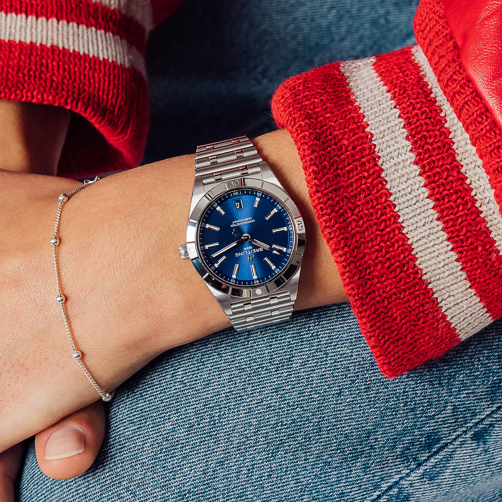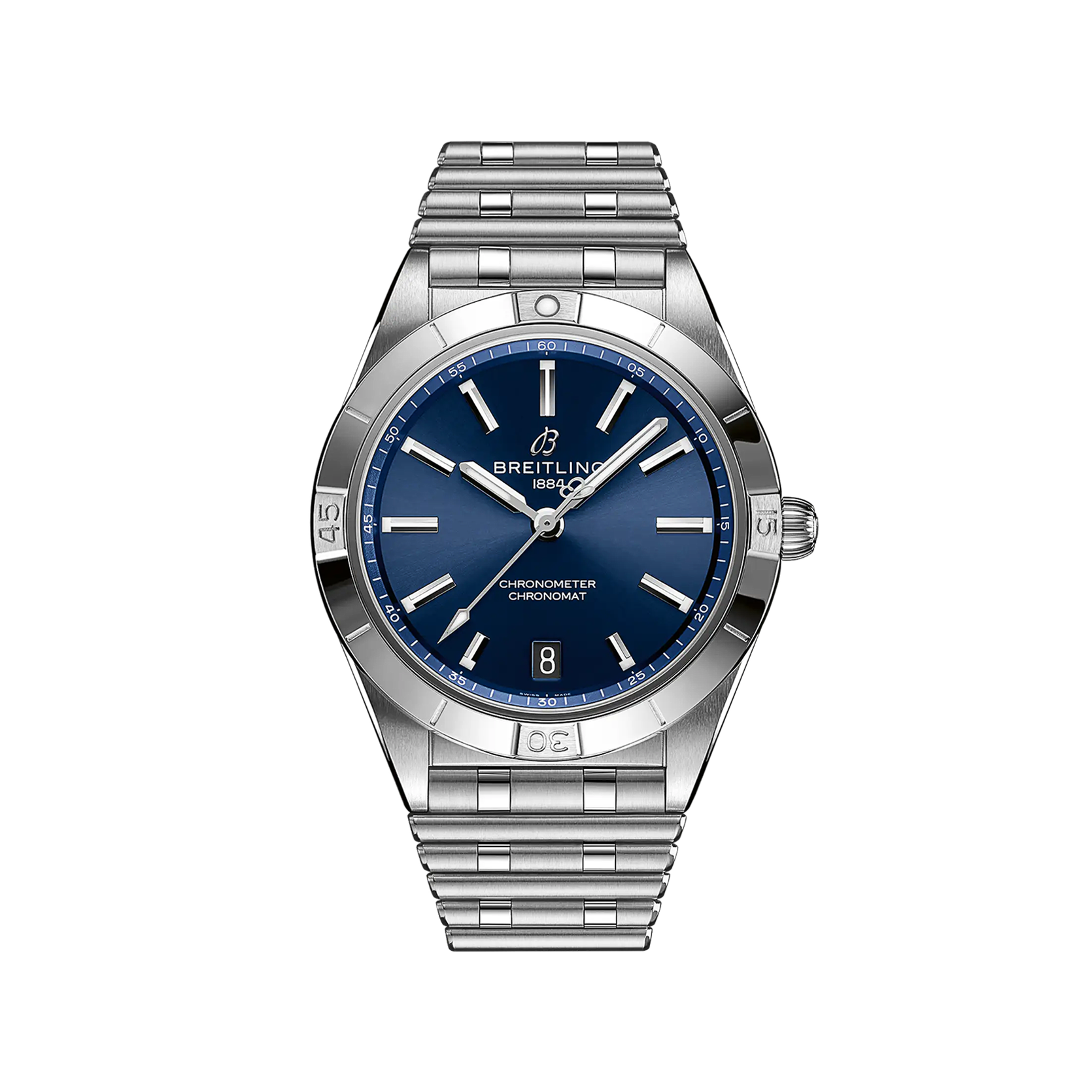 Ref. A10380101C1A1 - Stylish und doch elegant – die Chronomat Automatic 36 mit modernem Retro-Touch ist eine vielseitige, sportlich-schicke Uhr für jeden Anlass. Die breite Palette an Metallgehäusen reicht von coolem Edelstahl über die zweifarbigen Allrounder bis hin zu luxuriösem 18-karätigen Rotgold. Diamantbesetzte Lünetten und Zeiger sowie farbenfrohe Zifferblätter zaubern auf Wunsch ein zusätzliches Funkeln auf den Zeitmesser für Damen. Die Chronomat Automatic 36 wird von dem Breitling-Kaliber 10, einem COSC-zertifizierten Chronometer, angetrieben und auf dem legendären, bequemen Rouleaux-Armband mit Doppelfaltschliesse der Marke präsentiert.