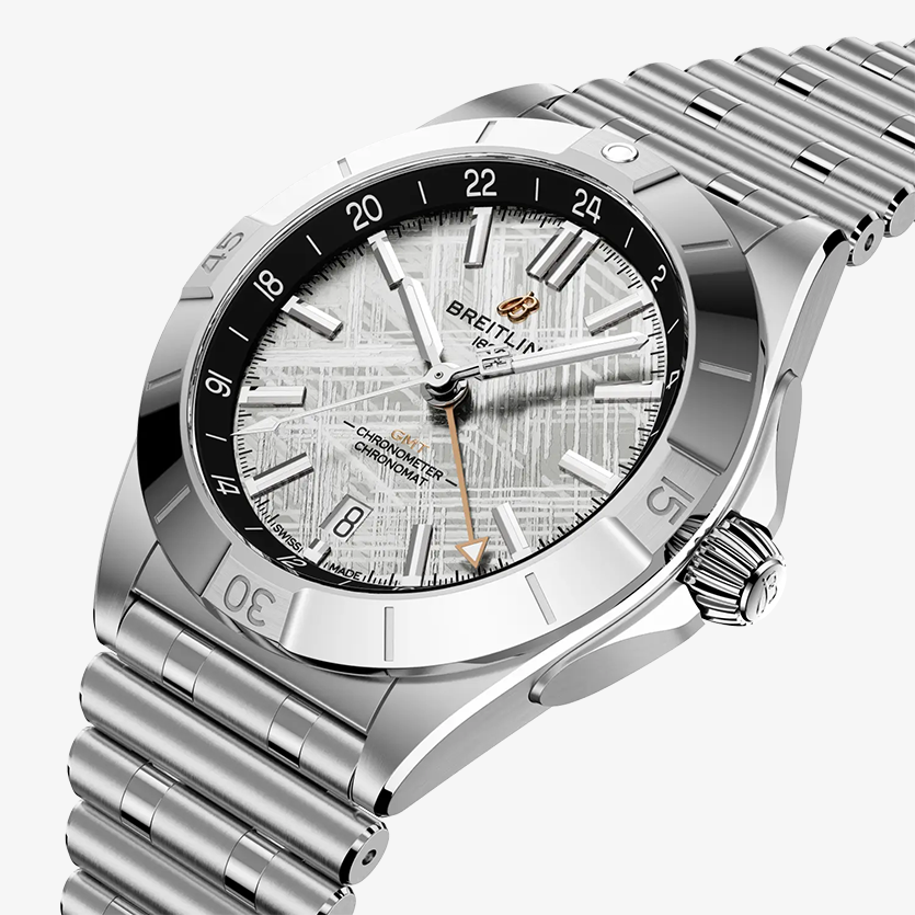 Ref.P323982A1F1A1 - Breitlings vielseitiger Chronomat 40 GMT Erling Haaland ist eine limitierte Auflage, die zusammen mit dem Fußballstar selbst entworfen wurde. Der auf nur 500 Exemplare limitierte Chronomat 40 GMT Erling Haaland aus Edelstahl verwendet ein Zifferblatt, das aus dem 4,5 Milliarden Jahre alten Meteoriten Muonionalusta geschliffen wurde, und trägt Erlings Initialen auf dem Gegengewicht des zentralen Sekundenzeigers. Es ist das erste Mal, dass wir dieses überirdische Material verwenden, aber in Anbetracht seiner Verbindung zu einem Fußballer mit außergewöhnlichen Fähigkeiten war es ein guter Zeitpunkt, es einzuführen. Der Chronomat 40 GMT Erling Haaland verfügt über die klassischen Spezifikationen und Designelemente, die sie zu Ihrem perfekten Allrounder machen: das klassische, integrierte „Rouleaux“-Edelstahlarmband oder Kautschukband, erhabene Reiterlaschen, 200 m Wasserdichtigkeit und eine verschraubte Krone. Die Limitierung „One of 500“ ist auf dem massiven Gehäuseboden eingraviert. Die Uhr wird in einer hölzernen Präsentationsbox geliefert, die mit einem signierten Dankesschreiben von Haaland versehen ist, das den persönlichen Charakter der Zusammenarbeit unterstreicht. Für diejenigen, die Erlings Kraft, Geschwindigkeit und kreativen Spielstil nachvollziehen können, oder für diejenigen, die ein vielseitiges Stück mit einem einzigartigen Zifferblatt zu schätzen wissen – kein Zifferblatt gleicht dem anderen – ist dies Ihre ideale Wahl.