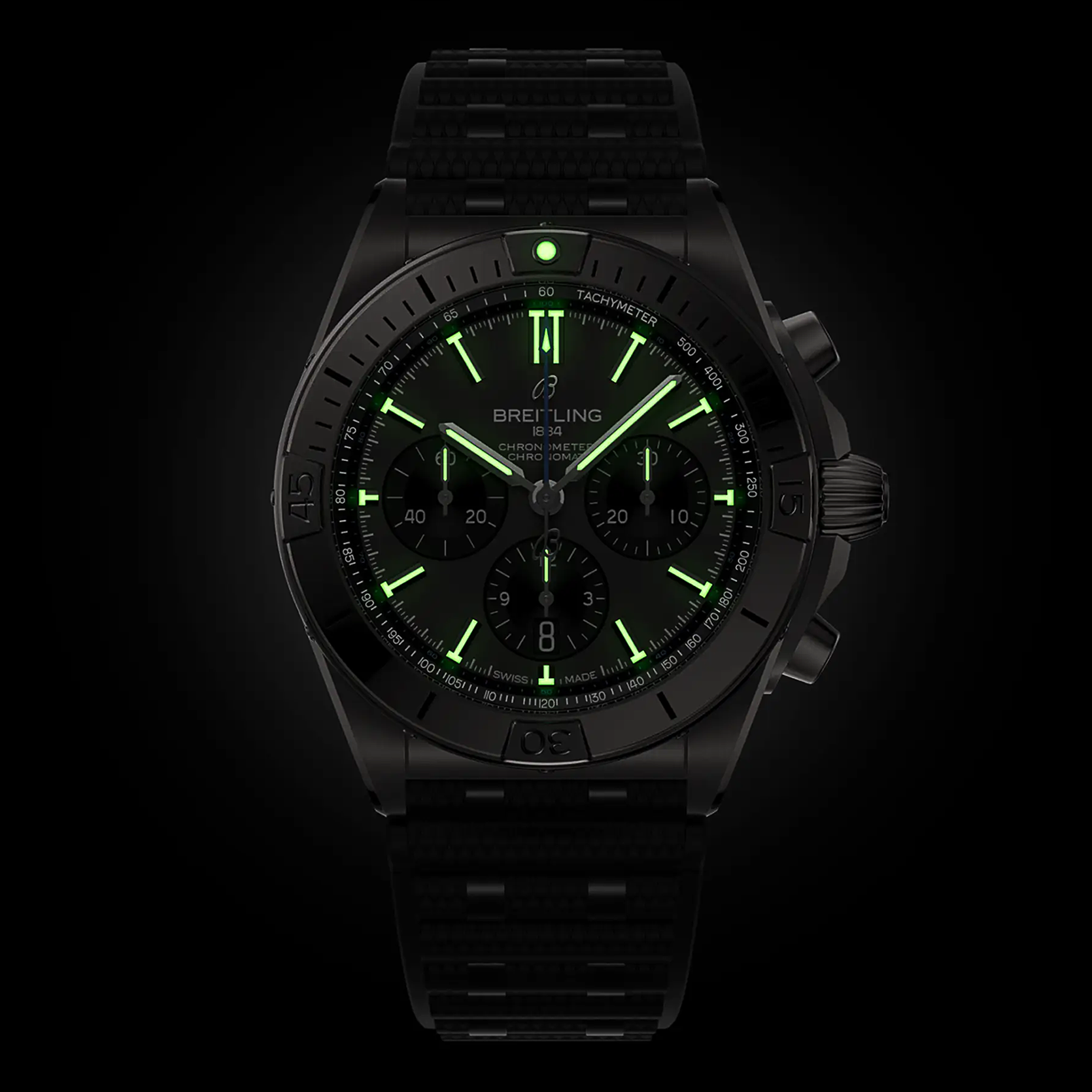 Ref. EB0134101M1S1 - Breitlings Uhr für jede Situation und Aktivität. Die Chronomat nimmt einen wichtigen Platz in Breitlings Geschichte ein. Die Markteinführung erfolgte 1984, zu einer Zeit, in der extraflache Quarzuhren an der Tagesordnung waren. Breitling setzte dabei mutig auf eine eindrucksvoll proportionierte mechanische Uhr. Die Chronomat basiert auf der Uhr Frecce Tricolori, die in Zusammenarbeit mit der berühmten italienischen Flugstaffel entwickelt und 1983 auf dem Markt eingeführt wurde. Das Modell feierte stilvoll das hundertjährige Bestehen von Breitling und markierte die Rückkehr des mechanischen Chronographen auf seinen rechtmässigen Platz innerhalb der Marke, die ihren weltweiten Ruf auf diesen unglaublichen Uhren aufbaute. Die in verschiedenen Materialien wie Edelstahl, 18-karätigem Rotgold und Titan erhältliche Chronomat verfügt über ein Gehäuse von 42 mm und eine unverwechselbare Lünette mit vier Reitern bei den Viertelstundenindizes. Sie ist mit verschiedenen farbenfrohen Zifferblättern erhältlich und auf das charakteristische Rouleaux-Armband aus Metall oder Kautschuk abgestimmt. Originalgetreu wird die Chronomat vom Breitling-Manufakturkaliber 01, einem COSC-zertifizierten Chronometer, angetrieben.