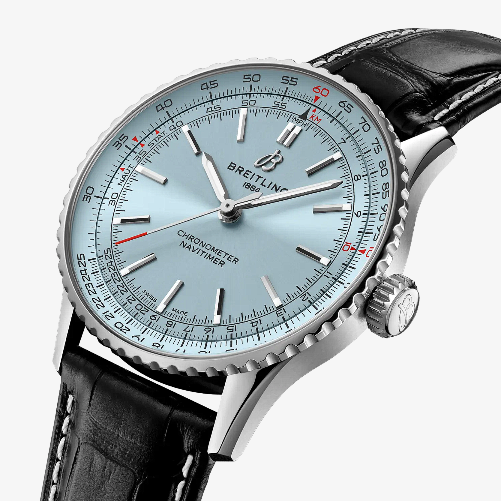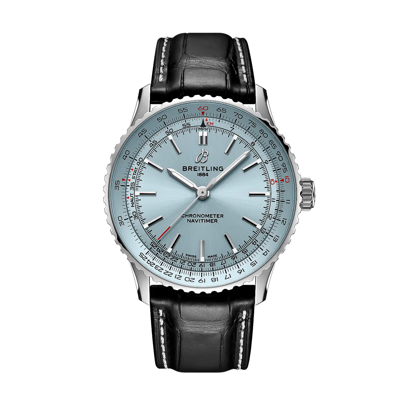 Sie steht als eine der grossartigsten Uhren aller Zeiten auf den Sammlerlisten. Was 1952 als Instrument für Piloten begann, hat inzwischen eine tiefe Bedeutung für alle, die dieser Zeitmesser auf ihrer persönlichen Reise begleitet. Die Navitimer Automatic ...und Automatic GMT 41 präsentieren die Essenz des ikonischen Looks, verzichten auf den Chronographen und bewahren dabei ein ausgewogenes Zifferblatt. Die mittige Platzierung der 24-Stunden-Skala auf dem klaren Gesicht der GMT und der Automatic hebt den komplexen Rechenschieber hervor und veredelt die gesamte Ästhetik. Als weitere Verfeinerung der Kollektion wurde eine Lünette mit Griffmulde für einen zeitgenössischen Touch integriert, während abwechselnd polierte und gebürstete Finishes ein dynamisches Lichtspiel erzeugen. Armbänder aus Alligatorleder und mit nahtloser Doppelfaltschliesse garantieren höchsten Komfort. Das Angebot umfasst farbenfrohe Zifferblätter, die wahlweise in Edelstahl oder 18-karätiges Rotgold gefasst sind. Diese Neuerfindung der Navitimer, in der Klassik und Modernität zusammenfinden, ist für Uhrenbegeisterte und Stilbewusste gleichermassen geschaffen und spiegelt Breitlings Verpflichtung zu Tradition und Innovation in jedem Zeitmesser wider.