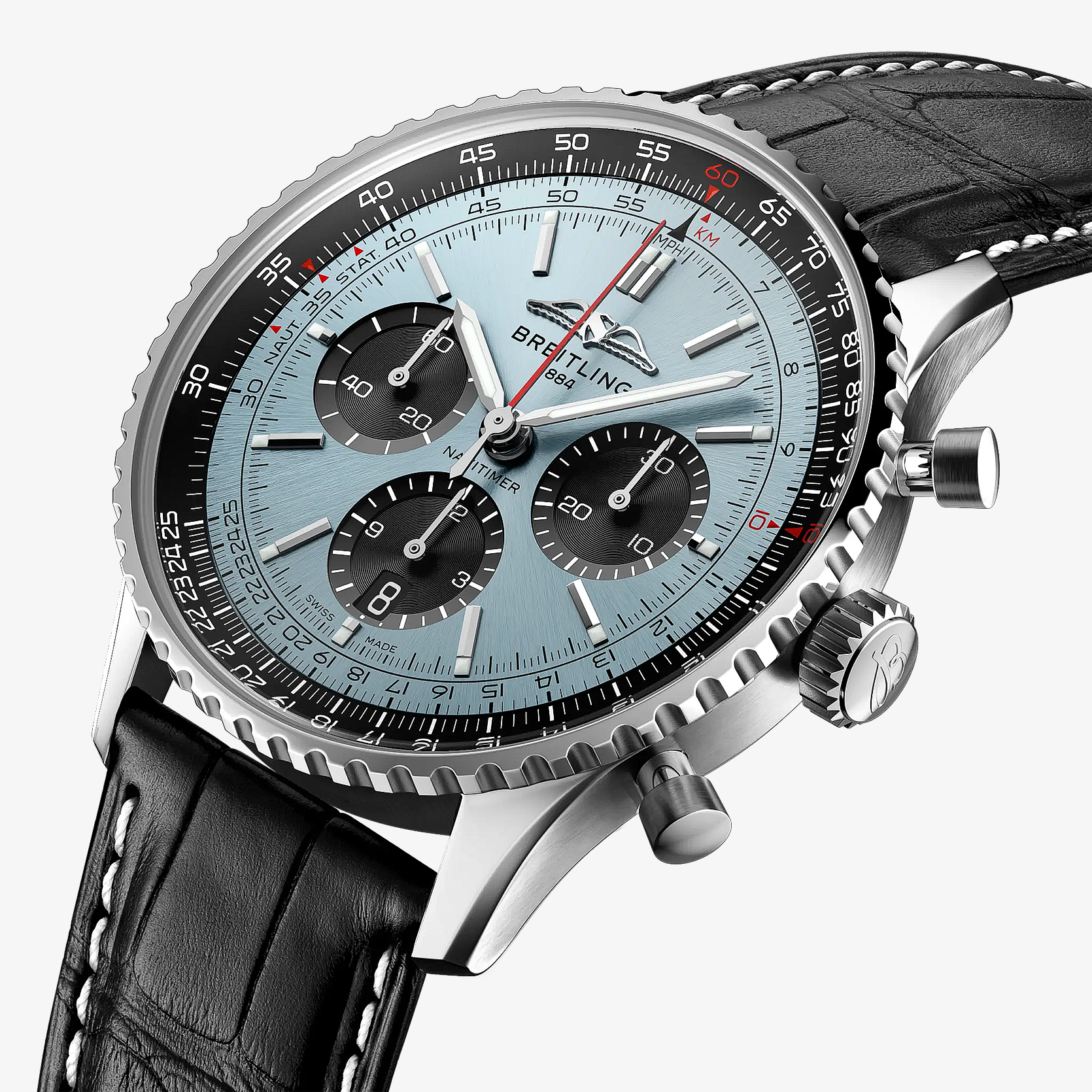 Der legendäre Fliegerchronograph von Breitling – für die Reise. Im Jahr 1952 entwickelt Willy Breitling einen Chronographen mit einem kreisförmigen Rechenschieber, mit dem Piloten alle notwendigen Flugberechnungen durchführen können.