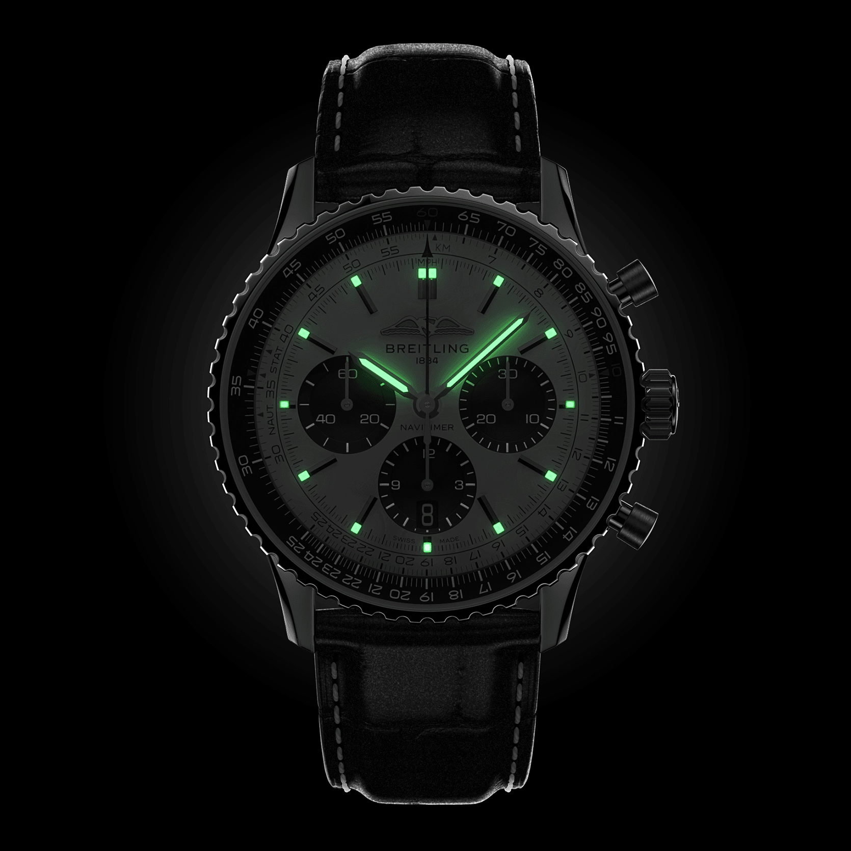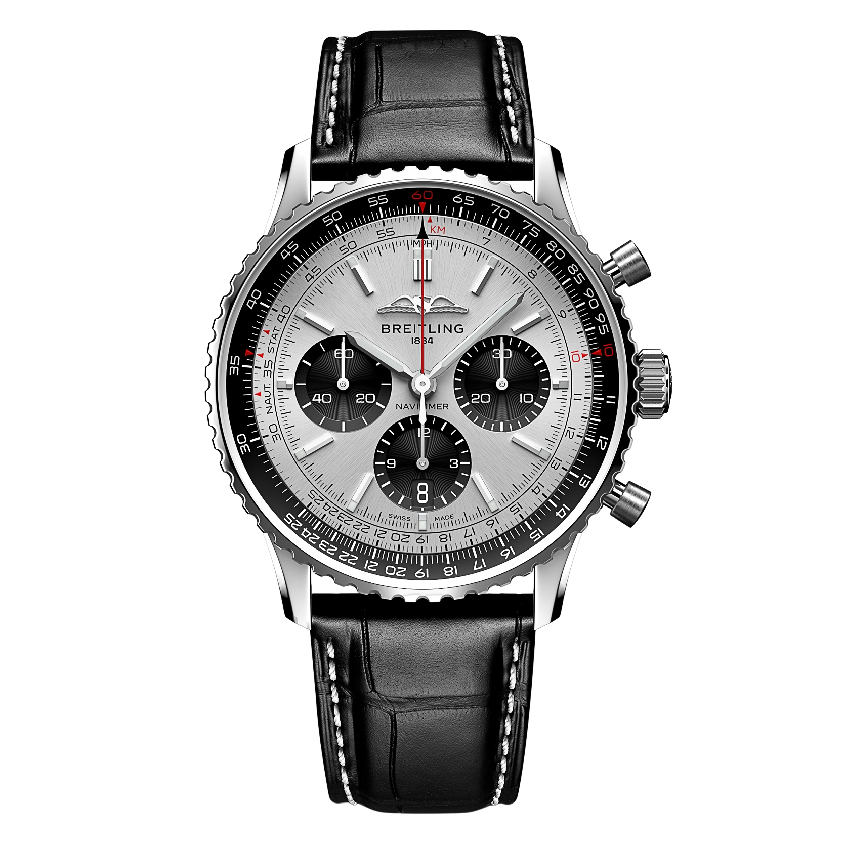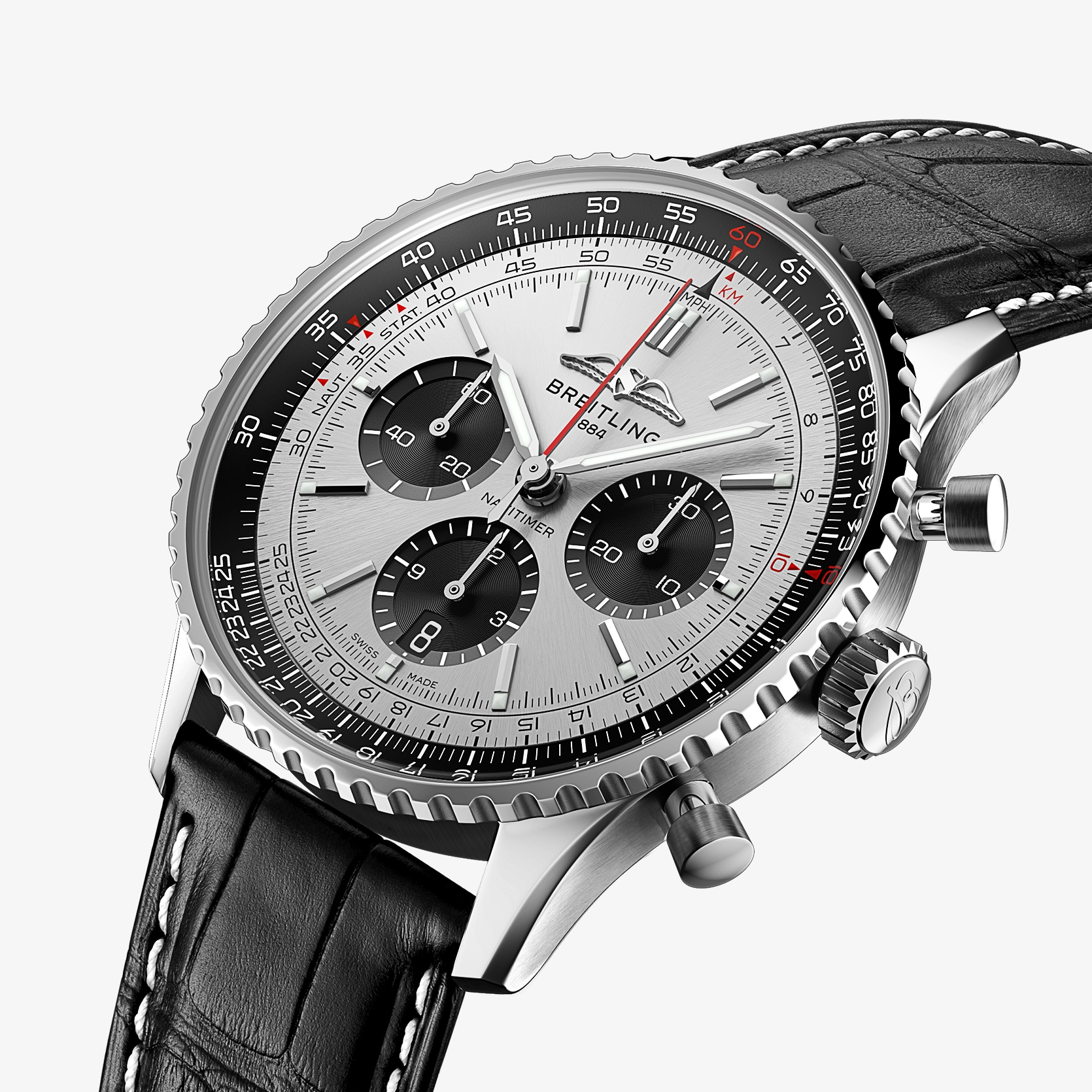 Ref. AB0138241G1P1 - Der legendäre Fliegerchronograph von Breitling – für die Reise. Im Jahr 1952 entwickelt Willy Breitling einen Chronographen mit einem kreisförmigen Rechenschieber, mit dem Piloten alle notwendigen Flugberechnungen durchführen können.