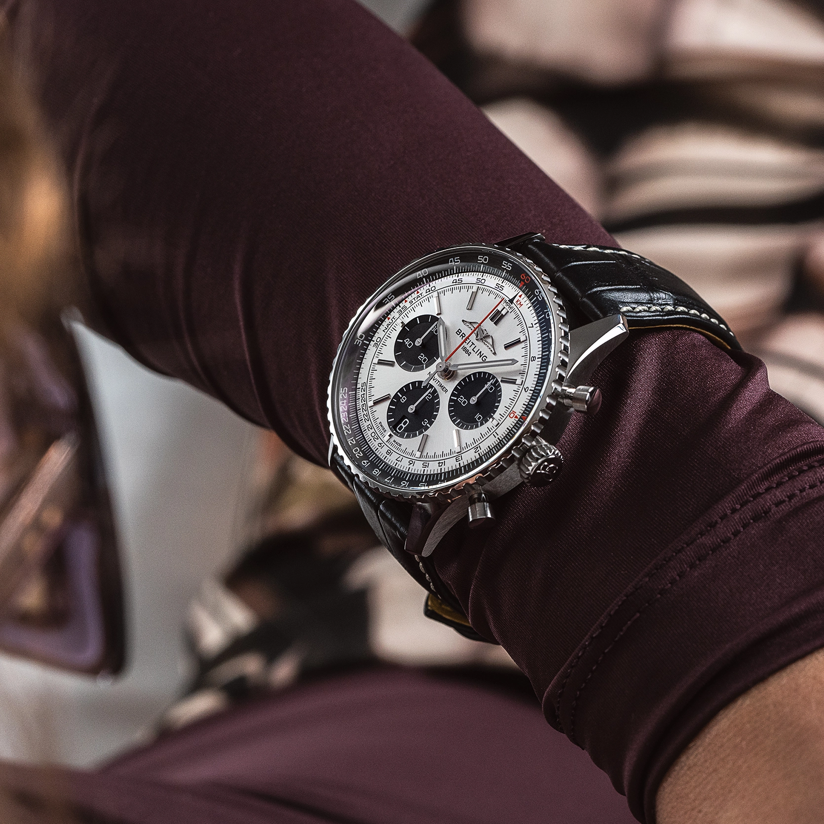 Zwei Jahre später macht die renommierte amerikanische Vereinigung AOPA (Aircraft Owners and Pilots Association) diese Ausführung zu ihrem offiziellen Zeitmesser. Die «Navigation Timer» – oder Navitimer – ist geboren. Die AOPA ist und bleibt der grösste Pilotenverein der Welt und zählt fast jeden US-Piloten zu ihren Mitgliedern. Als De-facto-Fliegeruhr während der glorreichen Ära der zivilen Luftfahrt wurde die Navitimer von Piloten und Flugbegeisterten gleichermassen getragen. 1962 schaffte sie es am Handgelenk des Astronauten Scott Carpenter sogar ins Weltall. Doch nicht nur Piloten waren von der unbändigen Ästhetik der Uhr beeindruckt. Berühmtheiten wie Miles Davis oder Serge Gainsbourg gehörten ebenfalls zu ihren Fans und bewiesen damit, dass die Navitimer nicht nur stilvoll, sondern auch funktional war. Seit ihrer Markteinfürung vor 70 Jahren wurden diverse Modelle dieser Breitling Ikone lanciert, doch diese neue Navitimer überzeugt mit ihren klassischen Eigenschaften, die mithilfe moderner Verbesserungen noch verfeinert wurden. Ein abgeflachter Rechenschieber und ein gewölbtes Glas schaffen den Eindruck eines schlankeren Profils. Der Wechsel von polierten und gebürsteten Metallelementen sorgt für ein schimmerndes und dennoch dezentes Aussehen. Es sind vor allem die neuen Farben in Blau-, Grün- und Kupfertönen, die die aktualisierten Zifferblattoptionen definieren. Und wenn es eine Neuerung gibt, die für Nostalgie sorgen wird, sind es die AOPA-Flügel, die nun wieder dort sind, wo sie ursprünglich waren – bei 12 Uhr. Seit bereits 70 Jahren erfreut sich die Original-Fliegeruhr grosser Beliebtheit bei Piloten und Trendsettern gleichermassen. Getragen von Astronauten im Weltraum und von den grössten Stars der Welt, handelt es sich um den legendärsten Zeitmesser von Breitling und um eine der unverwechselbarsten Uhren aller Zeiten.