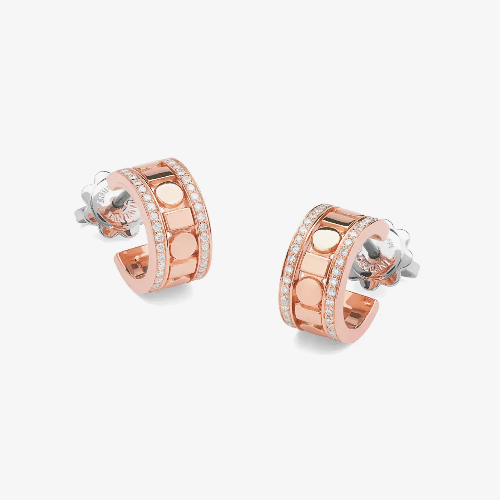 Der Schmuck aus der Kollektion Belle Époque Reel wird von einem starken Wert, der Energie, inspiriert. Das Kino und die bewegte Kunst - das im Gründer der Maison Enrico Grassi Damiani den kreativen Funken für die ursprüngliche Belle Époque Kollektion gezündet hat - werden mit zeitgemäßer Sprache neu interpretiert, die fähig ist, eine globale Community anzuziehen. Die Kollektion umfasst ikonischen Schmuck für neue Trendsetter, wie Ringe, Ohrringe, flexible Armbänder und Armreifen aus Weiß-, Gelb und Roségold, in den kostbareren Pavè-Versionen mit Diamanten geschmückt. Die Ringe und Kettenanhänger haben ein zentrales Element, das sich bei Berührung um sich selbst dreht und zum Leben erwacht, wobei es auf die kontinuierliche Bewegung eines digitalen Reels erinnert. Kreise und Rechtecke, Formen in Formen, die auch das Design der Kollektion Belle Époque prägen, verfolgen sich ins Unendliche, genau wie die Videos eines Feed in den sozialen Kanälen: ein Symbol für Einheit und Fortschritt.