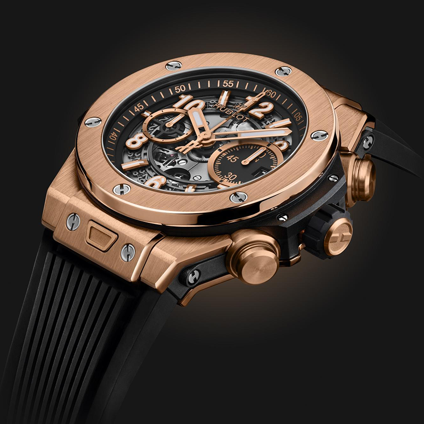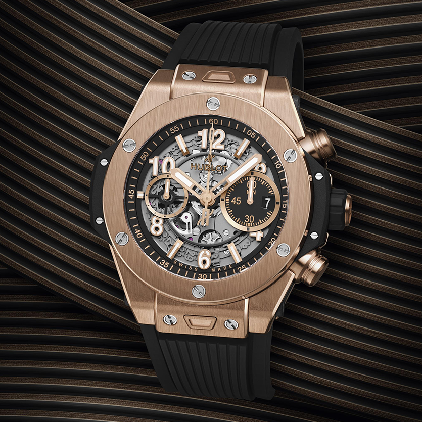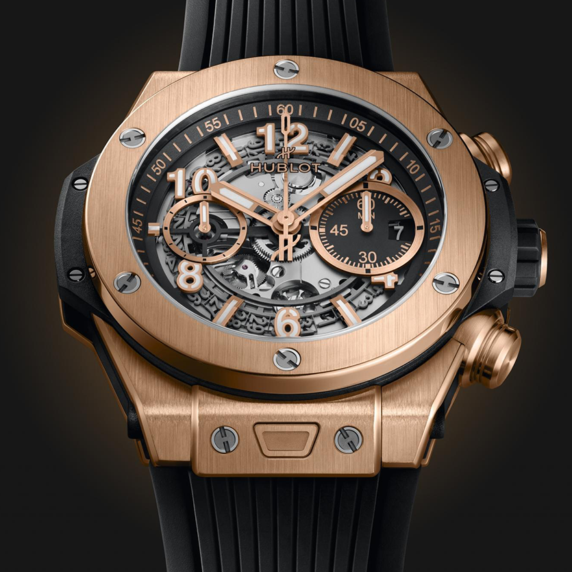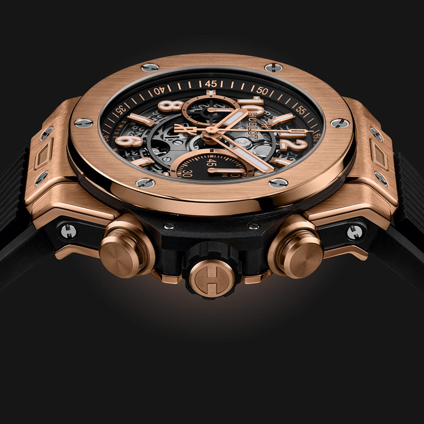 Satiniertes und poliertes 18 Karat King Gold mit 6 H-förmigen Schrauben aus Titan