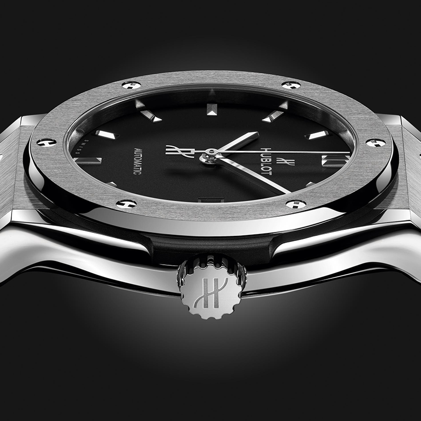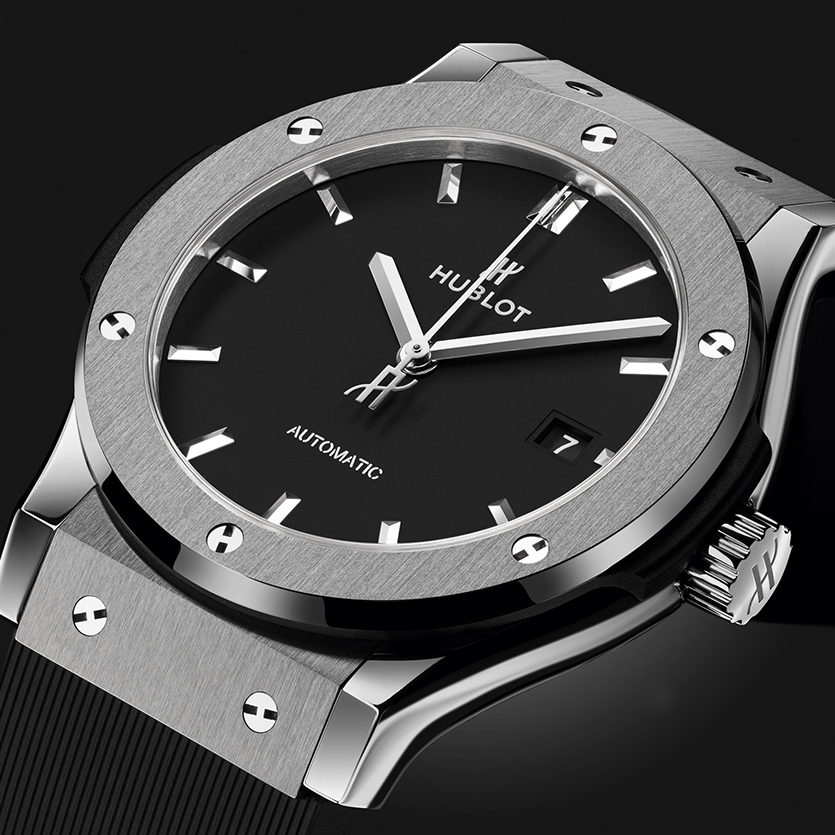 Vertikal satiniertes Titan mit 6 H-förmigen Schrauben aus Titan