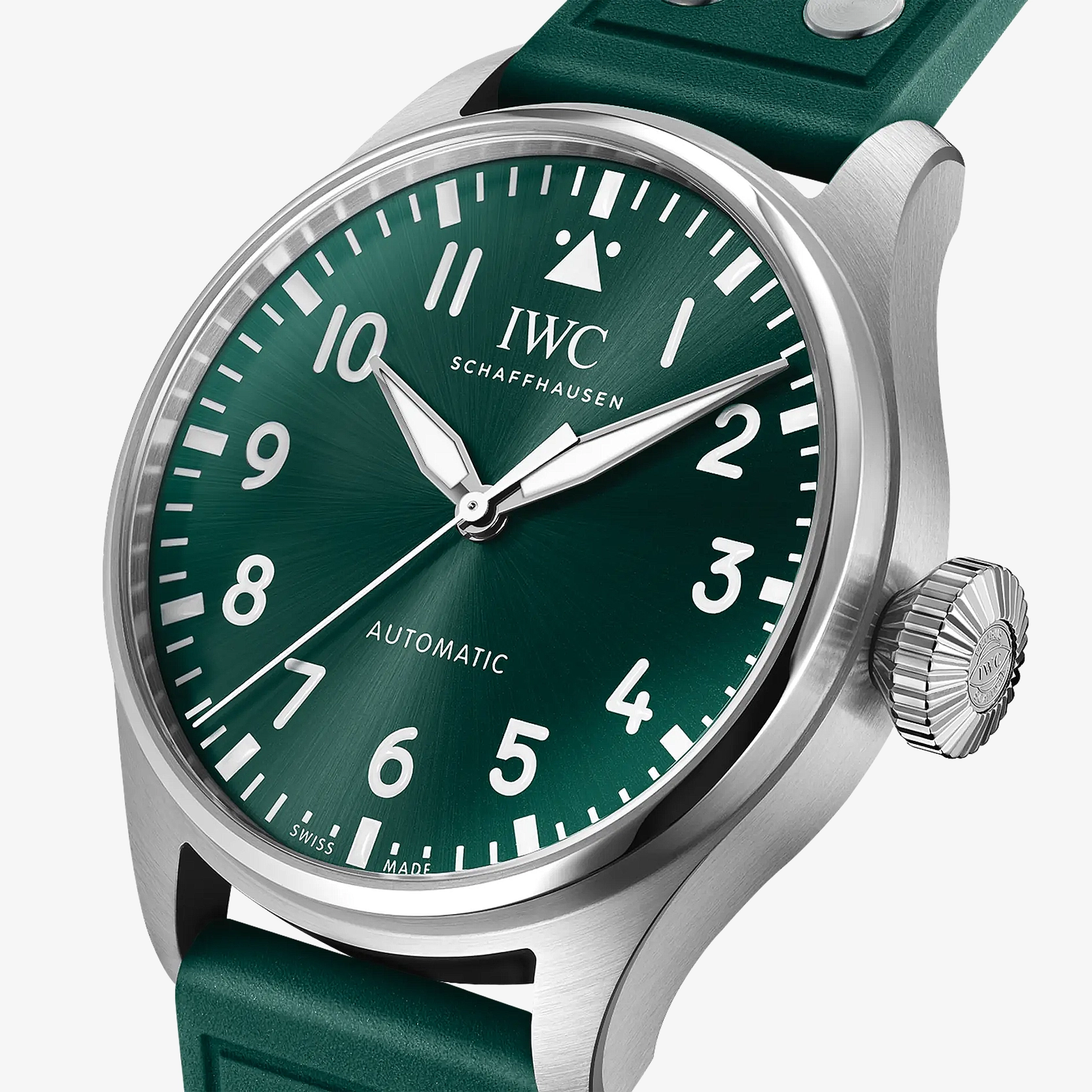 Ref. IW329306 - Diese Big Pilot’s Watch 43 verfügt über ein Edelstahlgehäuse, ein Zifferblatt in «British Racing Green» sowie ein grünes Kautschukarmband.
