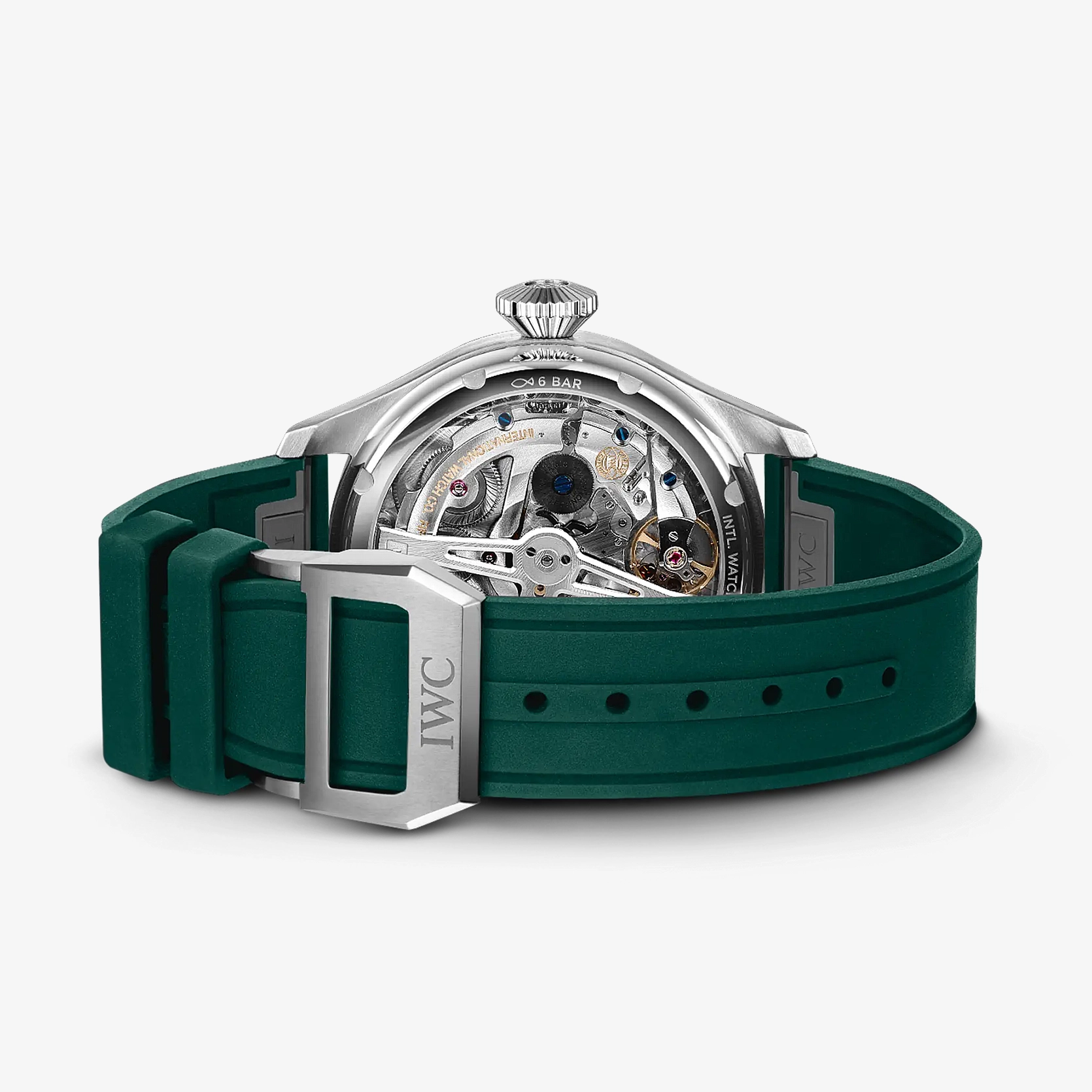 Ref. IW503608 - Die Big Pilot’s Watch Perpetual Calendar in Edelstahl mit einem Zifferblatt in «Racing Green» führt die langjährige Tradition von Uhren mit ewigem Kalender in der Big Pilot’s Kollektion fort.