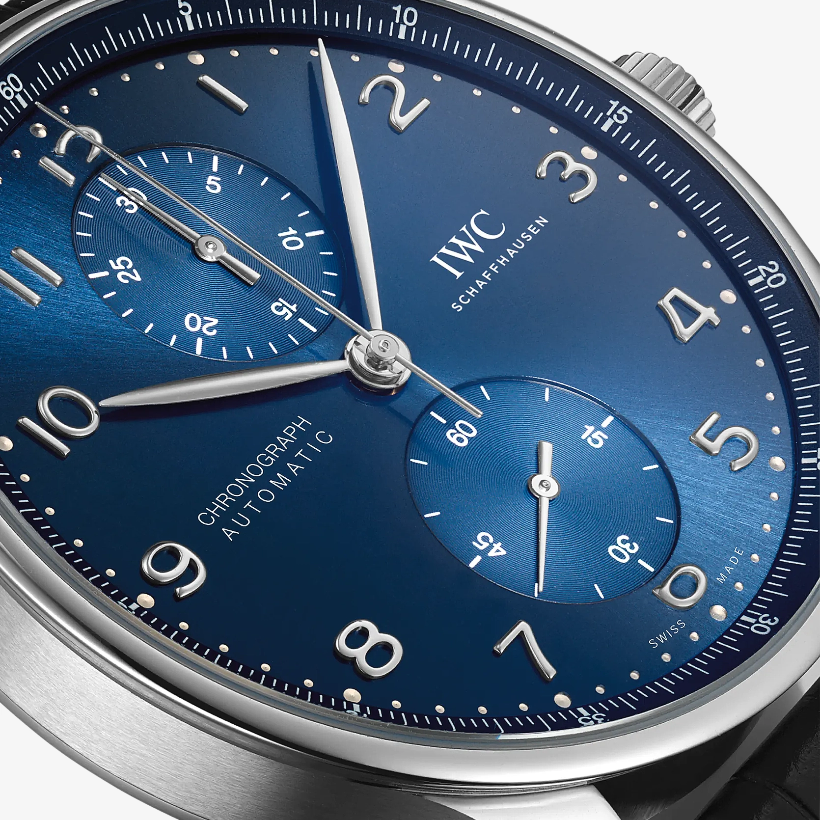 Ref. IW371606 - Der harmonisch gestaltete Chronograph mit umlaufender Präzisionsskala und vertieften Totalisatoren ist seit 1998 das begehrteste Mitglied der Portugieser-Familie.
