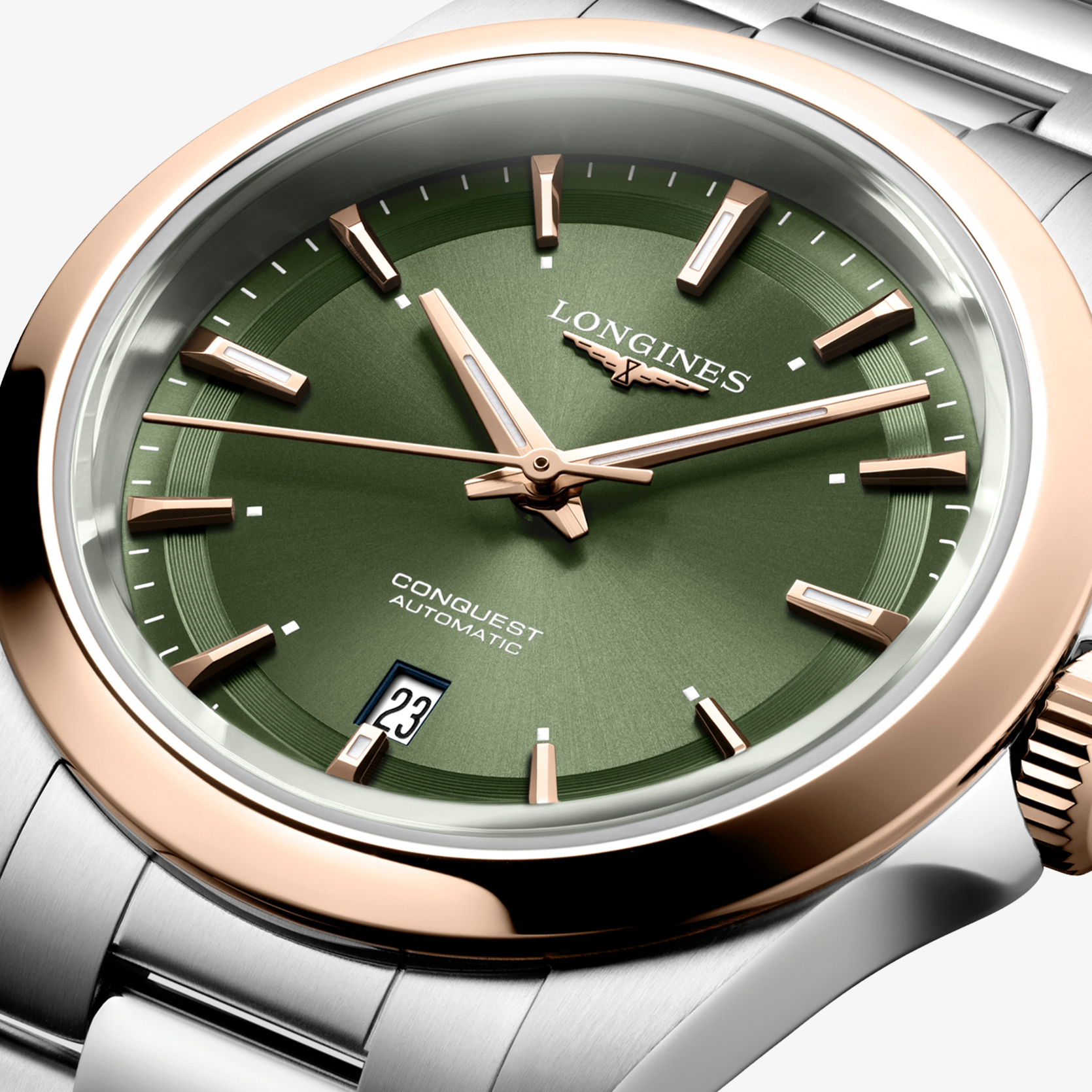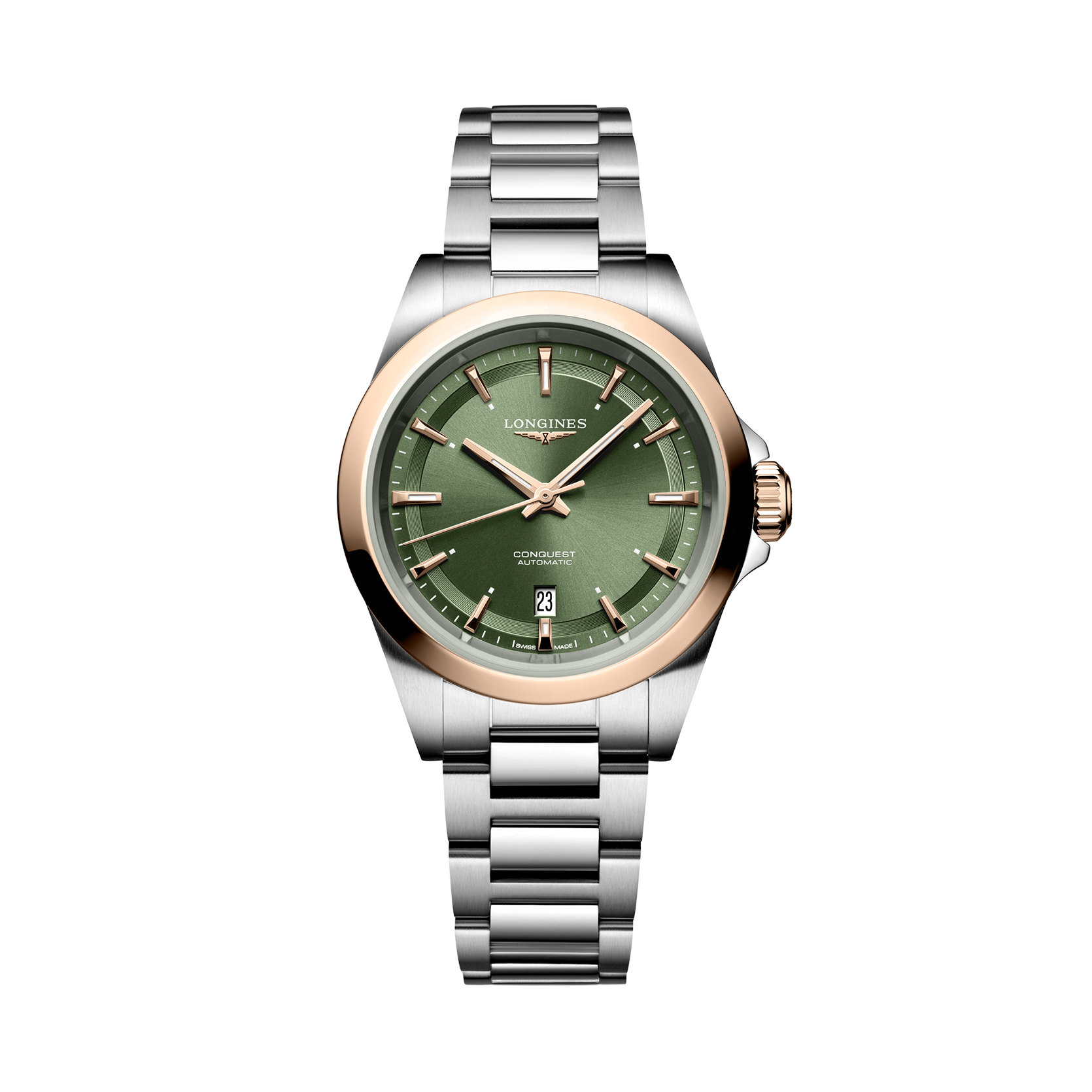 Ref. L3.320.5.02.6 - Datum, Mechanisches Uhrwerk mit Automatikaufzug, Frequenz von 28.800 Halbschwingungen pro Stunde, Gangreserve von ca. 45 Stunden, mit Unruhfeder aus monokristallinem Silizium. Wasserdicht bis zu einem Druck von 10 bar, Kratzfestes Saphirglas mit mehreren Antireflexschichten auf beiden Seiten. Zifferblatt: Grün mit Sonnenschliff, Swiss Super-LumiNova®. Edelstahl Armband, Mit Dreifach-Sicherheitsfaltschließe und Drückern.