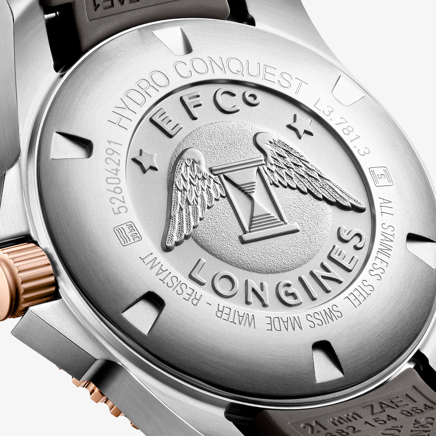 Longines begeistert die Uhrenwelt mit neuen Modellen in der Sport-Linie. Diese Longines HydroConquest schmückt sich nun auch mit roségoldfarbener PVD für einen Hauch zusätzlicher Eleganz. Diesen Zeitmesser im klaren Design ziert eine Lünette mit Keramikeinlage in der Farbe des Zifferblatts. Das dadurch geschaffene einheitliche Bild der Longines HydroConquest passt perfekt zu jedem Outfit - ob sportlich oder elegant - mit diesem Modell werde Sie immer die Blicke auf sich ziehen.