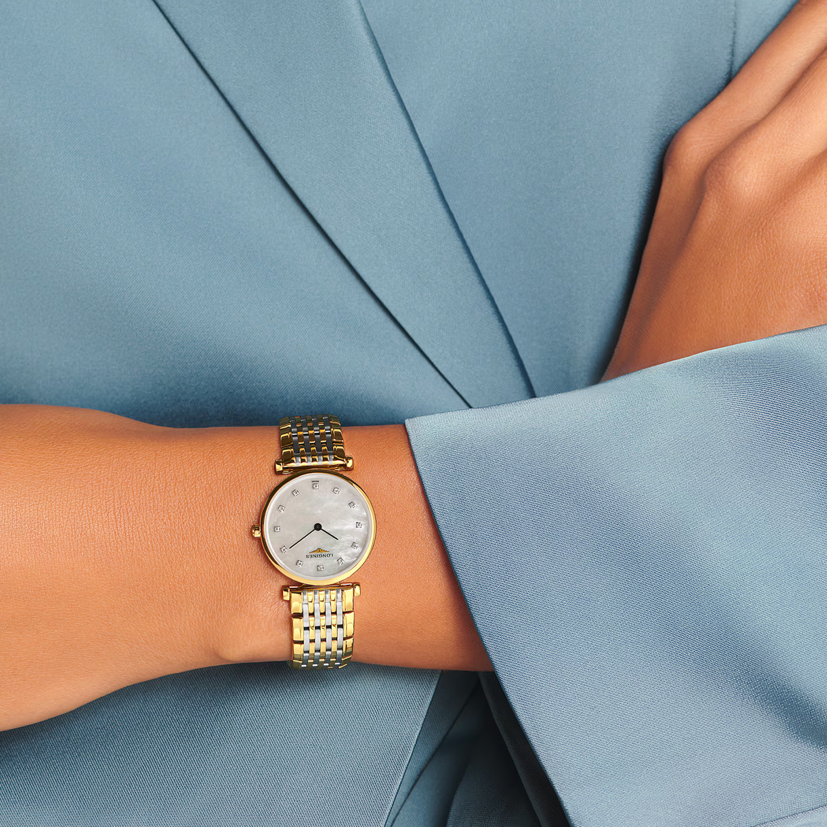 La Grande Classique de Longines hat maßgeblich dazu beigetragen, den Ruf der Marke mit dem geflügelten Stundenglas in der ganzen Welt zu etablieren. Diese 1992 eingeführte Linie ist ein Symbol für die klassische Eleganz und zeitlose Raffinesse von Longines. Sie zeichnet sich durch ihr schlankes Profil, ihr elegantes rundes Gehäuse und ihre Auswahl an Größen, Materialien und Farben aus.