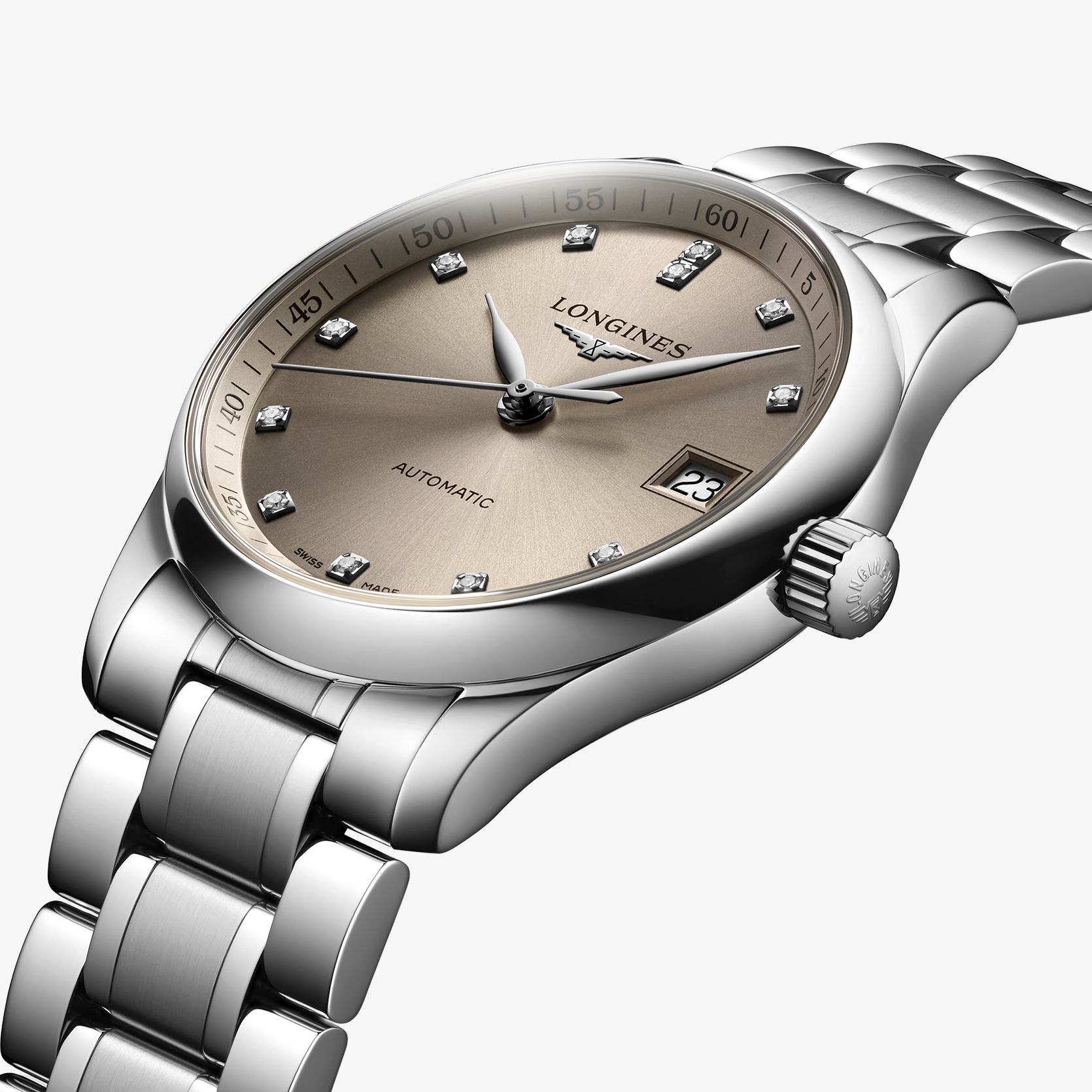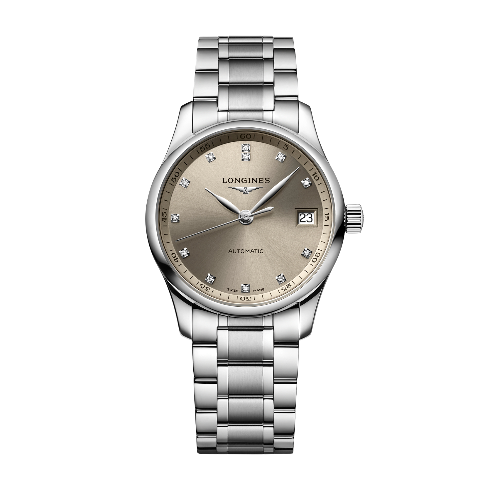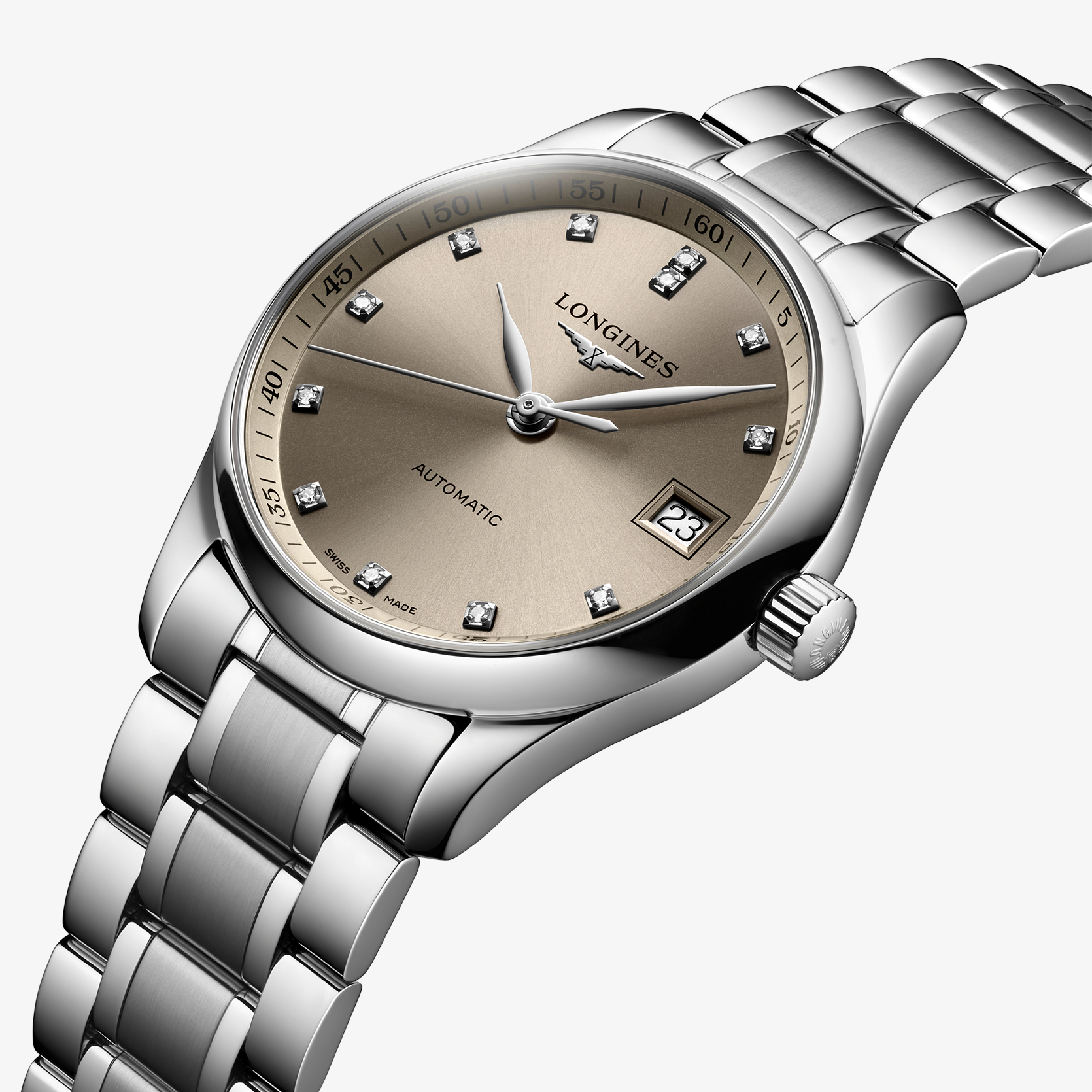 Ref. L2.357.4.07.6 - Datum, Mechanisches Uhrwerk mit Automatikaufzug, Frequenz von 25.200 Halbschwingungen pro Stunde, Gangreserve von ca. 72 Stunden. Wasserdicht bis zu einem Druck von 3 bar, Kratzfestes Saphirglas mit mehreren Antireflexschichten auf beiden Seiten. Zifferblatt: Beige. Edelstahl Armband, Mit Dreifach-Sicherheitsfaltschließe und Drückern.
