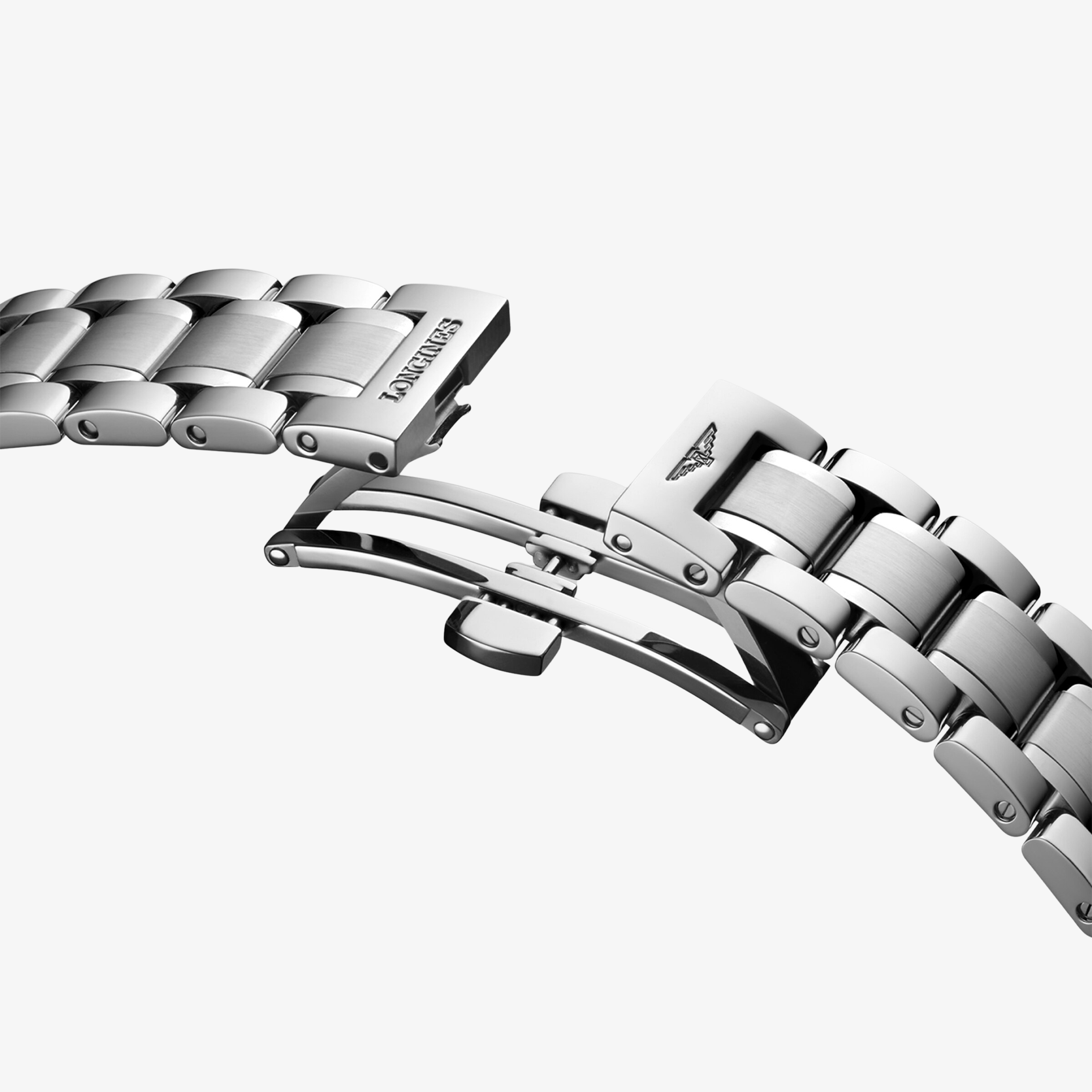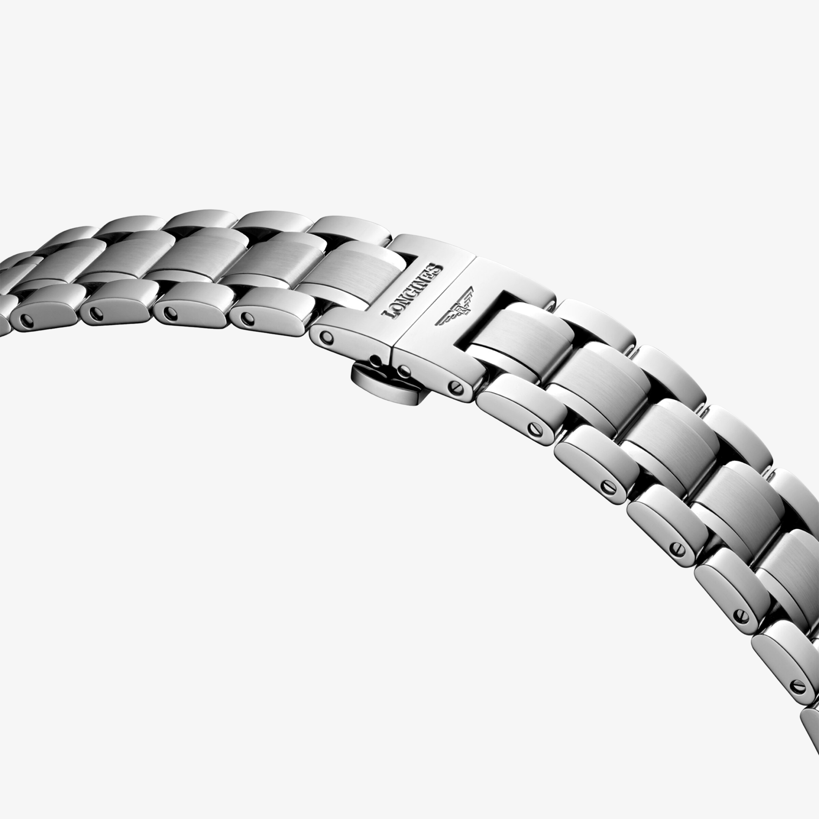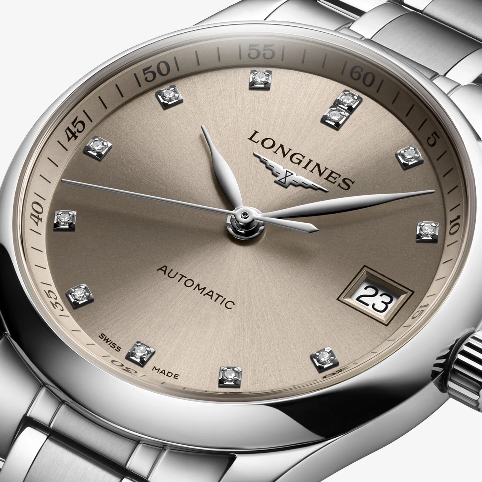 Ref. L2.357.4.07.6 - Datum, Mechanisches Uhrwerk mit Automatikaufzug, Frequenz von 25.200 Halbschwingungen pro Stunde, Gangreserve von ca. 72 Stunden. Wasserdicht bis zu einem Druck von 3 bar, Kratzfestes Saphirglas mit mehreren Antireflexschichten auf beiden Seiten. Zifferblatt: Beige. Edelstahl Armband, Mit Dreifach-Sicherheitsfaltschließe und Drückern.
