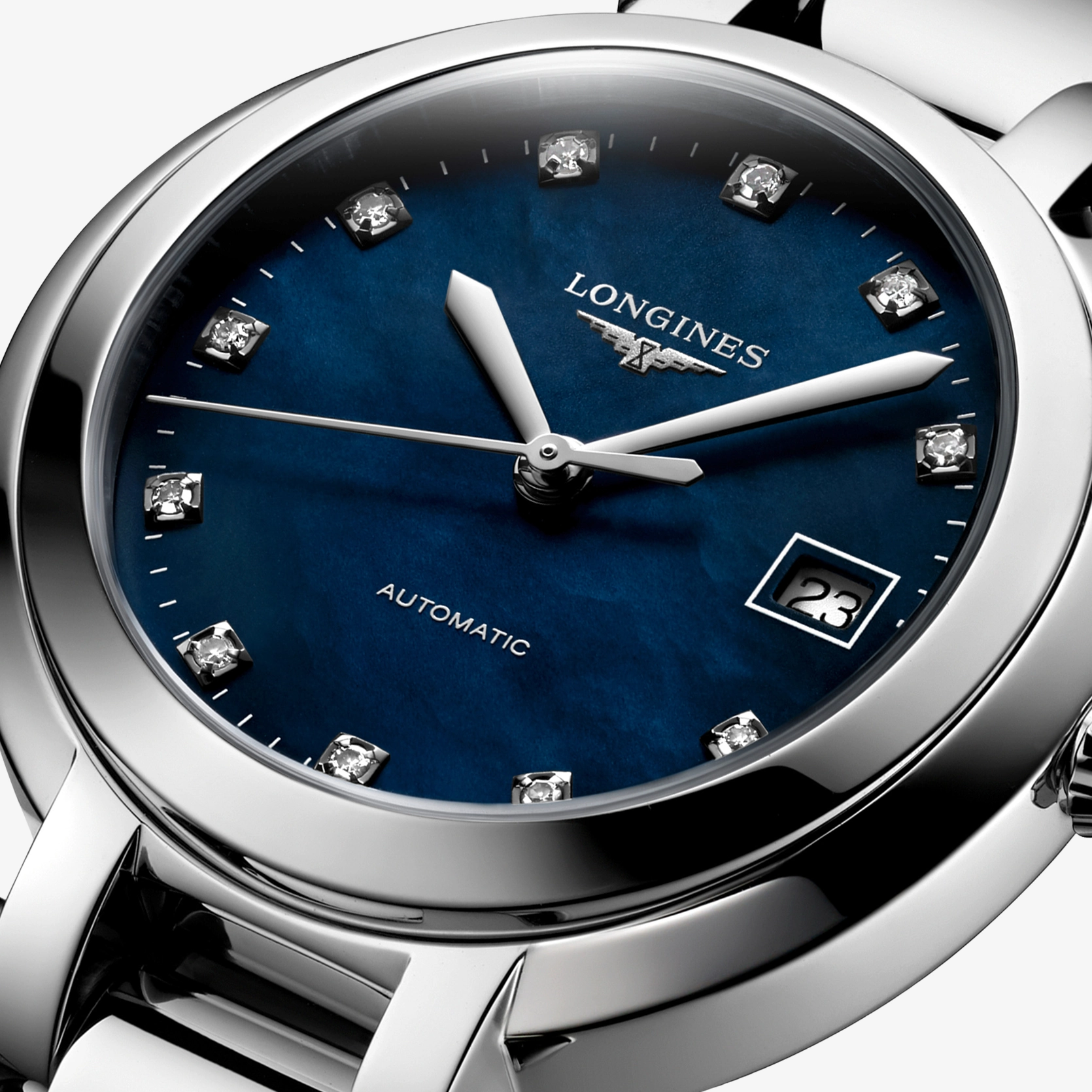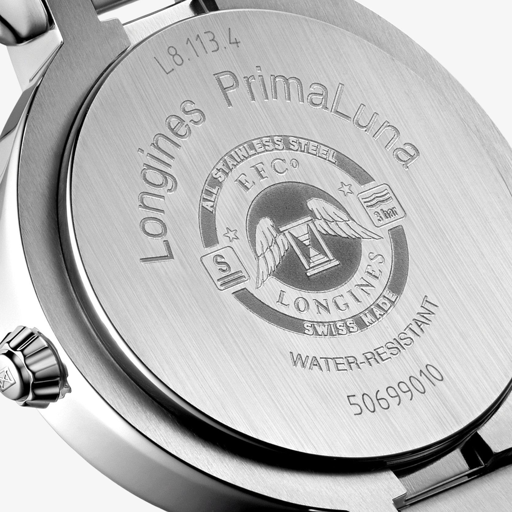 Ref. L8.113.4.98.6 - Datum, Mechanisches Uhrwerk mit Automatikaufzug, Frequenz von 28.800 Halbschwingungen pro Stunde, Gangreserve von ca. 45 Stunden. Wasserdicht bis zu einem Druck von 3 bar, Kratzfestes Saphirglas, mit mehreren Antireflexschichten auf der Unterseite. Zifferblatt: Blaues Perlmutt. Edelstahl Armband, Mit Dreifach-Sicherheitsfaltschließe und Drückern.