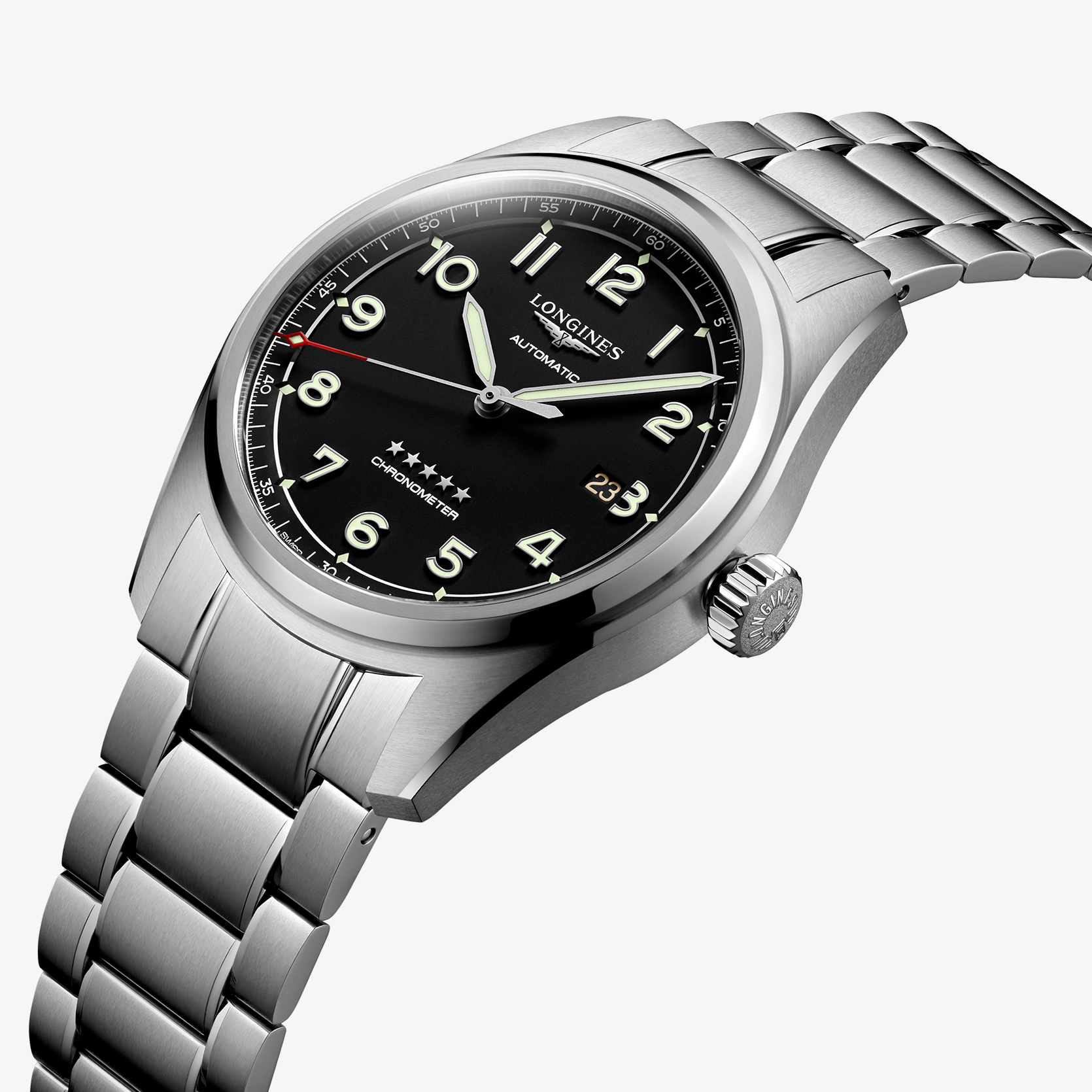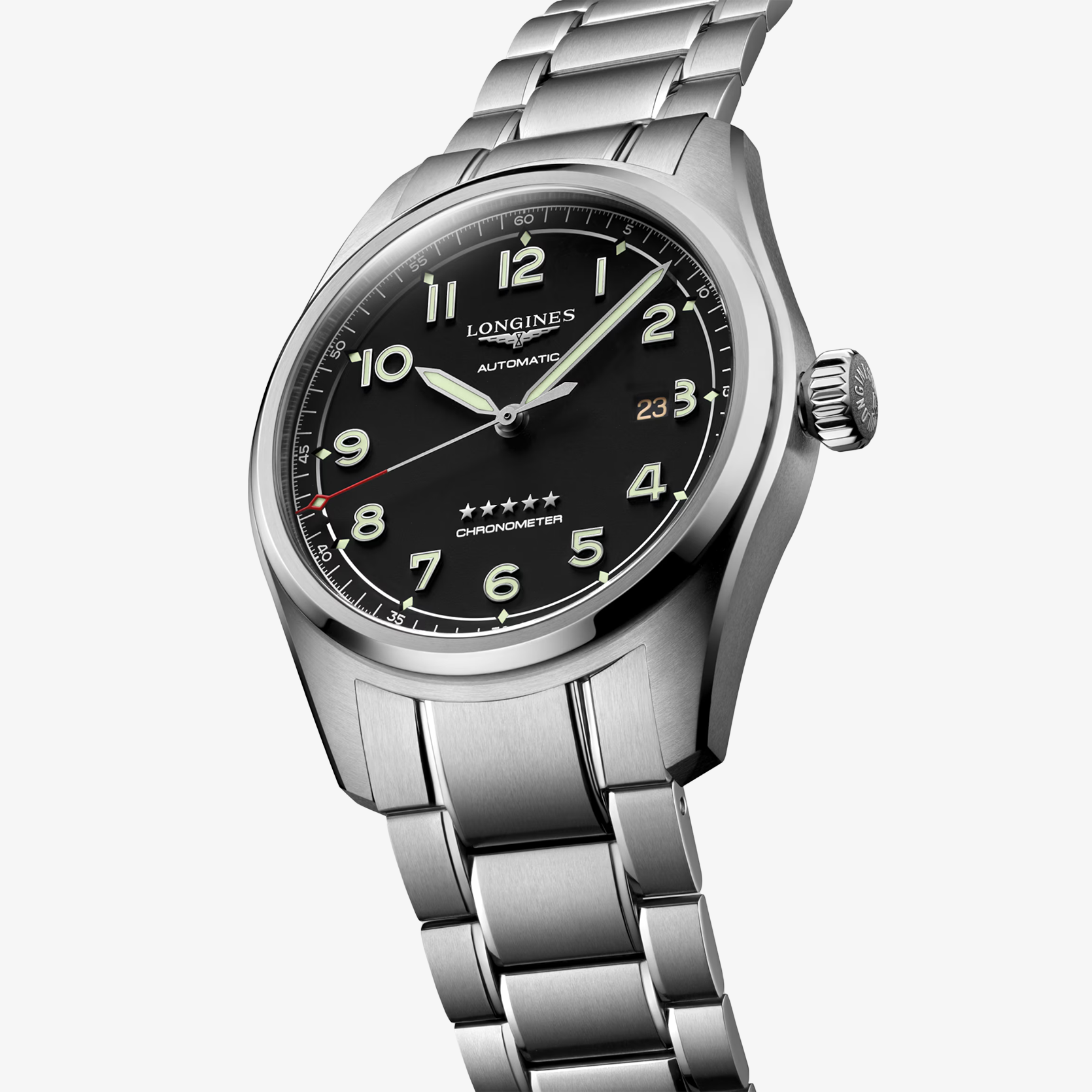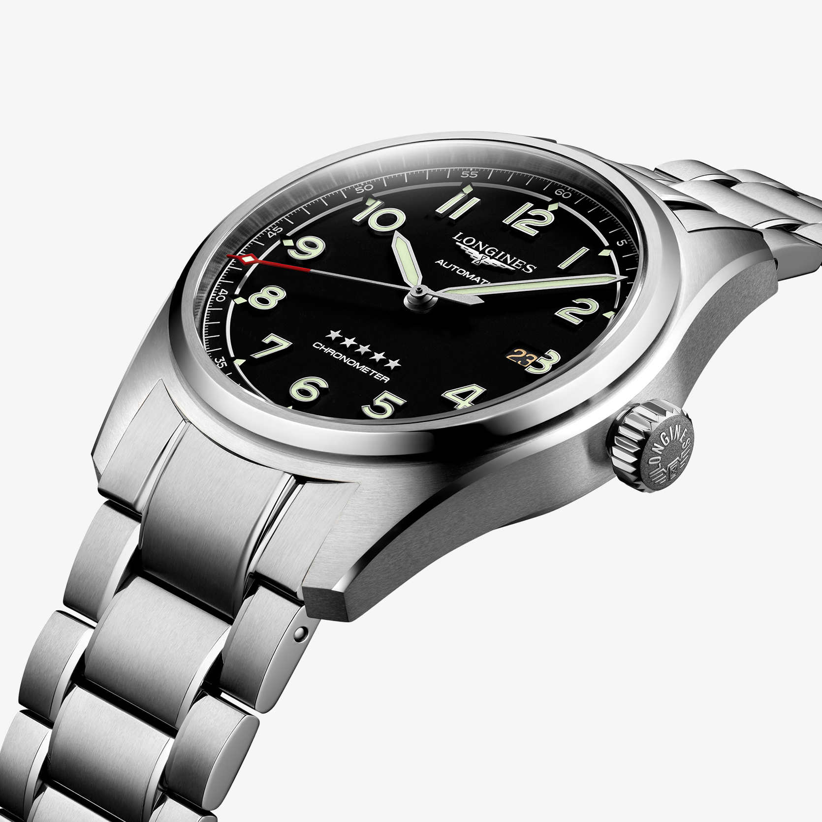 Seit fast einem Jahrhundert begleitet Longines die größten Entdecker bei ihren Eroberungen in der Luft, zu Wasser und zu Lande. Die Longines Spirit Kollektion erweckt den Pioniergeist zum Leben, der diese außergewöhnlichen Männer und Frauen dazu befähigte, über sich hinauszuwachsen, neue Ziele zu verfolgen und an das Unmögliche zu glauben. Diese Fliegeruhren strahlen eine moderne Raffinesse aus, die sich durch klare Linien und raffinierte Details auszeichnet. Die Longines Spirit Uhren verbinden Geschichte mit Innovation. Sie übernehmen traditionelle Merkmale von Fliegeruhren und kombinieren sie mit modernsten Uhrentechnologien. Alle ihre Uhrwerke sind mit Unruhspiralfedern aus Silizium ausgestattet und von der COSC als Chronometer zertifiziert.