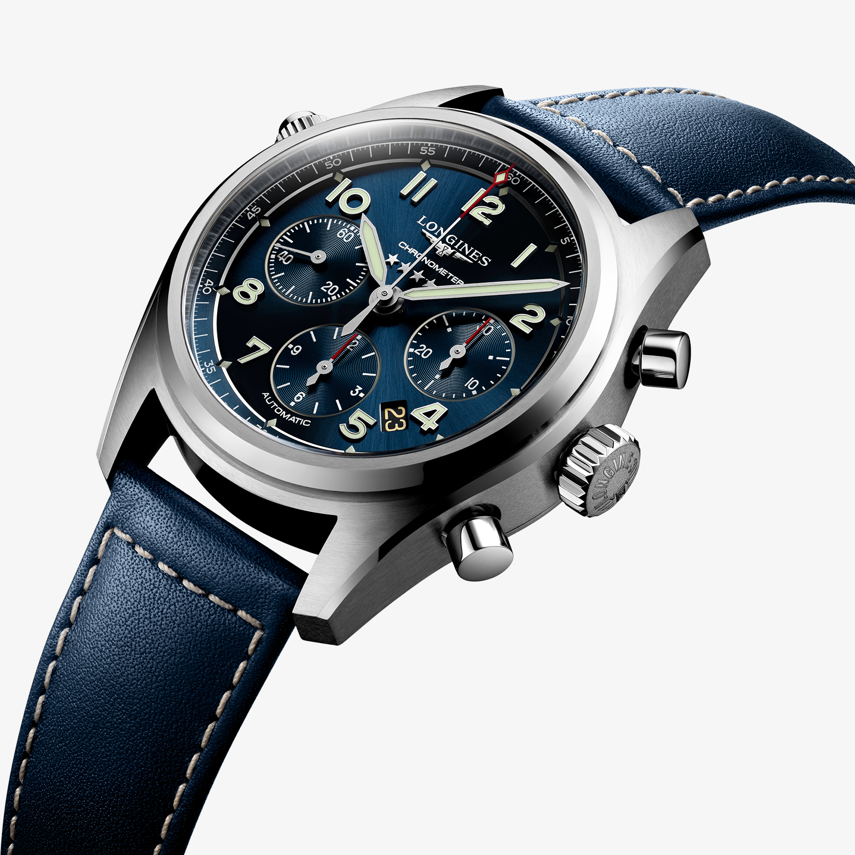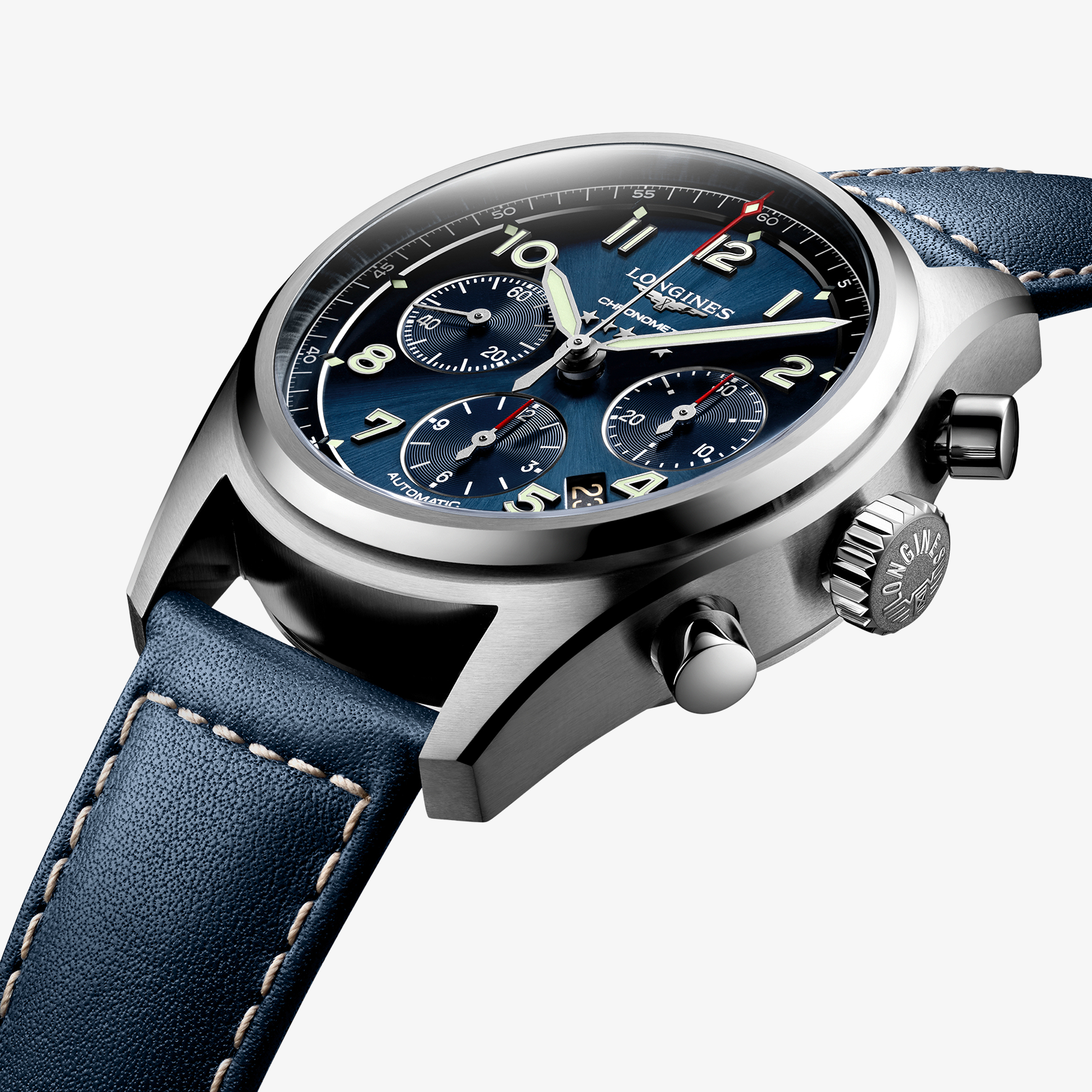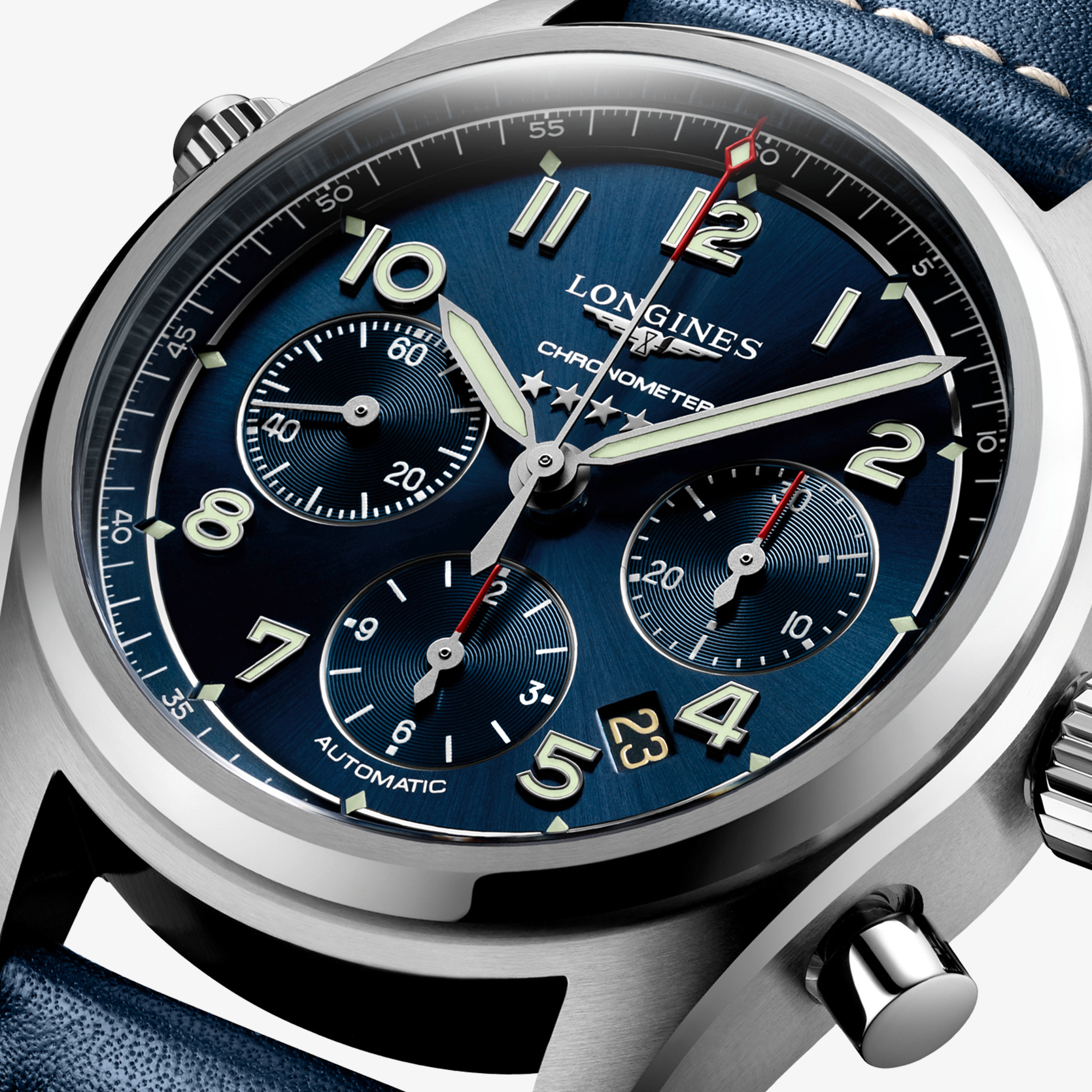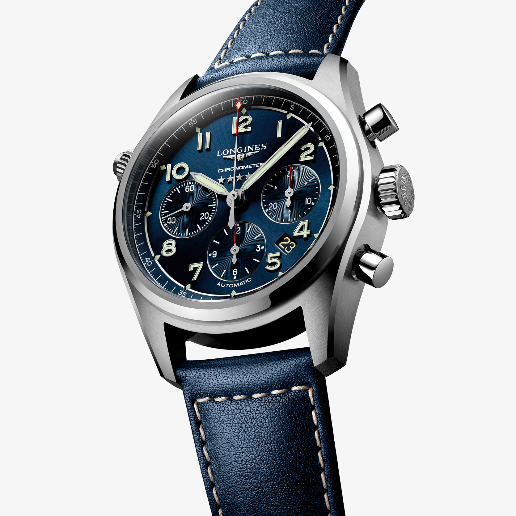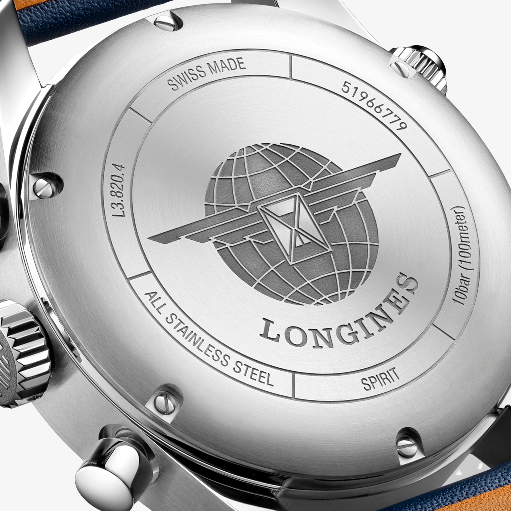 Seit fast einem Jahrhundert begleitet Longines die größten Entdecker bei ihren Eroberungen in der Luft, zu Wasser und zu Lande. Die Longines Spirit Kollektion erweckt den Pioniergeist zum Leben, der diese außergewöhnlichen Männer und Frauen dazu befähigte, über sich hinauszuwachsen, neue Ziele zu verfolgen und an das Unmögliche zu glauben. Die Longines Spirit Chronographen verbinden Geschichte mit Innovation. Sie übernehmen traditionelle Merkmale von Fliegeruhren und kombinieren sie mit modernsten Uhrentechnologien. Alle ihre Uhrwerke sind mit Unruhspiralfedern aus Silizium ausgestattet und von der COSC als Chronometer zertifiziert.