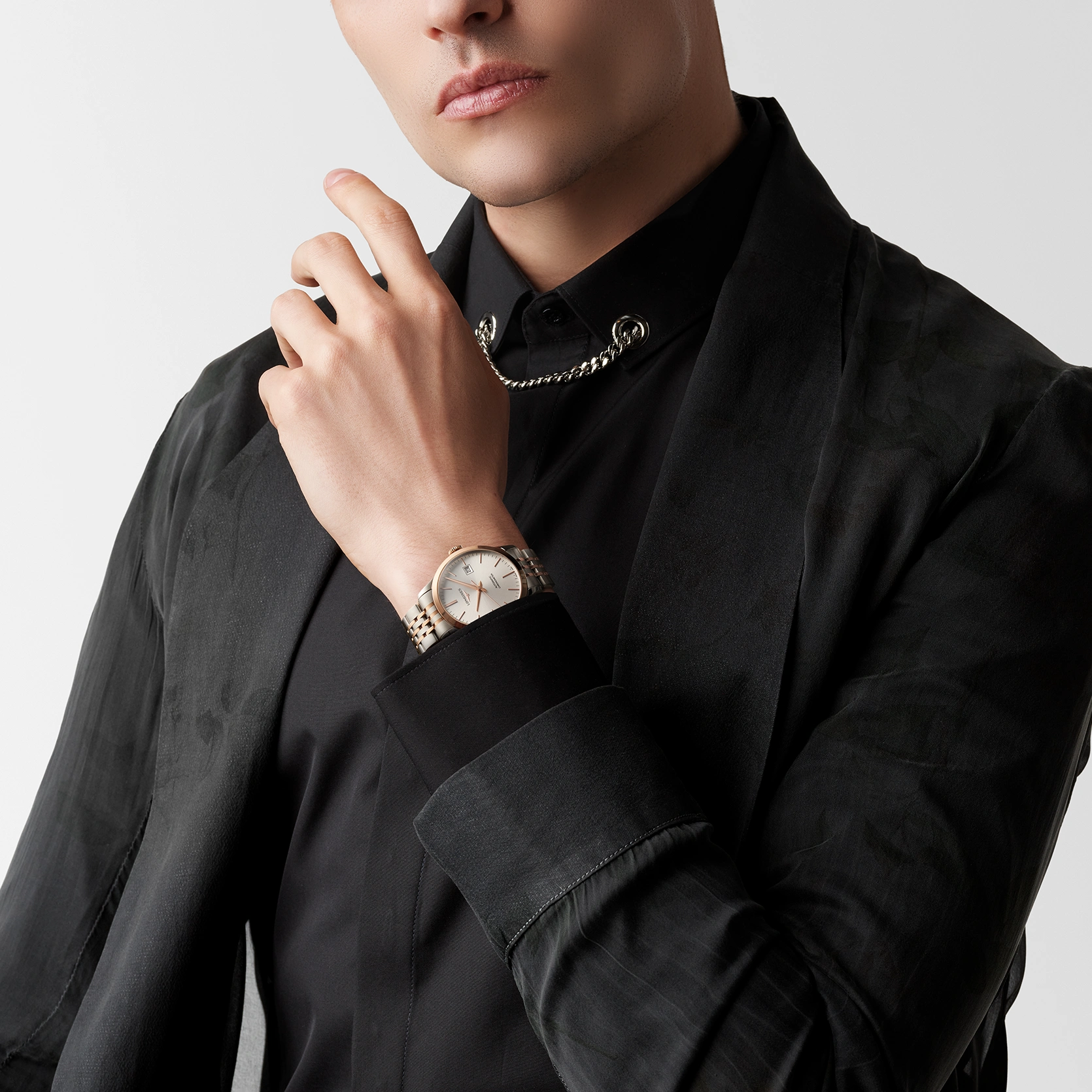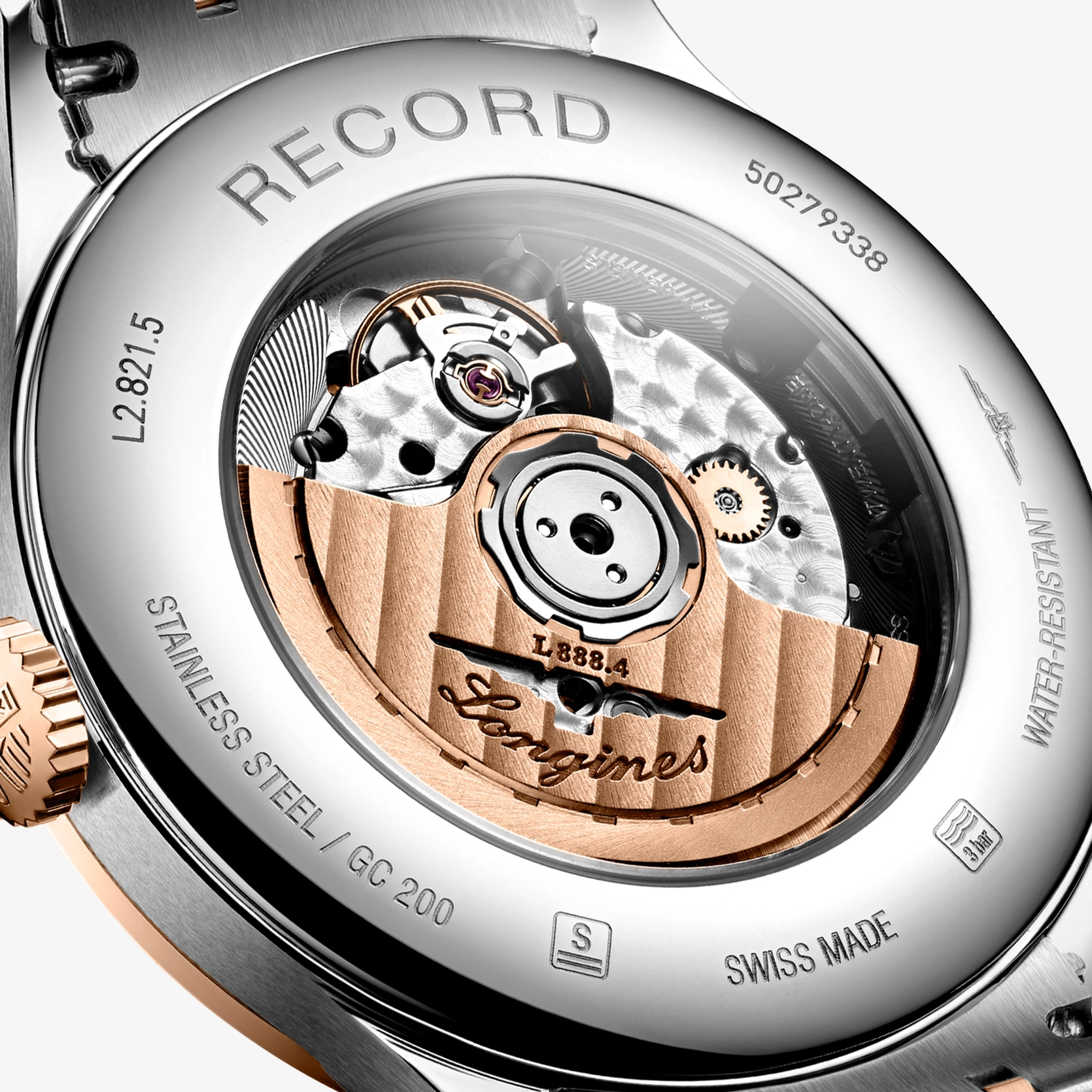 Ref. L2.821.5.72.7 - Datum, Mechanisches Uhrwerk mit Automatikaufzug, Frequenz von 25.200 Halbschwingungen pro Stunde, Gangreserve von ca. 72 Stunden, mit Unruhfeder aus monokristallinem Silizium. Wasserdicht bis zu einem Druck von 3 bar, Kratzfestes Saphirglas, mit mehreren Antireflexschichten auf der Unterseite. Zifferblatt: Silber mit "Sonnenstrahl" Dekor. Edelstahl mit 18 Karat Roségold Cap 200 Armband, Mit Dreifach-Sicherheitsfaltschließe und Drückern.