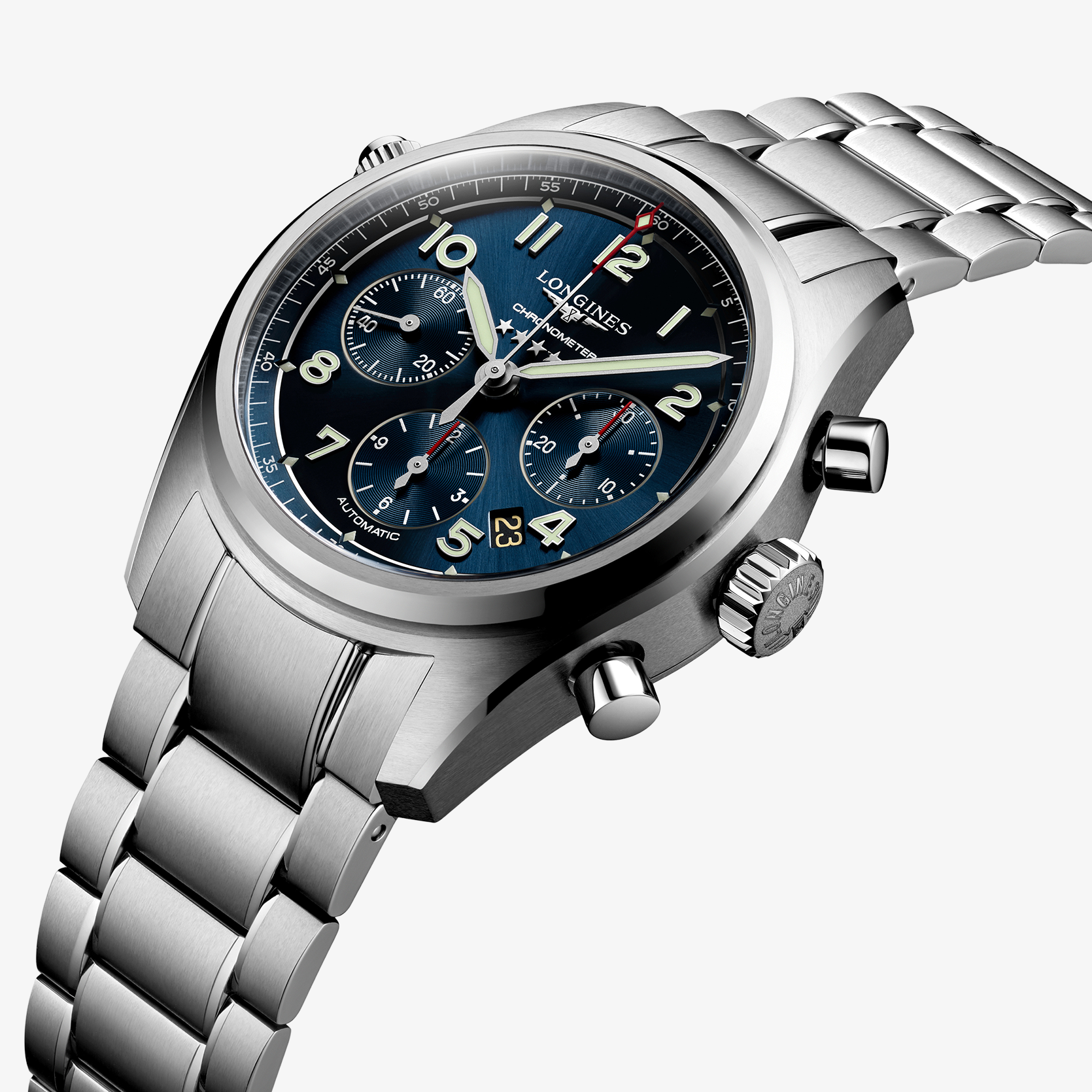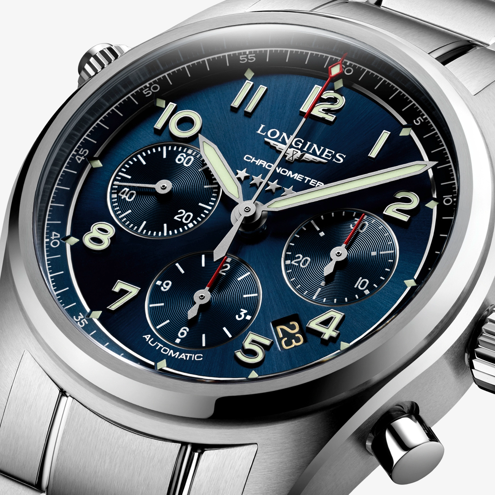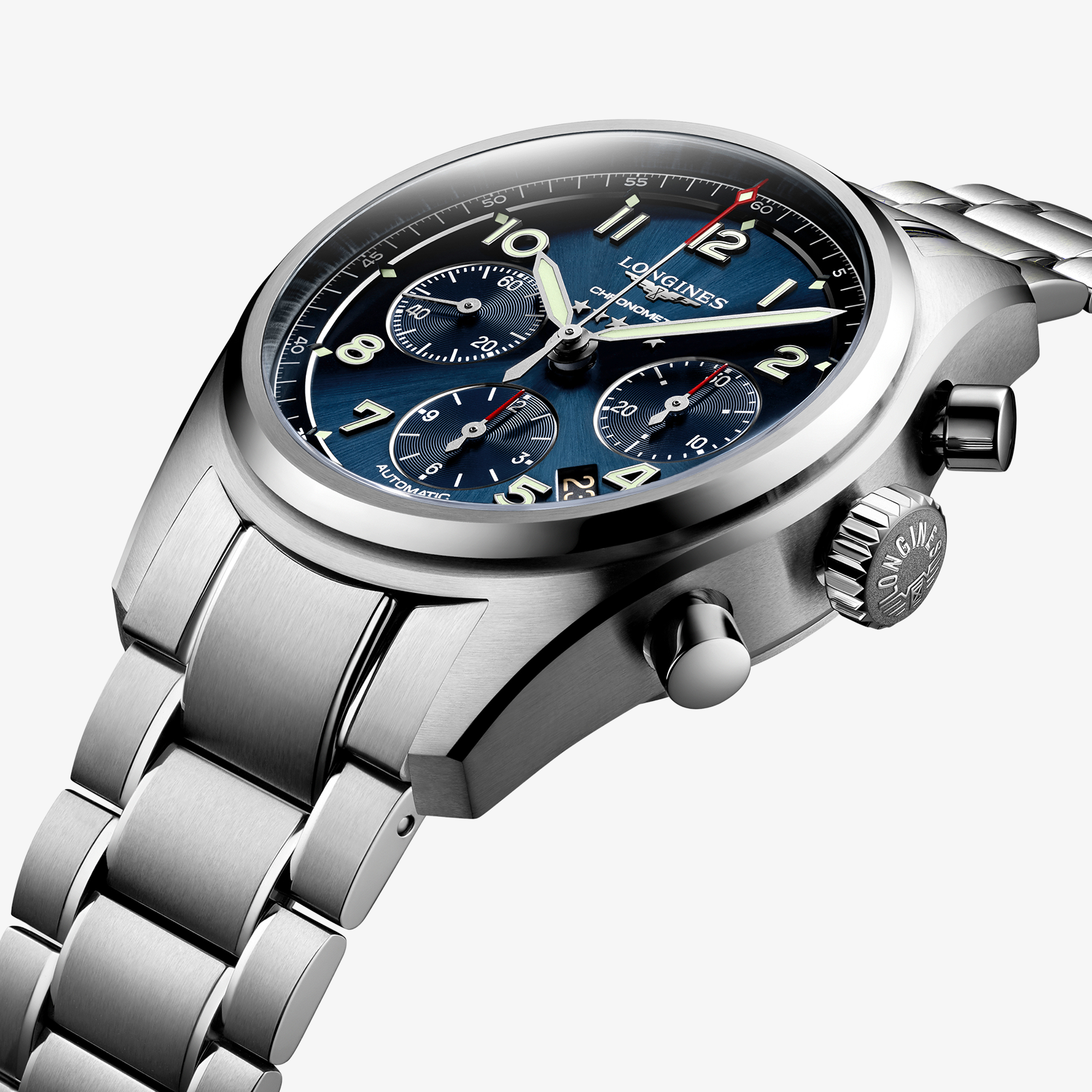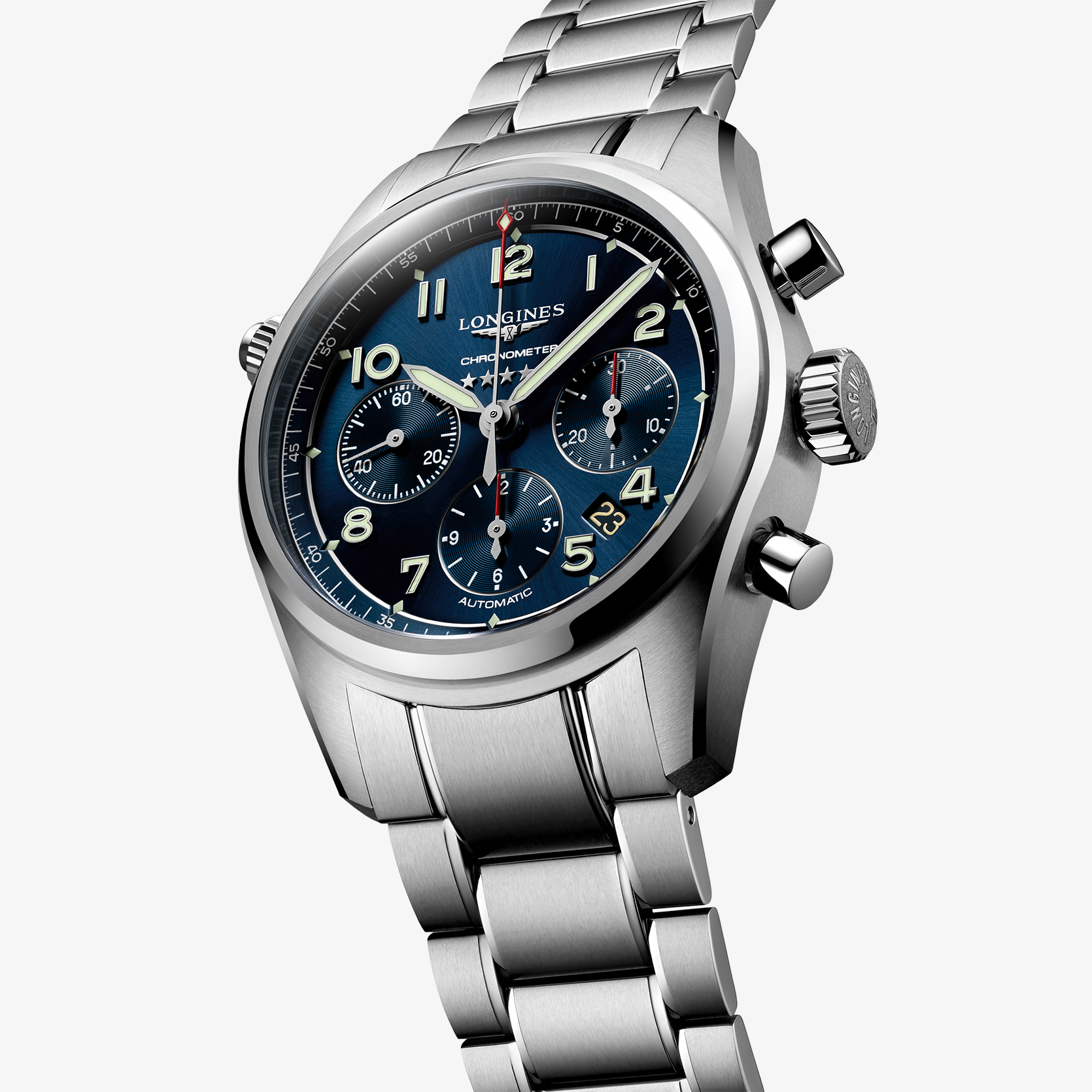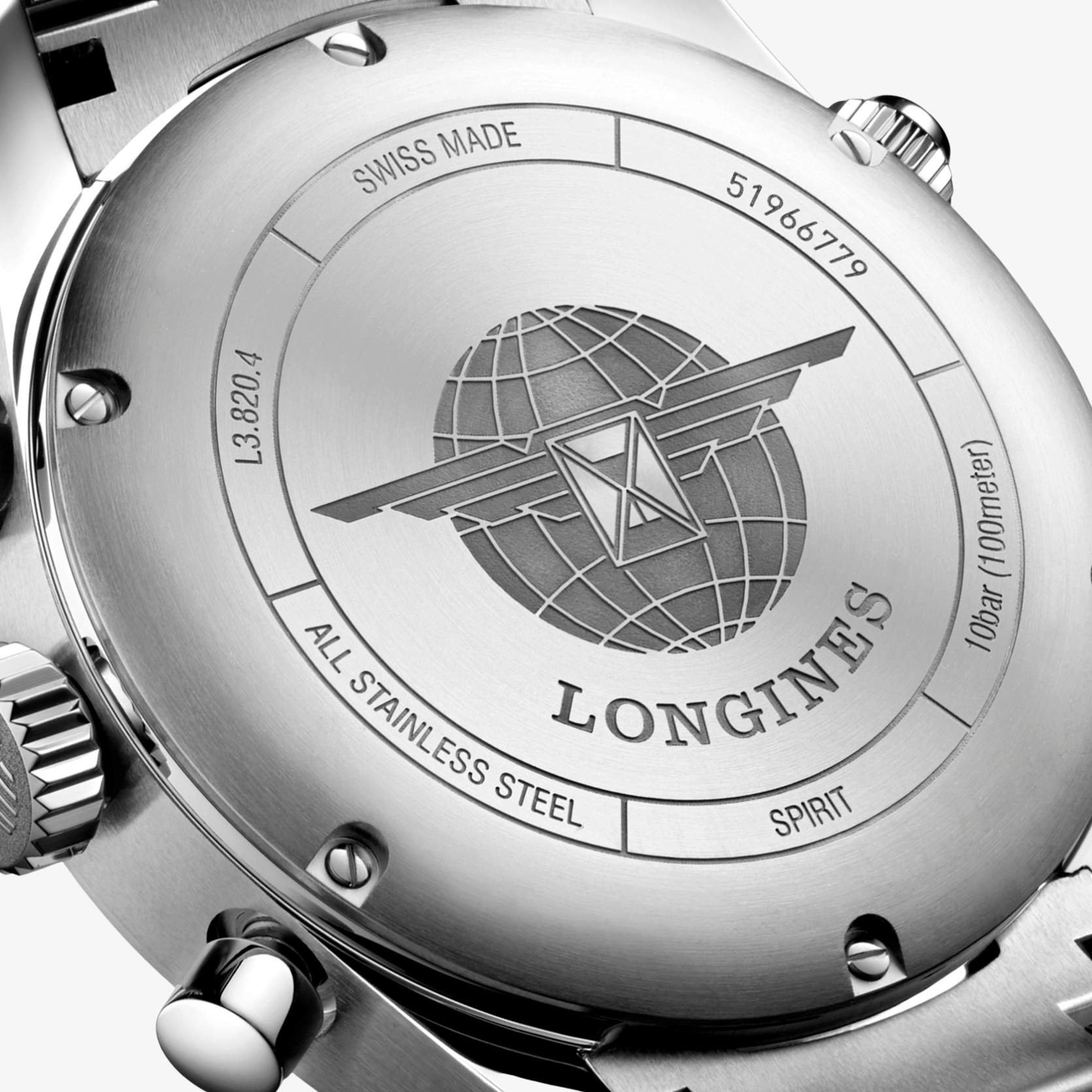 Seit fast einem Jahrhundert begleitet Longines die größten Entdecker bei ihren Eroberungen in der Luft, zu Wasser und zu Lande. Die Longines Spirit Kollektion erweckt den Pioniergeist zum Leben, der diese außergewöhnlichen Männer und Frauen dazu befähigte, über sich hinauszuwachsen, neue Ziele zu verfolgen und an das Unmögliche zu glauben. Die Longines Spirit Chronographen verbinden Geschichte mit Innovation. Sie übernehmen traditionelle Merkmale von Fliegeruhren und kombinieren sie mit modernsten Uhrentechnologien. Alle ihre Uhrwerke sind mit Unruhspiralfedern aus Silizium ausgestattet und von der COSC als Chronometer zertifiziert.