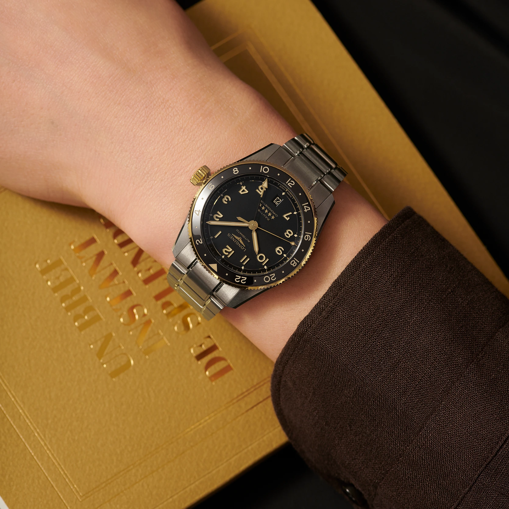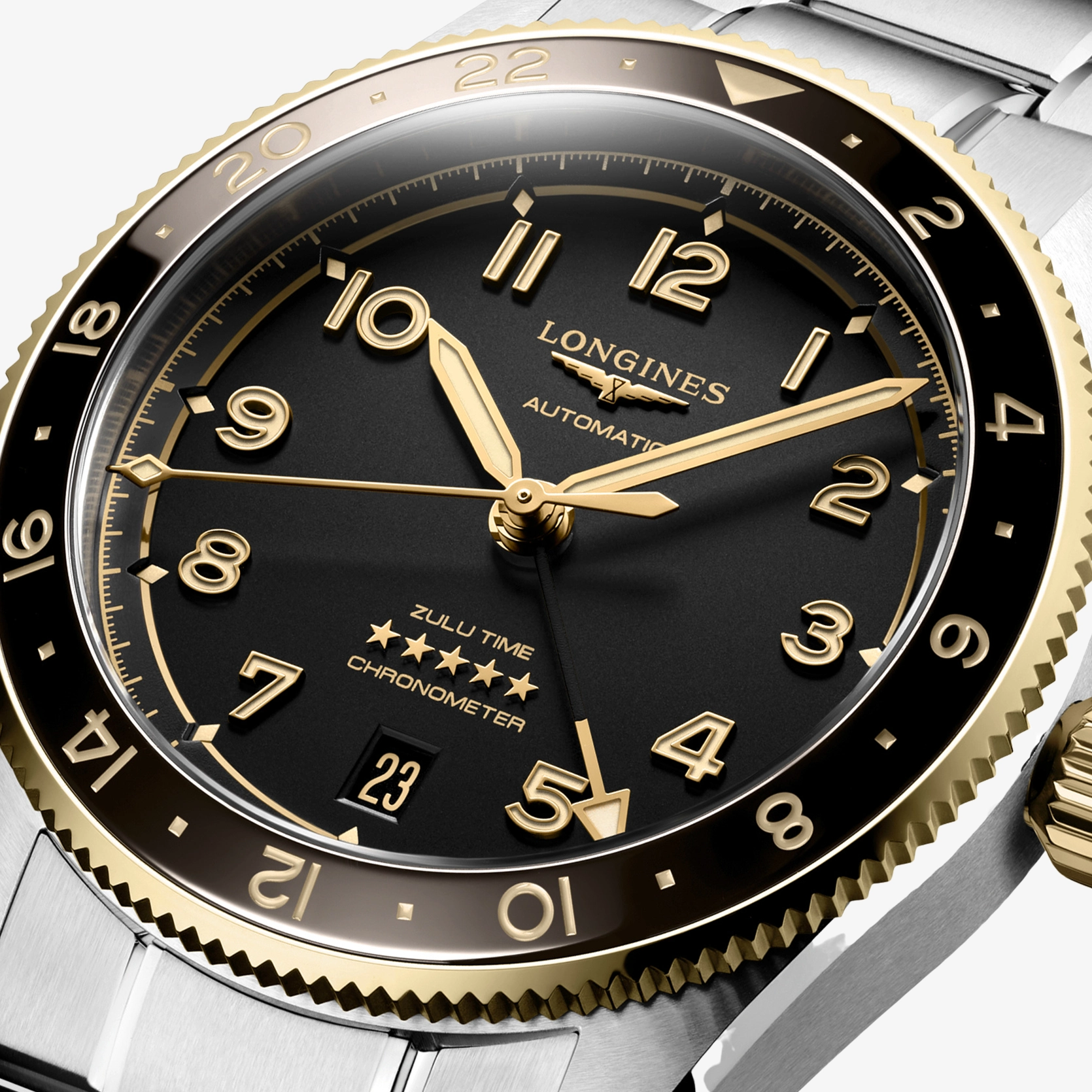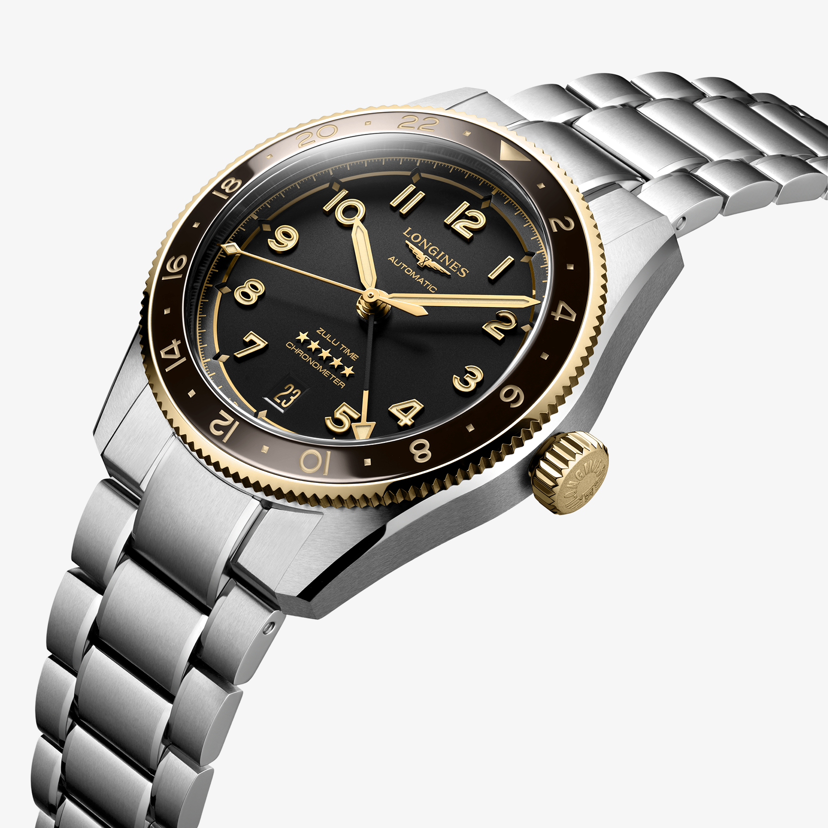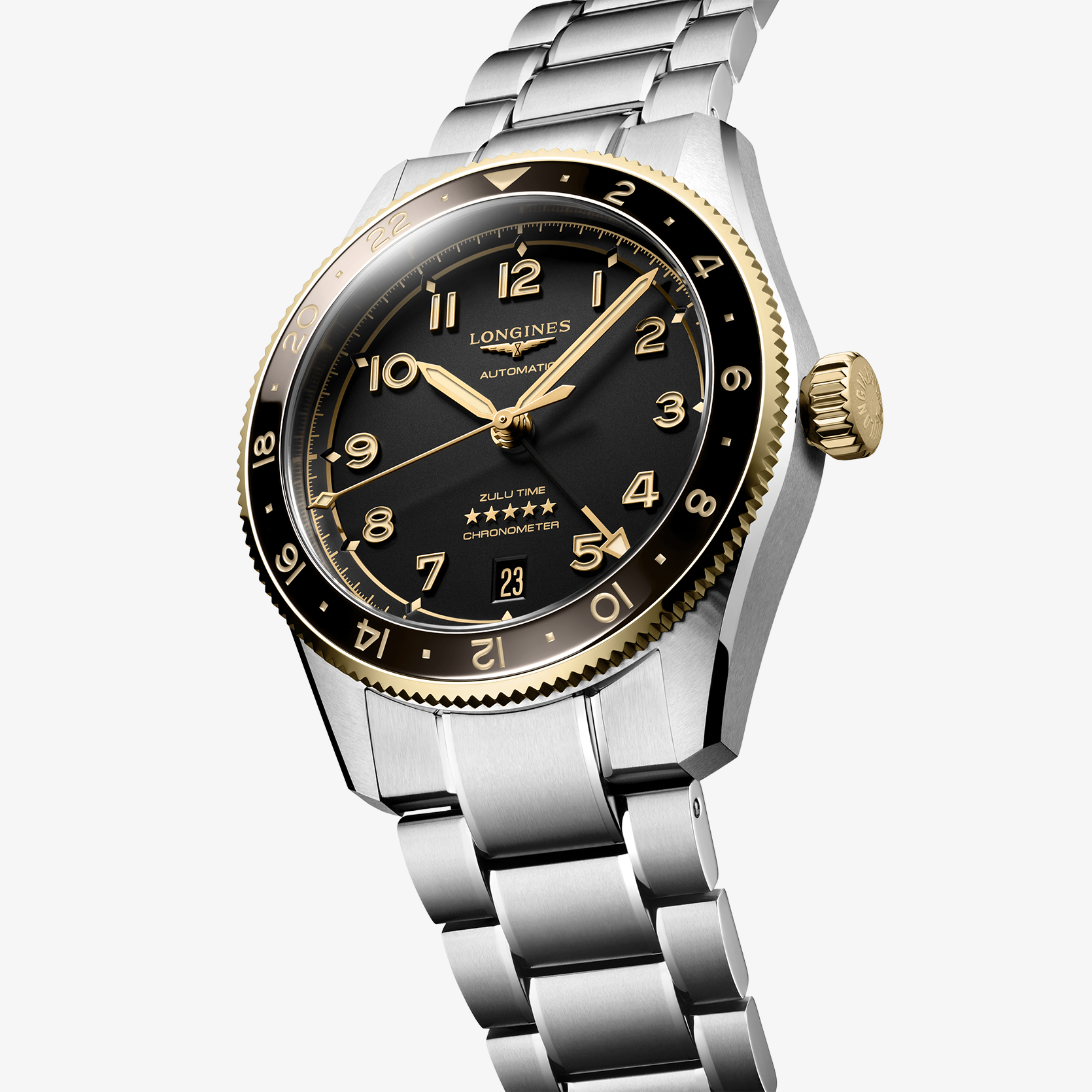 Die Longines Spirit Zulu Time verkörpert das jahrhundertealte Know-how der Marke bei Zeitmessern mit mehreren Zeitzonen. Ihr Ursprung und ihr Name sind von der ersten Longines Armbanduhr mit zwei Zeitzonen entlehnt, die 1925 hergestellt wurde und auf deren Zifferblatt die Zulu-Flagge abgebildet war. Zulu bezieht sich auf den Buchstaben „Z“, der die Weltzeit für Flieger angibt. Ästhetisch zeichnet sich die Longines Spirit Zulu Time durch ihre sorgfältige Ausführung und die besondere Sorgfalt aus, die den verschiedenen Details gewidmet wurde. Sie verfügt über eine beidseitig drehbare Lünette mit einem Keramikeinsatz. Jedes Modell wird von einem exklusiven Longines Kaliber angetrieben, das mit einer Unruhspiralfeder aus Silizium ausgestattet, gegen Magnetfelder resistent und von der COSC als Chronometer zertifiziert ist.