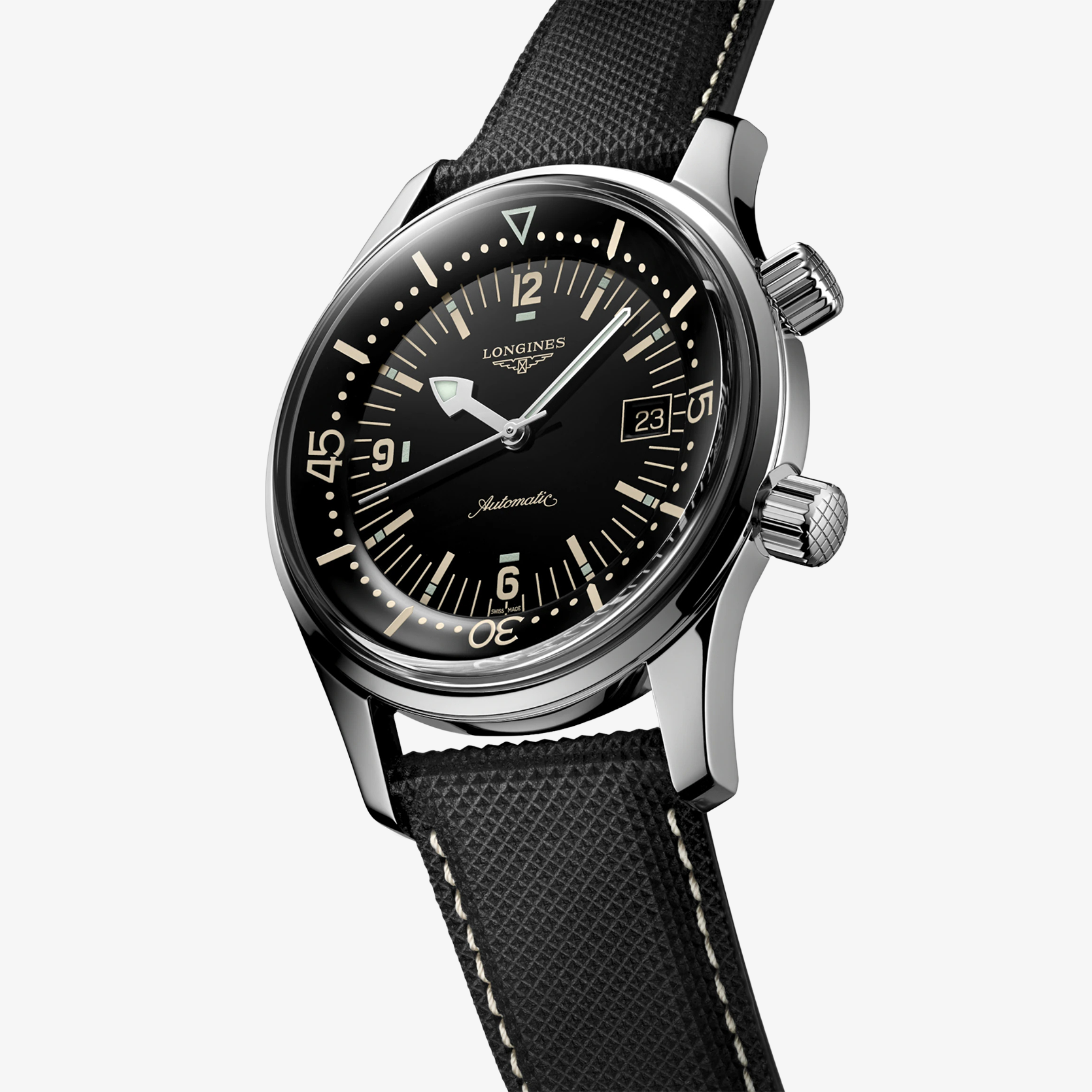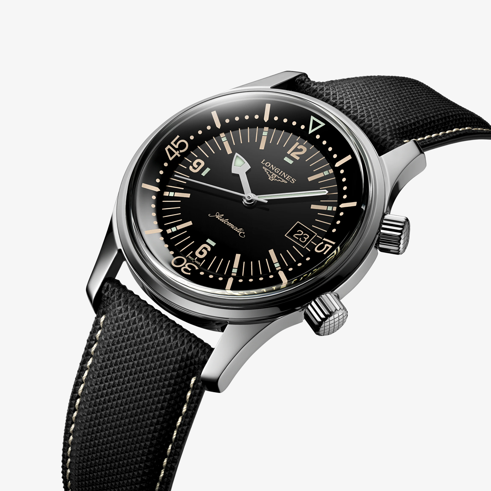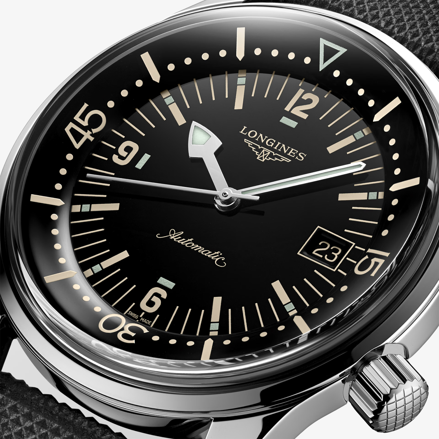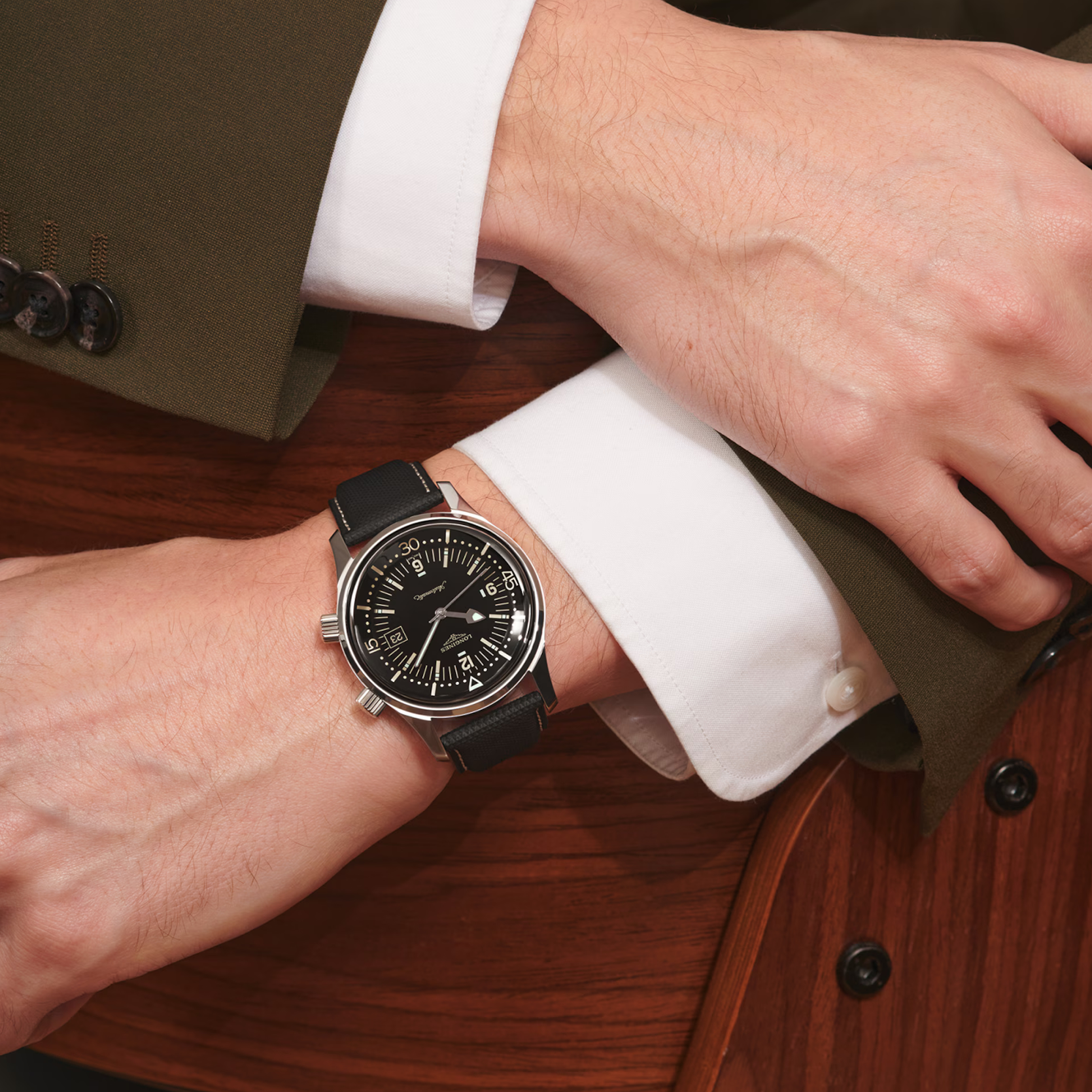 Die Longines Legend Diver wurde ursprünglich für die Erkundung der Unterwasserwelt entwickelt und ist sowohl an Land als auch unter Wasser zu Hause. Mit ihrem zeitlosen Design und ihrer bahnbrechenden Leistung ist sie seit 1959 eine echte Ikone der Uhrmacherei. Auf den ersten Blick fällt sie durch ihre zwei Kronen und die innere drehbare Lünette auf. Die von Longines erfundene Position der Lünette im Inneren des Gehäuses schützt sie vor versehentlichen Einstellungsänderungen und Stößen. Diese echten Werkzeuguhren werden von exklusiven Longines Kalibern angetrieben, die mit einer Unruhspiralfeder aus Silizium ausgestattet sind. Die Kollektion ist in einer Reihe von Größen, Materialien und Farben erhältlich.