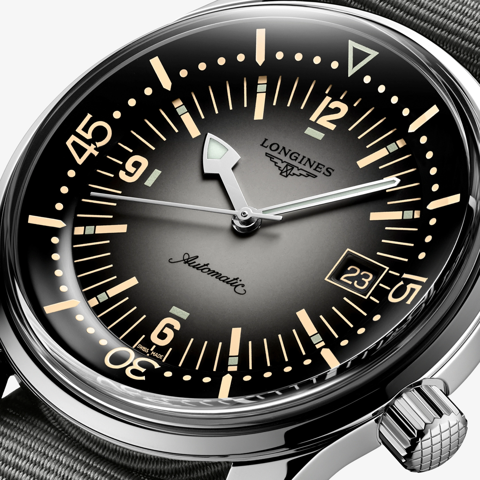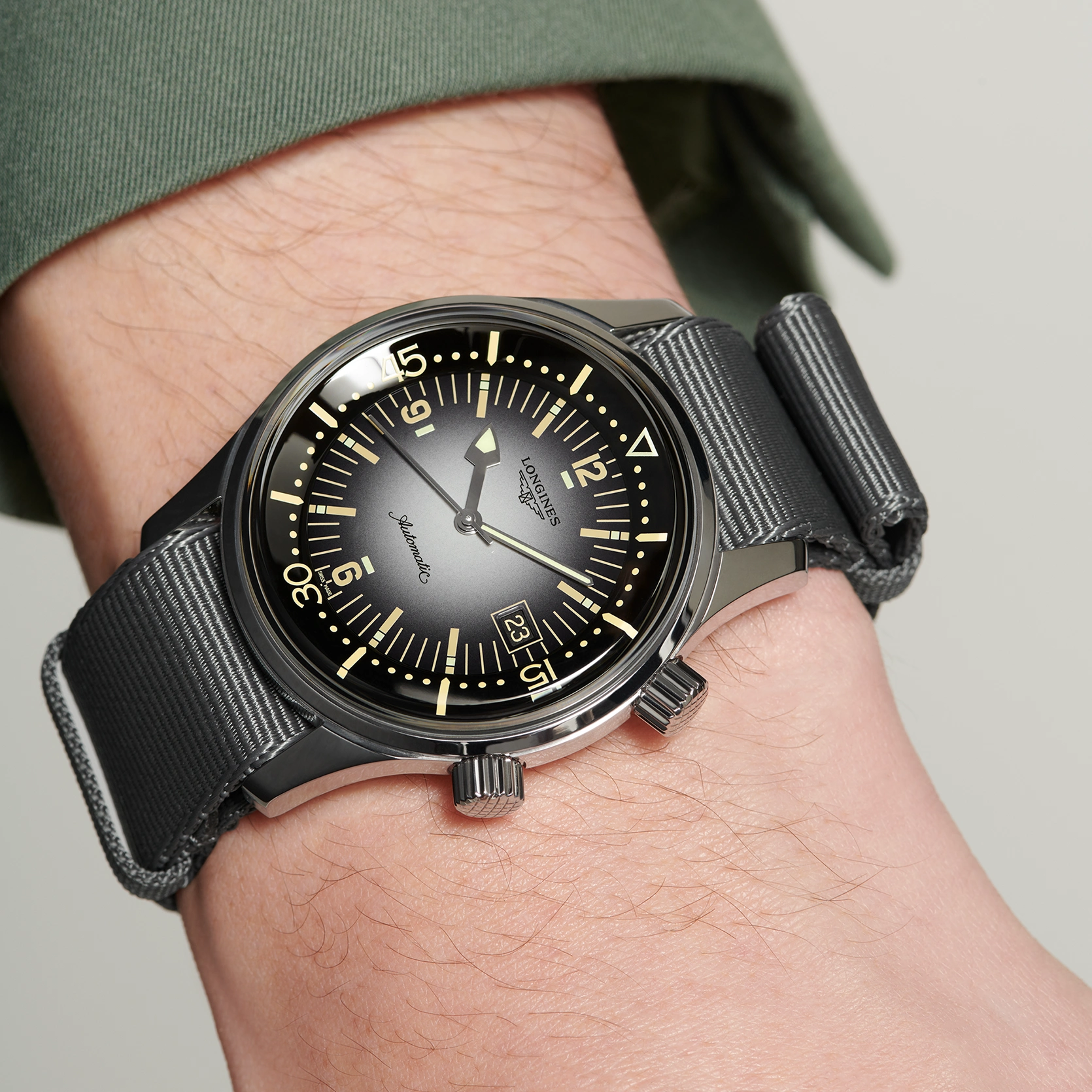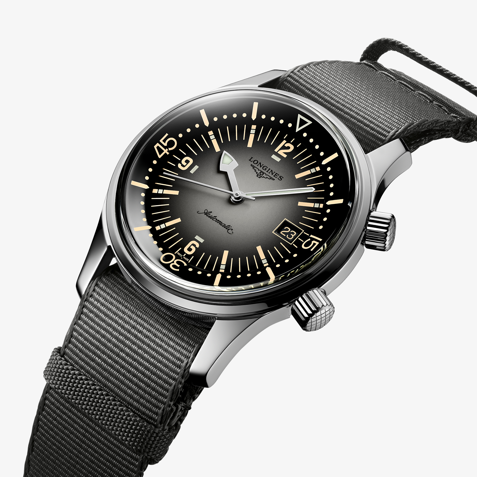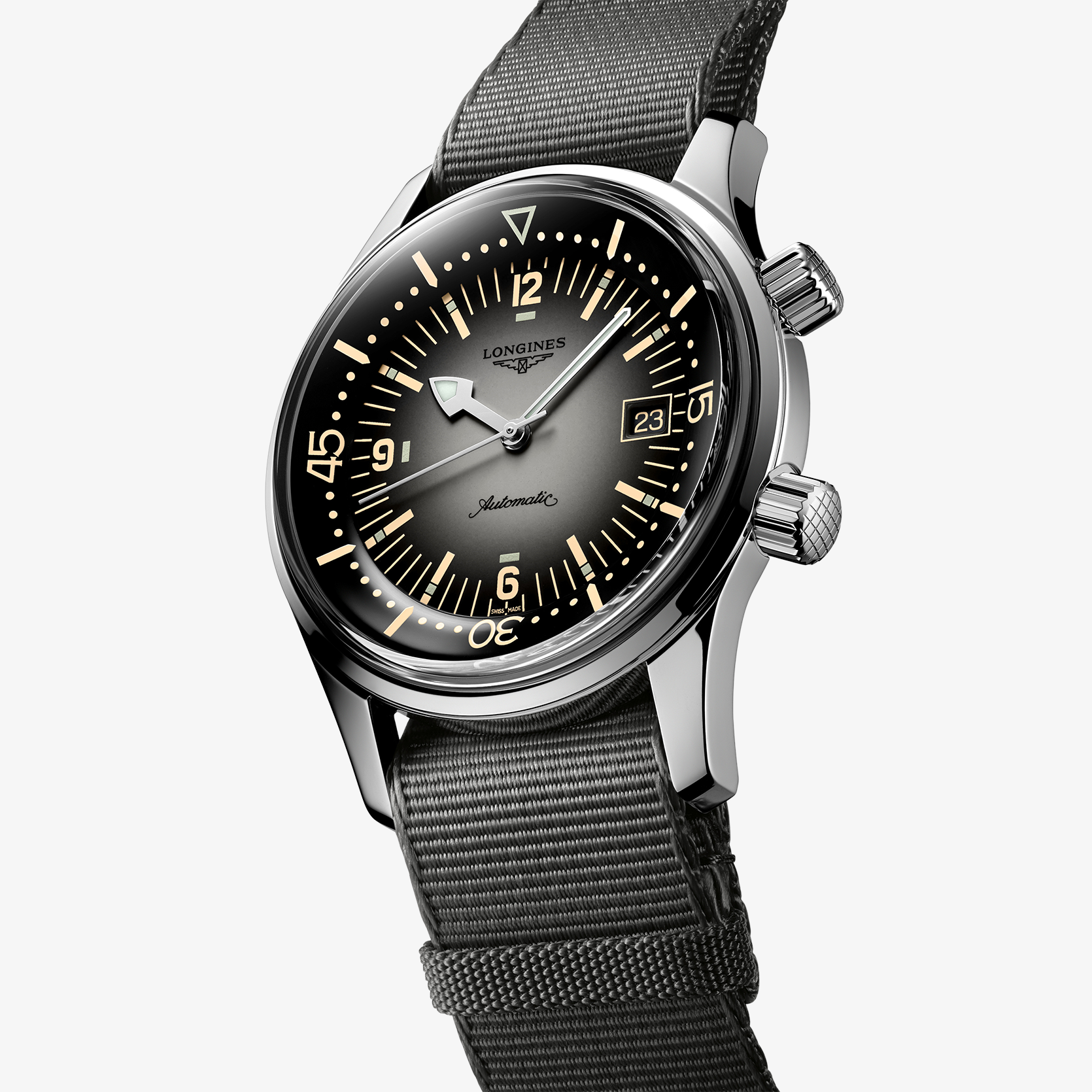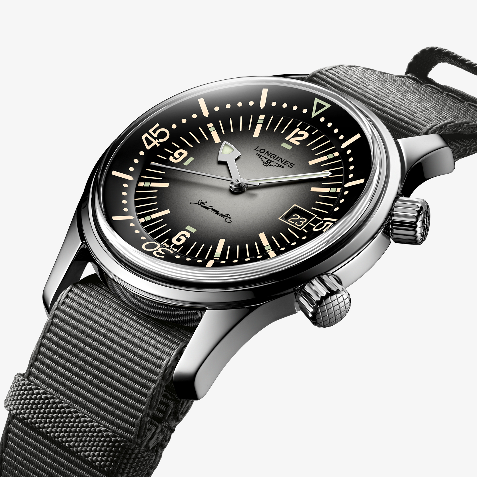 Die Longines Legend Diver wurde ursprünglich für die Erkundung der Unterwasserwelt entwickelt und ist sowohl an Land als auch unter Wasser zu Hause. Mit ihrem zeitlosen Design und ihrer bahnbrechenden Leistung ist sie seit 1959 eine echte Ikone der Uhrmacherei. Auf den ersten Blick fällt sie durch ihre zwei Kronen und die innere drehbare Lünette auf. Die von Longines erfundene Position der Lünette im Inneren des Gehäuses schützt sie vor versehentlichen Einstellungsänderungen und Stößen. Diese echten Werkzeuguhren werden von exklusiven Longines Kalibern angetrieben, die mit einer Unruhspiralfeder aus Silizium ausgestattet sind. Die Kollektion ist in einer Reihe von Größen, Materialien und Farben erhältlich.