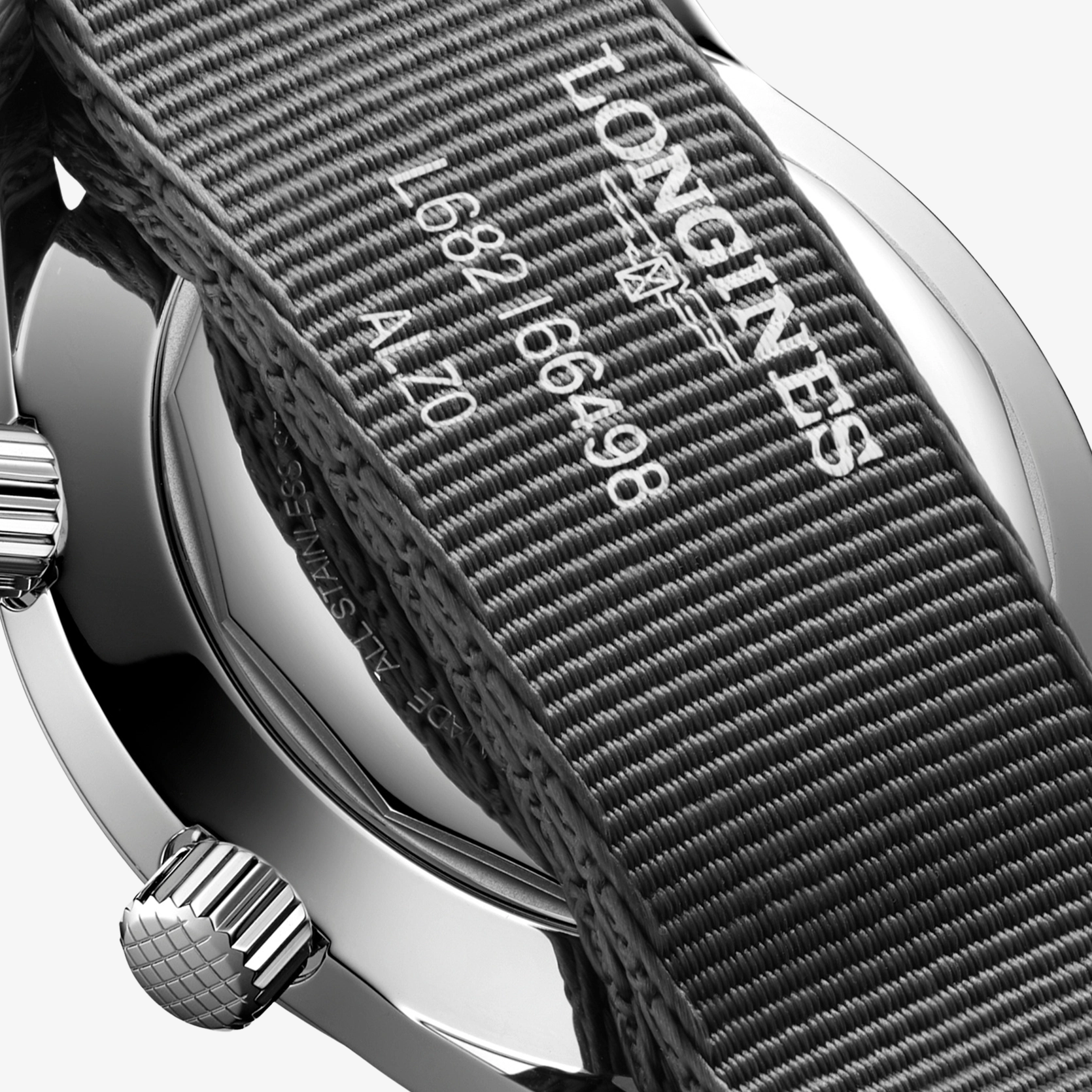 Ref. L3.774.4.70.2 - Datum, Mechanisches Uhrwerk mit Automatikaufzug, Frequenz von 25.200 Halbschwingungen pro Stunde, Gangreserve von ca. 72 Stunden. Innere drehbare Taucherlünette Verschraubte Krone, Wasserdicht bis zu einem Druck von 30 bar, Kratzfestes Saphirglas, mit mehreren Antireflexschichten auf der Unterseite. Zifferblatt: Grau, Swiss Super-LumiNova®. Synthetikarmband Armband, Mit Schließe.
