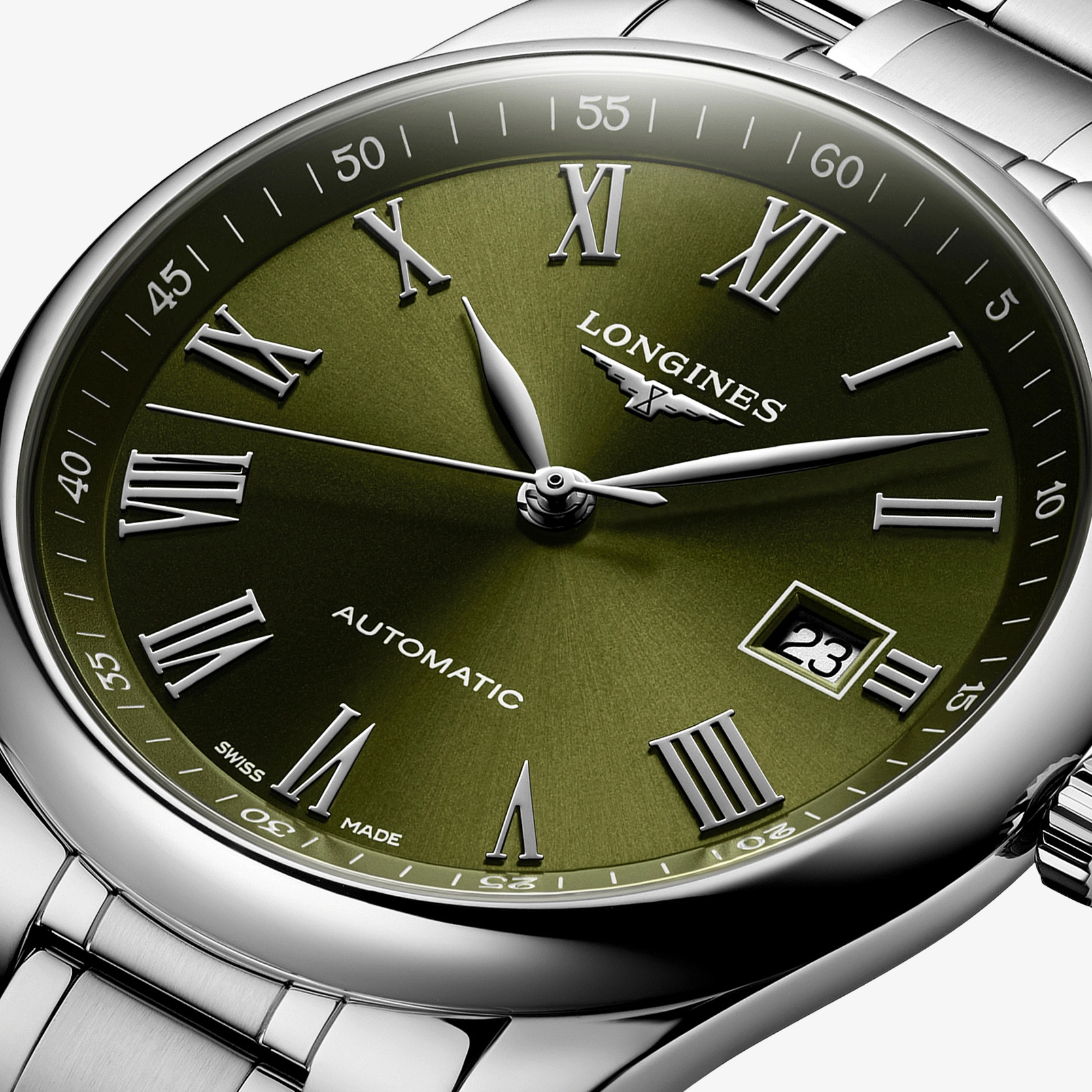 Ref. L2.793.4.09.6 - Datum, Mechanisches Uhrwerk mit Automatikaufzug, Frequenz von 25.200 Halbschwingungen pro Stunde, Gangreserve von ca. 72 Stunden. Wasserdicht bis zu einem Druck von 3 bar, Kratzfestes Saphirglas mit mehreren Antireflexschichten auf beiden Seiten. Zifferblatt: Grün. Edelstahl Armband, Mit Dreifach-Sicherheitsfaltschließe und Drückern.
