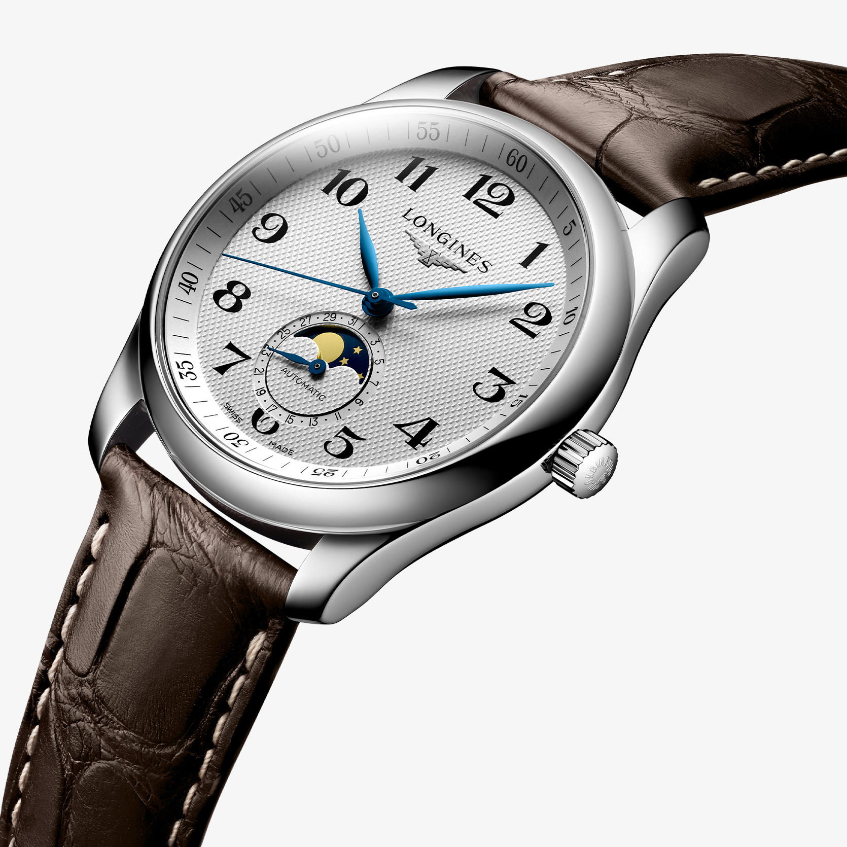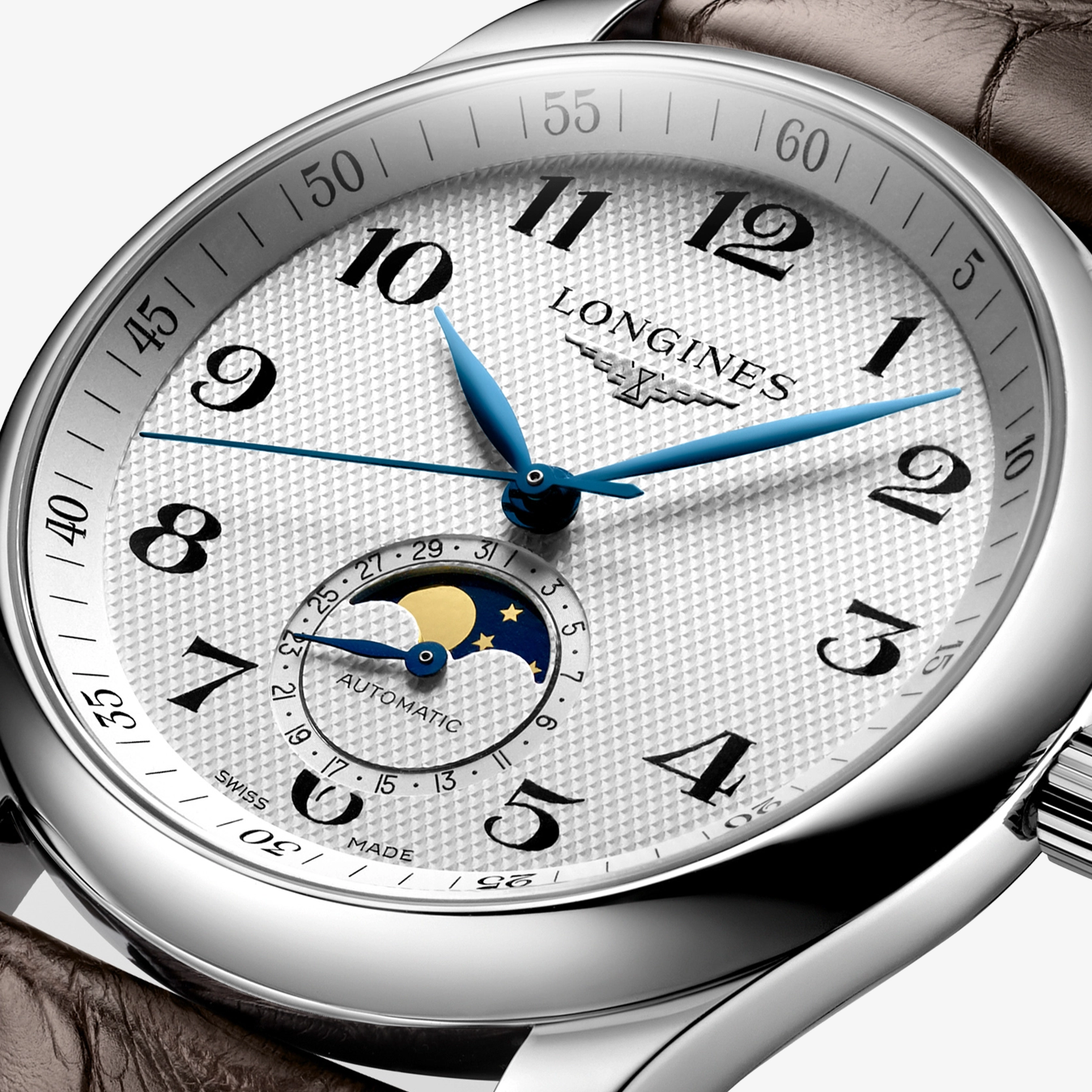 Ref. L2.909.4.78.3 - Mondphase, Mechanisches Uhrwerk mit Automatikaufzug, Frequenz von 25.200 Halbschwingungen pro Stunde, Gangreserve von ca. 72 Stunden. Wasserdicht bis zu einem Druck von 3 bar, Kratzfestes Saphirglas. Zifferblatt: Silber mit Gerstenkorn-Muster. Alligatorleder Armband, Mit Dreifach-Sicherheitsfaltschließe und Drückern.