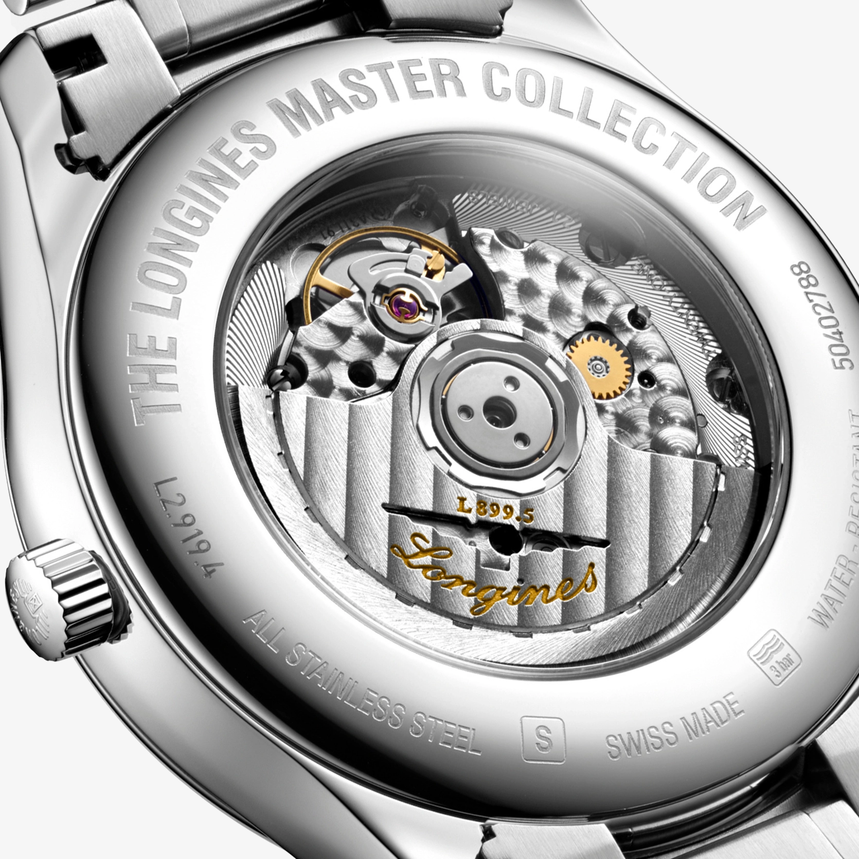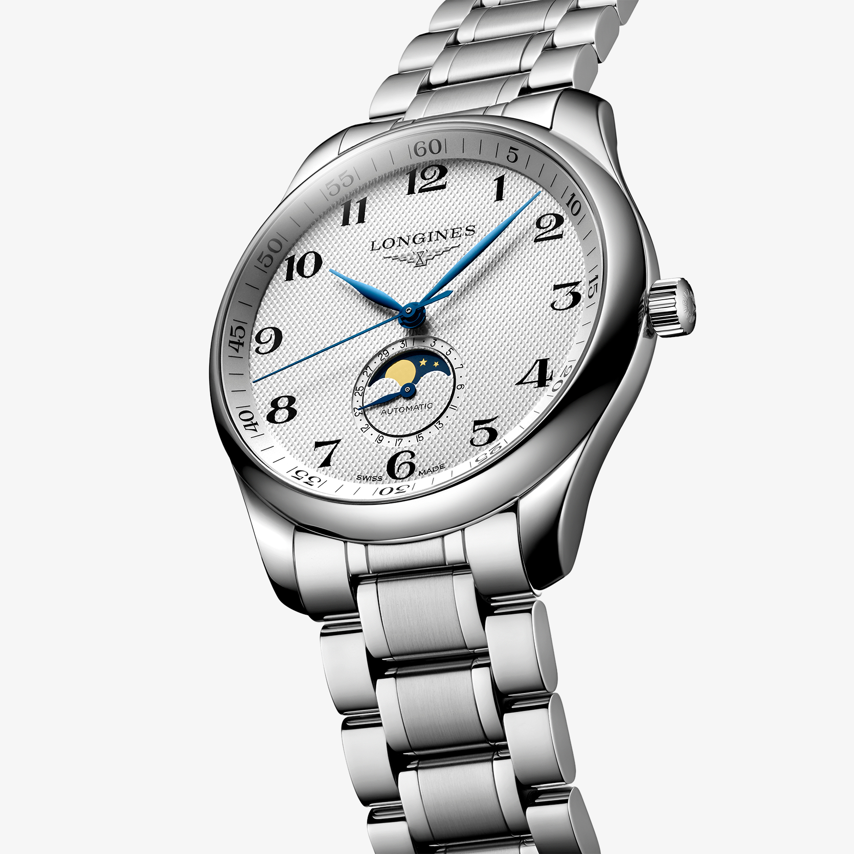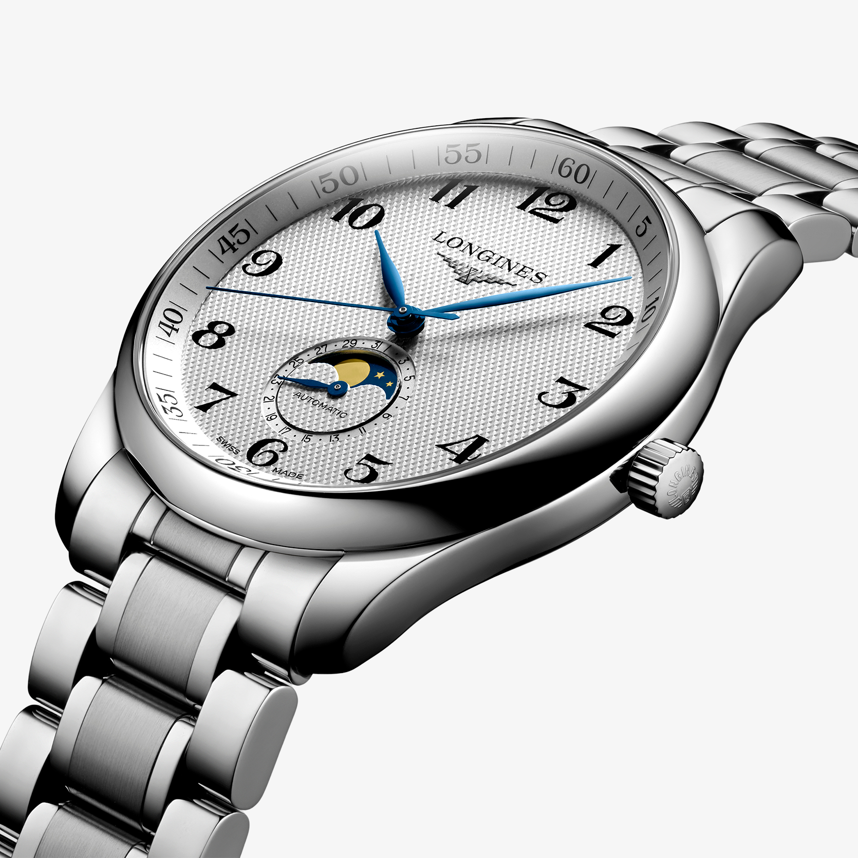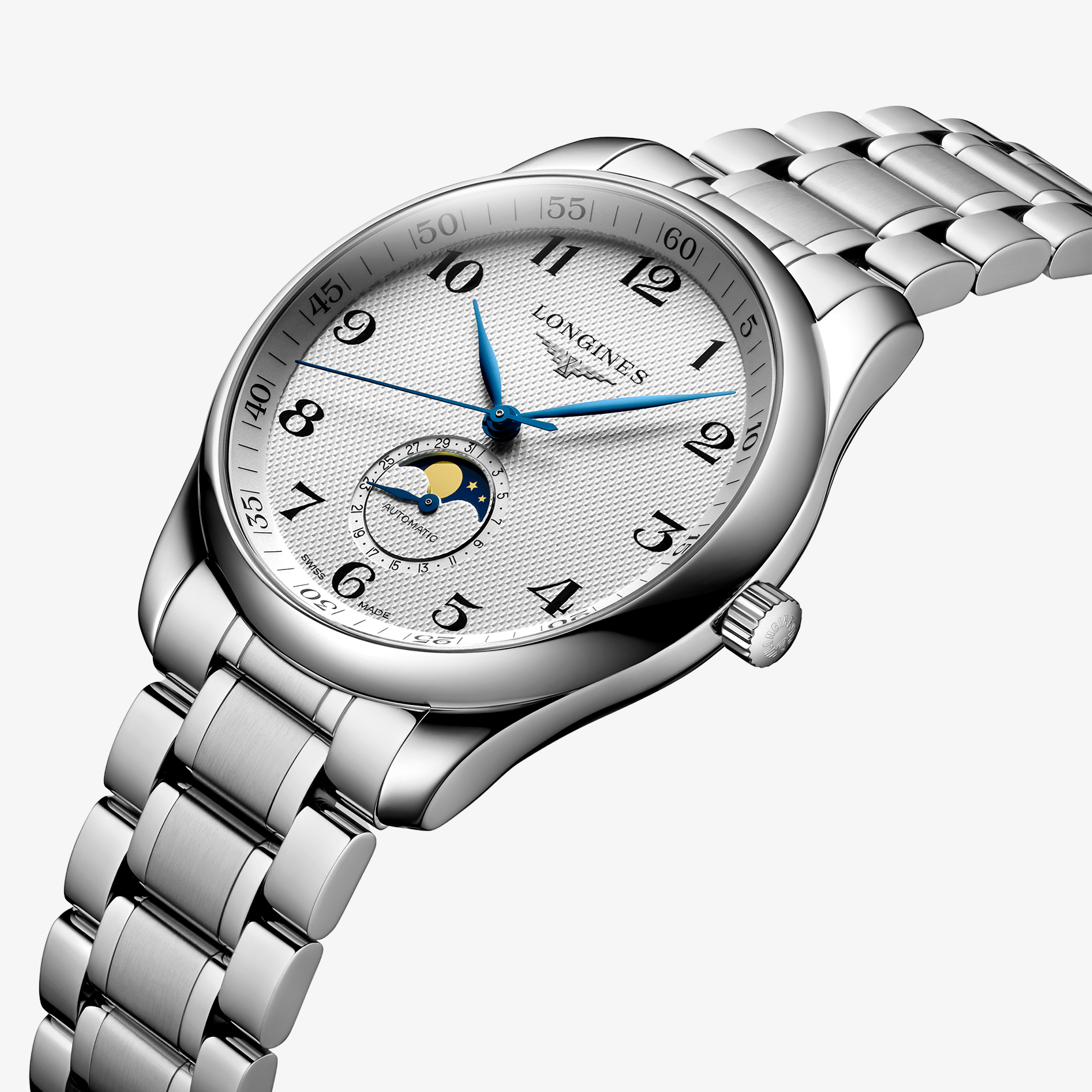 Ref. L2.919.4.78.6 - Mondphase, Mechanisches Uhrwerk mit Automatikaufzug, Frequenz von 25.200 Halbschwingungen pro Stunde, Gangreserve von ca. 72 Stunden. Wasserdicht bis zu einem Druck von 3 bar, Kratzfestes Saphirglas. Zifferblatt: Silber mit Gerstenkorn-Muster. Edelstahl Armband, Mit Dreifach-Sicherheitsfaltschließe und Drückern.