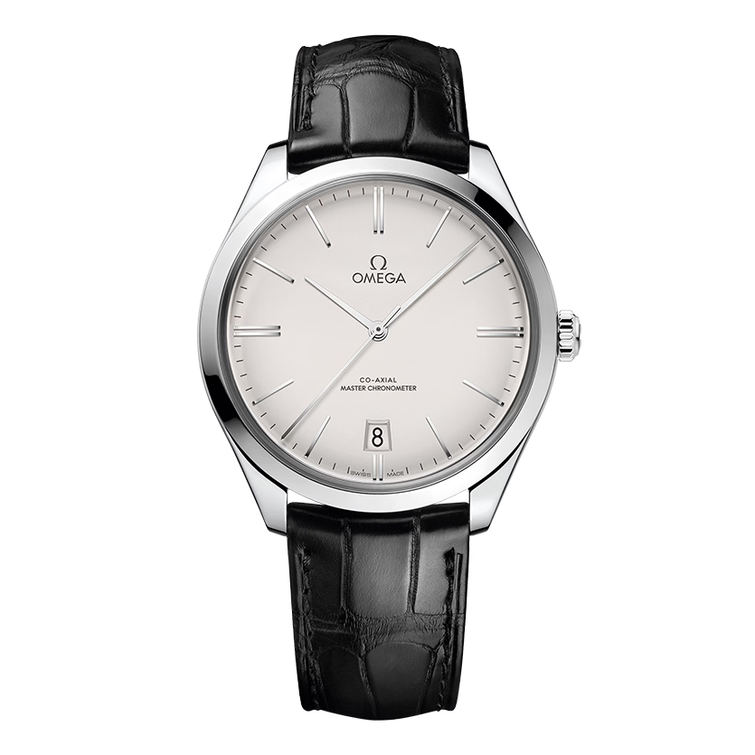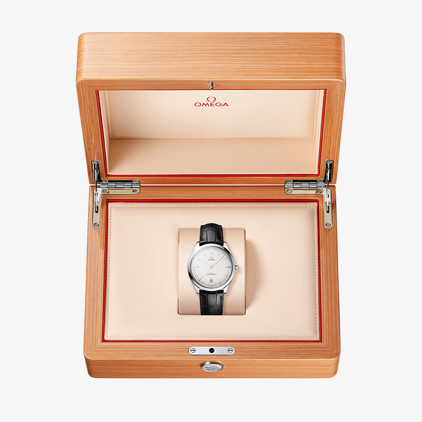 Ref. 435.13.40.21.02.001 - Die sich durch ein flaches und elegantes Gehäuse auszeichnende Trésor-Linie wurde von OMEGA erstmals im Jahr 1949 lanciert – mit dem legendären 30-mm-Kaliber im Inneren. Mehr als ein halbes Jahrhundert später beeindruckt sie noch immer mit einem der fortschrittlichsten mechanischen Uhrwerke der heutigen Zeit. Dieses Modell besitzt ein 40-mm-Gehäuse aus Edelstahl, das von einem schwarzen Lederarmband am Handgelenk gehalten wird. Das gewölbte, opalisierend-silberne Zifferblatt verfügt über ein Datumsfenster bei 6 Uhr sowie Zeiger und Indizes aus 18 K Weißgold. Angetrieben wird diese De Ville Trésor von dem OMEGA Master Co-Axial Kaliber 8910. Sie garantiert in Sachen Präzision, chronometrischer Leistung und magnetischer Widerstandskraft den höchsten Standard, den die Industrie zu bieten hat.