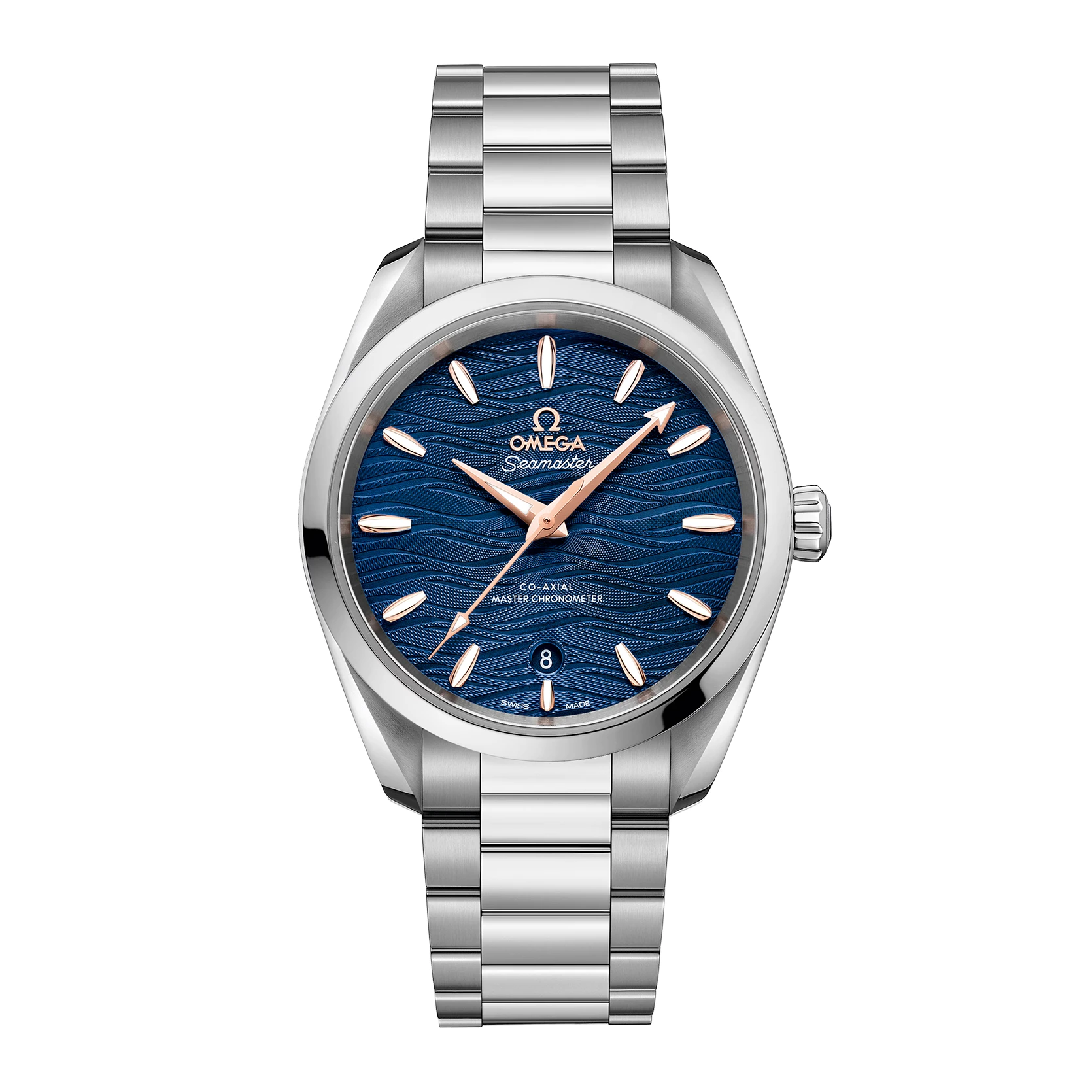 Bei diesem Modell sind das symmetrische 38-mm-Gehäuse und das integrierte Armband aus Edelstahl gefertigt. Das wellenförmige blaue Zifferblatt verfügt über ein Datumsfenster bei 6 Uhr sowie Zeiger und Indizes, die Segelbootrümpfen nachempfunden wurden, aus 18 K Sedna™-Gold. Angetrieben wird die Uhr vom OMEGA Master Chronometer-Kaliber 8800, das vom Eidgenössischen Institut für Metrologie (METAS) gemäß den höchsten Branchenstandards zertifiziert wurde.