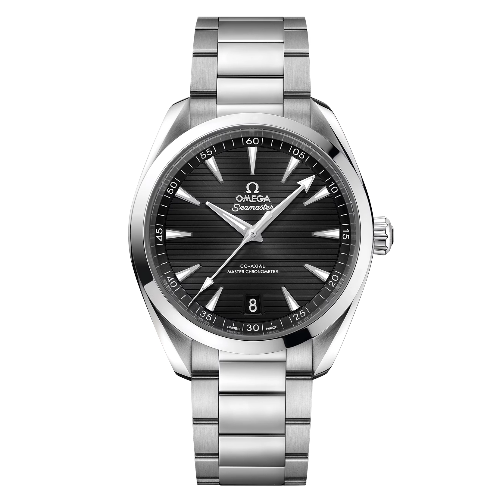 Ref. 220.10.41.21.01.001 - Die Seamaster Aqua Terra ist ein Tribut an OMEGAs großes maritimes Erbe. Das symmetrische Gehäuse dieses 41-mm-Modells besteht aus Edelstahl und ist auf der Rückseite mit einem Wellendekor versehen.