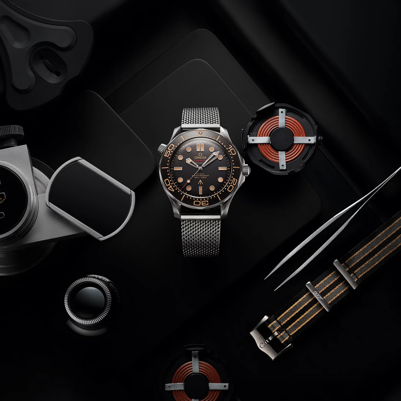 Dank der Wölbung des Saphirglases besitzt der Zeitmesser eine etwas schlankere Silhouette als die standardmäßigen Diver 300M-Modelle. Am Handgelenk gehalten wird er von einem Milanaise-Armband aus Titan Grade 2 mit einer innovativen, verstellbaren Schließe. Die 007-Edition der Diver wird von OMEGAs Co-Axial Master Chronometer Kaliber 8806 angetrieben, das in Sachen Präzision, chronometrische Leistung und - natürlich - magnetische Widerstandskraft den höchsten Standards der Industrie entspricht.