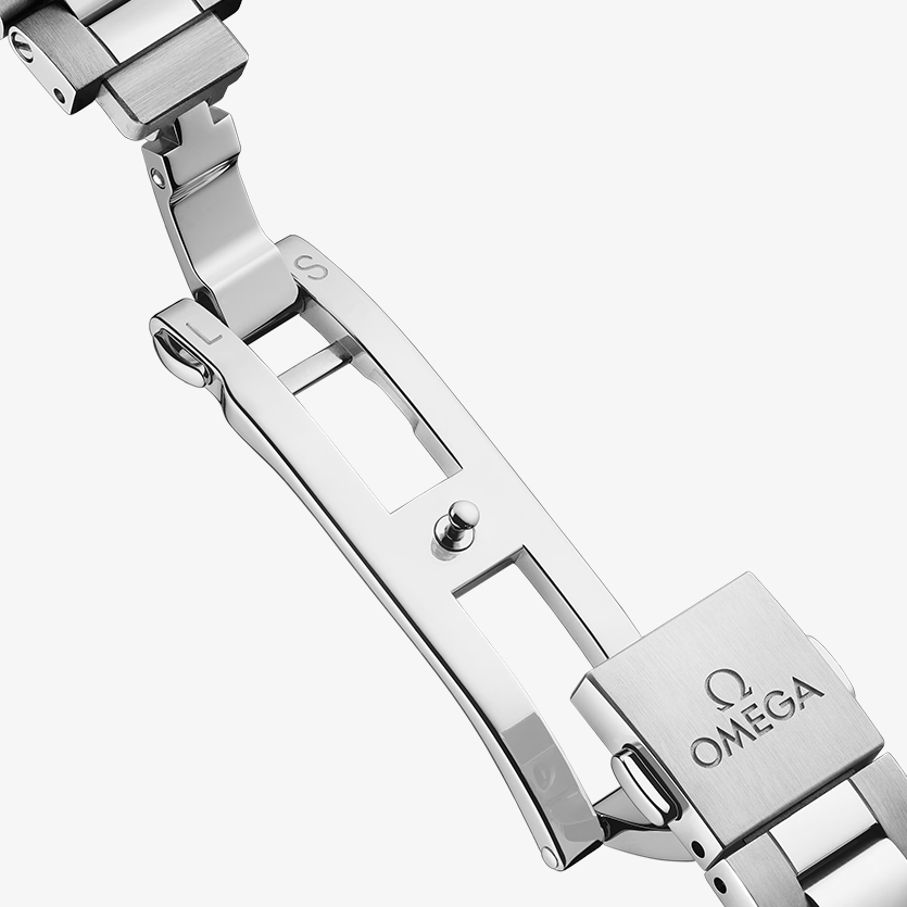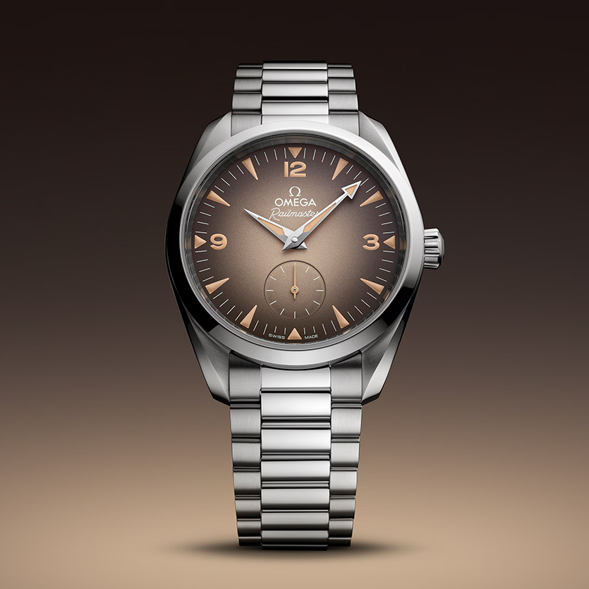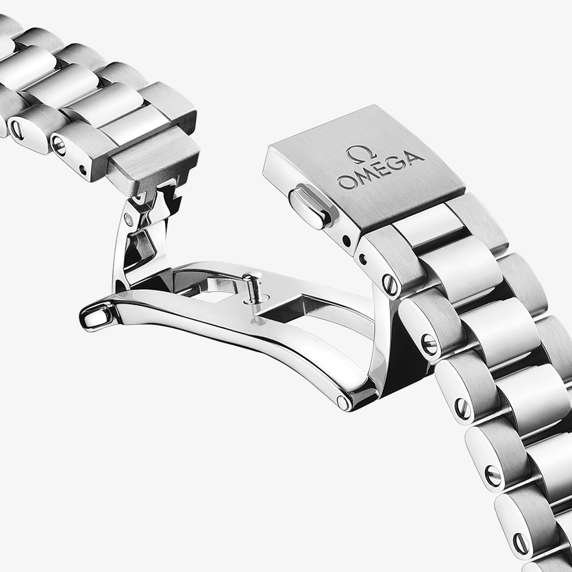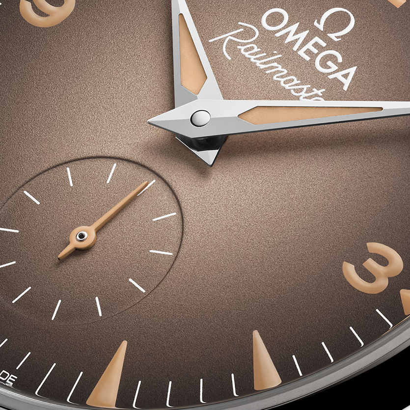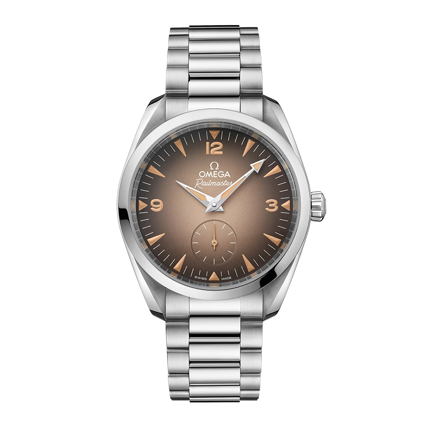 Ref. 235.10.38.20.13.001 - Die ursprüngliche OMEGA Railmaster kam 1957 auf den Markt und richtete sich an Fachleute, die bei der Eisenbahn tätig waren. Bei dieser modernen Version hat OMEGA den zeitlosen Look beibehalten und das Design mit einer neuen Farbe sowie einem modernen Präzisionsstandard aktualisiert. Das symmetrische 38-mm-Gehäuse ist gebürstet und poliert und wird von einem integrierten Armband mit Komfortverschluss sowie gebürsteten und polierten Gliedern am Handgelenk gehalten. In Anlehnung an die gut ablesbare Anzeige der Original Railmaster zeigt sich das Zifferblatt dieses Modells in Beige mit schwarzem Farbverlauf sowie mit großen Ziffern und Stundenindizes in „Vintage“-Super-LumiNova. Bei 6 Uhr findet sich außerdem eine Anzeige der kleinen Sekunde mit einem beige lackierten Zeiger. Auch setzt die Uhr das antimagnetische Erbe der Railmaster fort – dank des Co-Axial Master Chronometer Kalibers 8804. Das Uhrwerk ist bis zu 15.000 Gauß magnetresistent und kann durch das transparente Saphirglas auf dem Gehäuseboden bewundert werden.