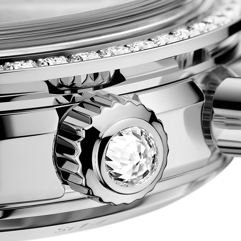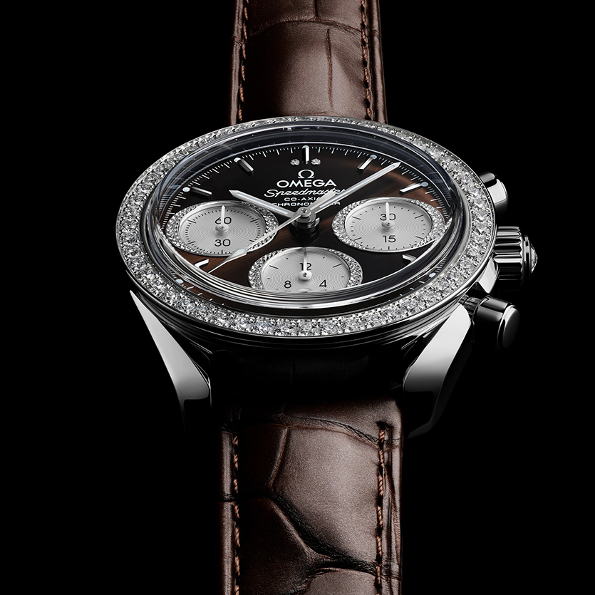 Dieses Modell mit einem vollständig polierten Gehäuse aus Edelstahl besitzt eine mit 52 Diamanten besetzte Lünette und eine polierte Krone, in die ein einzelner Diamant gefasst wurde. Das Zifferblatt mit brauner PVD-Beschichtung verfügt über horizontal ovale Hilfszifferblätter mit silberfarbener Beschichtung und ein vertikal ovales Datumsfenster bei 6 Uhr. Die Zeiger für Stunden und Minuten sind diamantpoliert, rhodiniert und mit weißer, grün leuchtender Super-LumiNova gefüllt. Am Handgelenk gehalten wird die Uhr von einem braunen Lederarmband mit einer Faltschließe aus Edelstahl. Ihr verschraubter Gehäuseboden ist mit einem eingeprägten Seepferdchen-Medaillon versehen. Für den Antrieb sorgt das OMEGA Co-Axial Kaliber 3330.