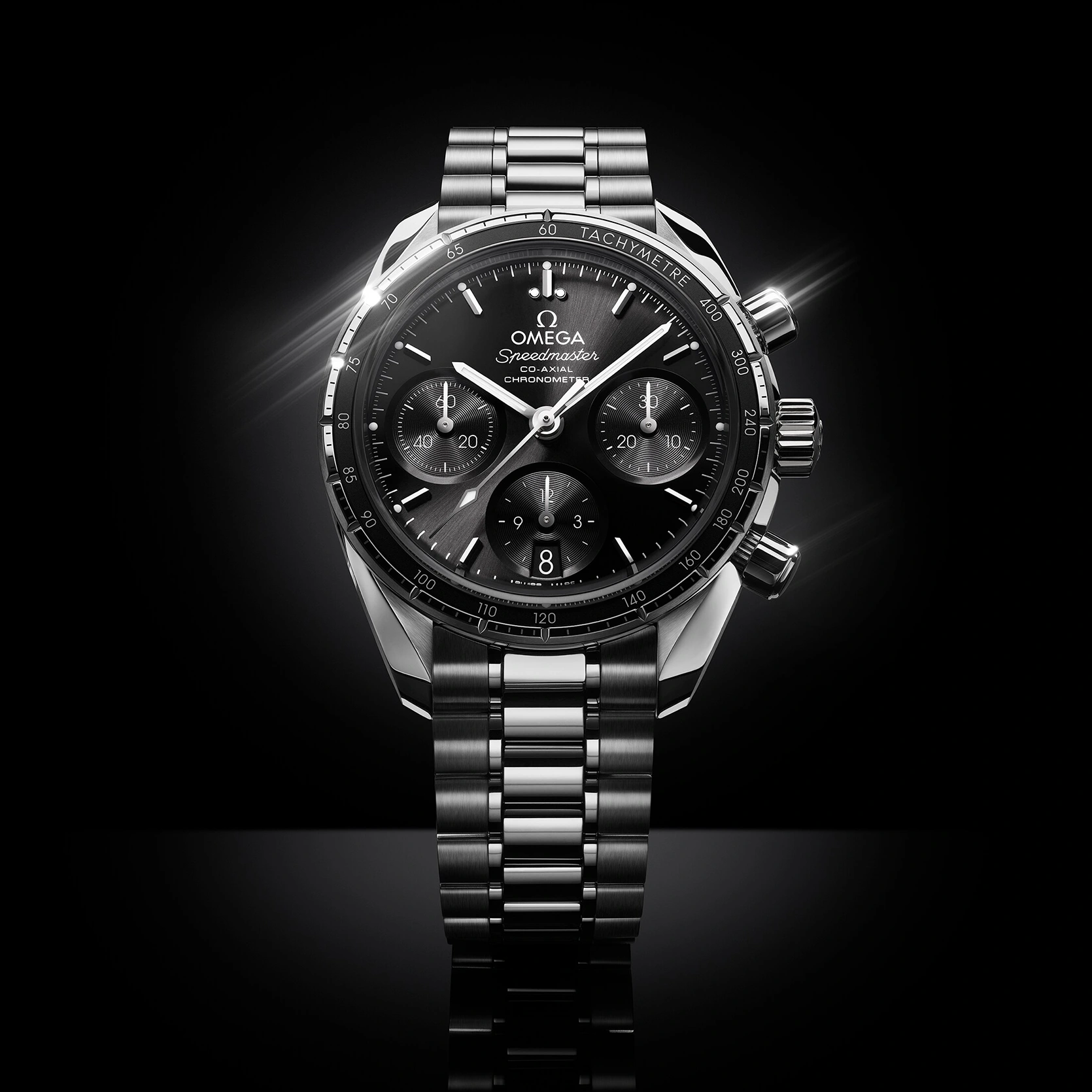 Ref. 324.30.38.50.01.001 - Bei der Kreation der Speedmaster 38-mm-Kollektion wurde der Fokus verstärkt auf Schlichtheit, Größe und Farbgestaltung gelegt. Dennoch hat sich OMEGAs berühmtester Zeitmesser seinen Stil und sein Vermächtnis bewahrt.