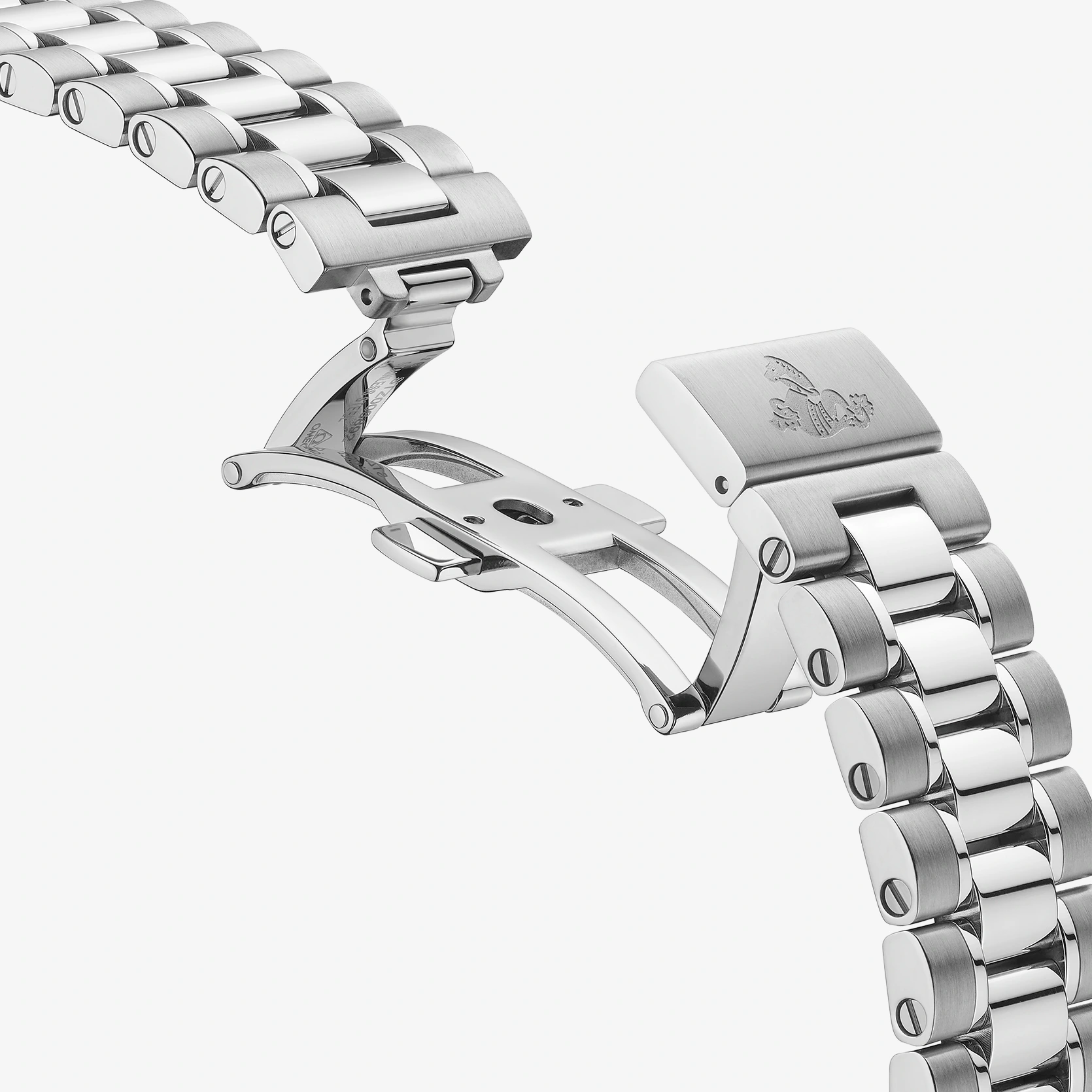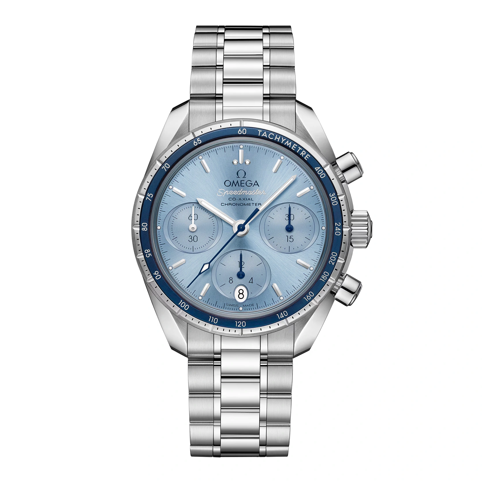 Dieses Modell verfügt über ein Gehäuse aus Edelstahl und eine Lünette, zu der eine Tachymeterskala auf einem blauen Aluminiumring gehört. Das blaue Zifferblatt mit Sonnenschliff ist mit horizontal ausgerichteten ovalen Hilfszifferblättern und einem vertikal ausgerichteten ovalen Datumsfenster bei 6 Uhr bestückt. Während die Indizes rhodiniert sind, sind die Zeiger entweder ebenfalls rhodiniert oder aber blau. Die Uhr wartet mit einem Edelstahlarmband sowie einem Seepferdchen-Medaillon auf dem Gehäuseboden auf und wird von OMEGAs Co-Axial Kaliber 3330 angetrieben.