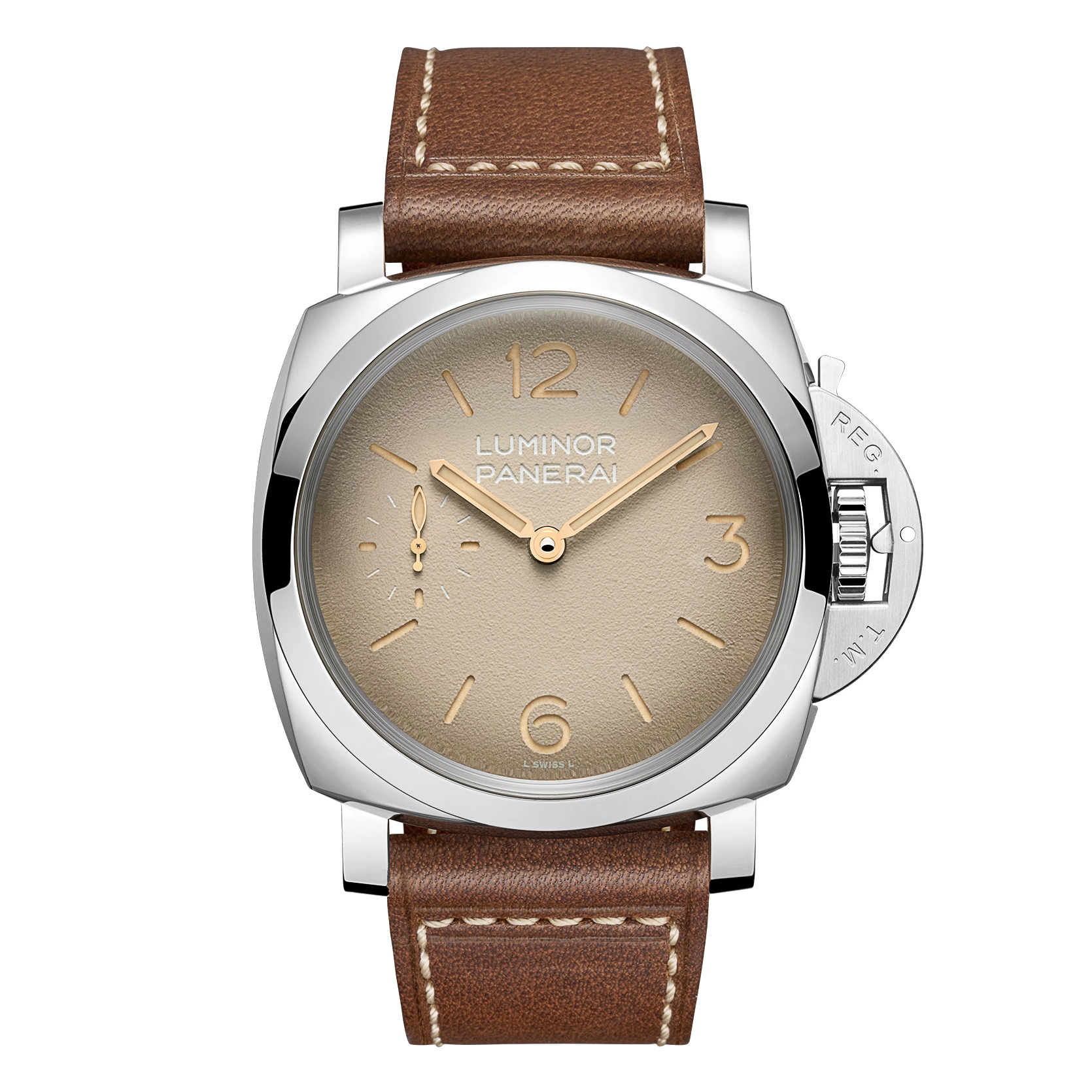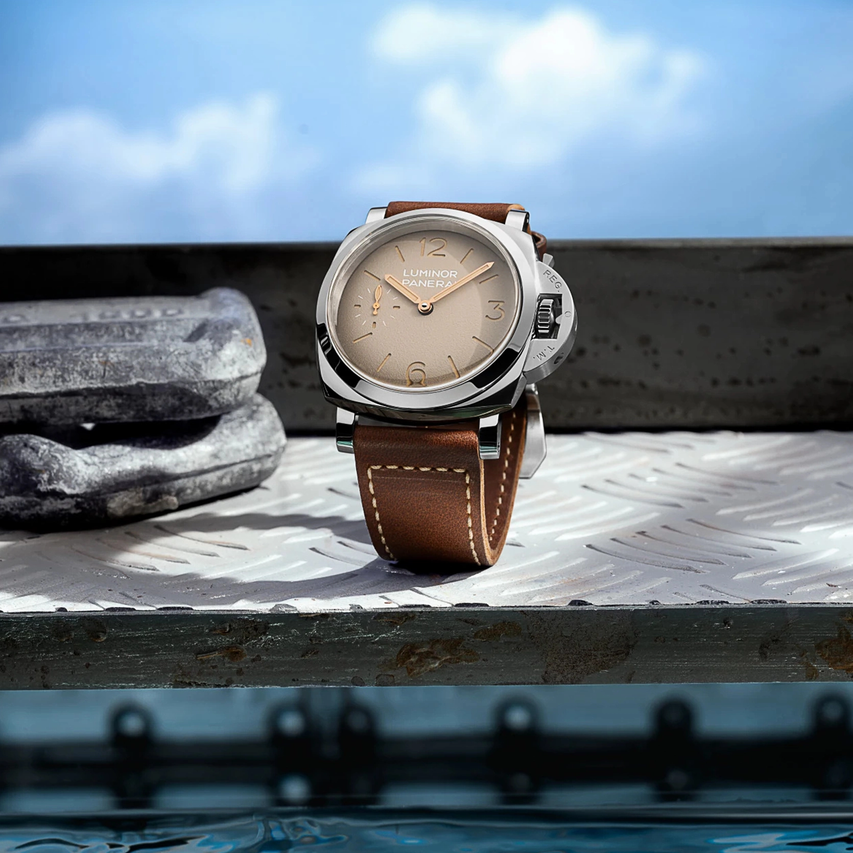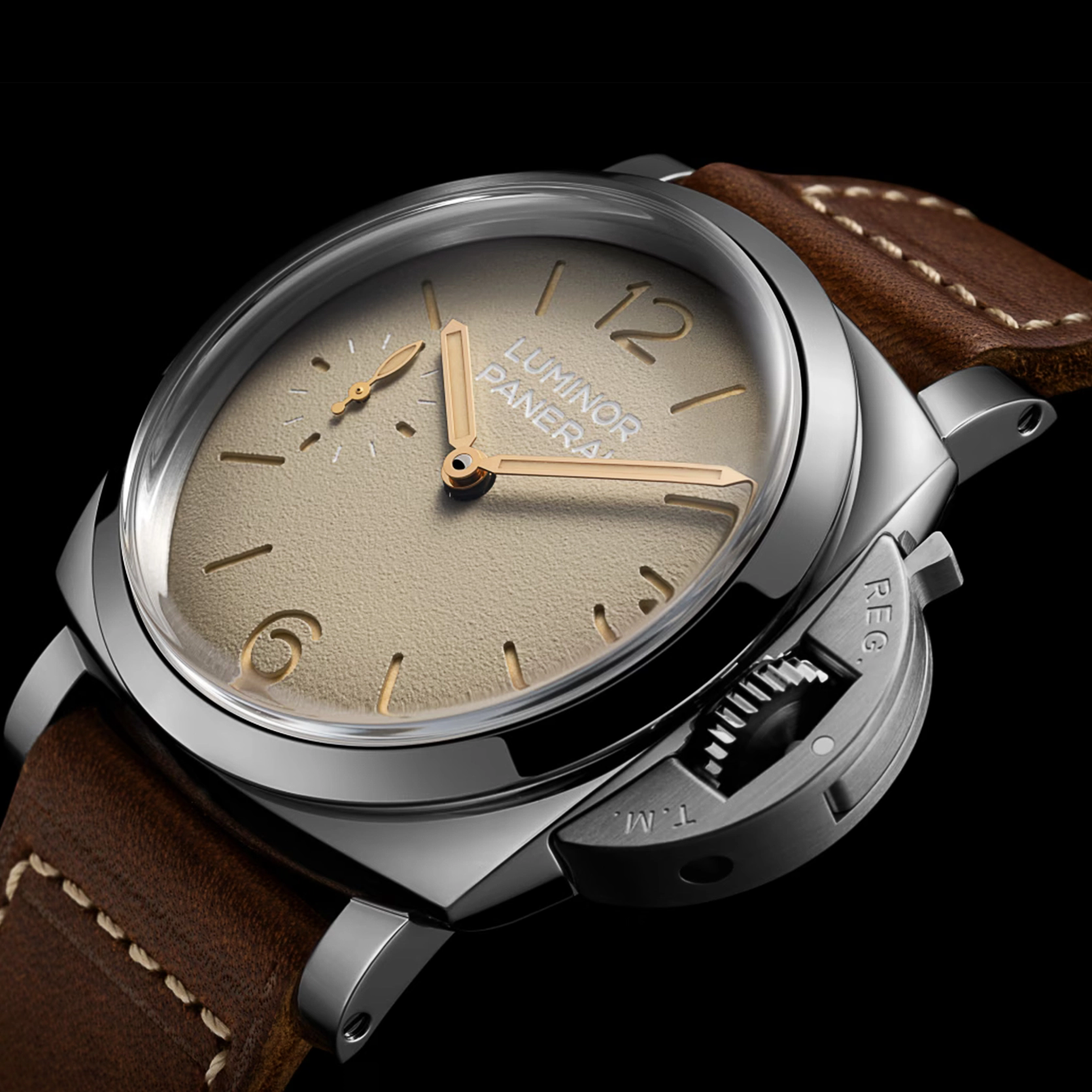 Ref. PAM01735 - Die Luminor PAM01735 greift die Designmerkmale der ersten Luminor Modelle für die italienische Marine in besonders authentischer Form auf, getragen von einem 47-mm-Gehäuse und einem markanten „tropischen“ Zifferblatt. In Anlehnung an die Referenz 6152/1 aus den 1960ern spiegeln das 47 mm große Stahlgehäuse, das gewölbte Glas und das Sandwich-Zifferblatt die funktionalen Lösungen wider, die für Unterwassereinsätze entwickelt wurden, bei denen Ablesbarkeit und Zuverlässigkeit entscheidend waren. Das „tropische“ Zifferblatt orientiert sich an historischen Panerai Uhren, deren ursprünglich schwarze Zifferblätter sich im Laufe der Zeit durch Sonnenlicht und Gebrauch in warme Farbtöne verwandelt haben. Ein Zeitmesser, konzipiert als robustes Instrument und definiert durch jene Elemente, die die Luminor bis heute zu einer unverwechselbaren Ikone machen.