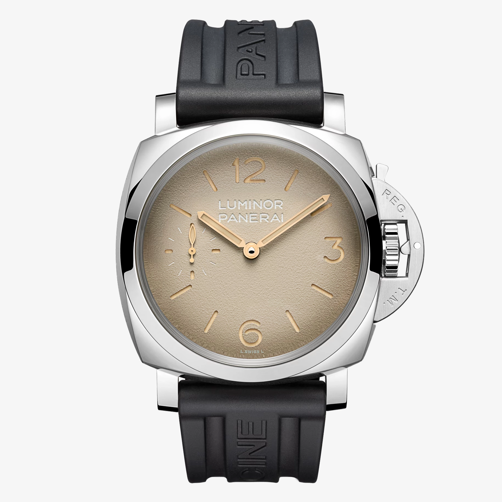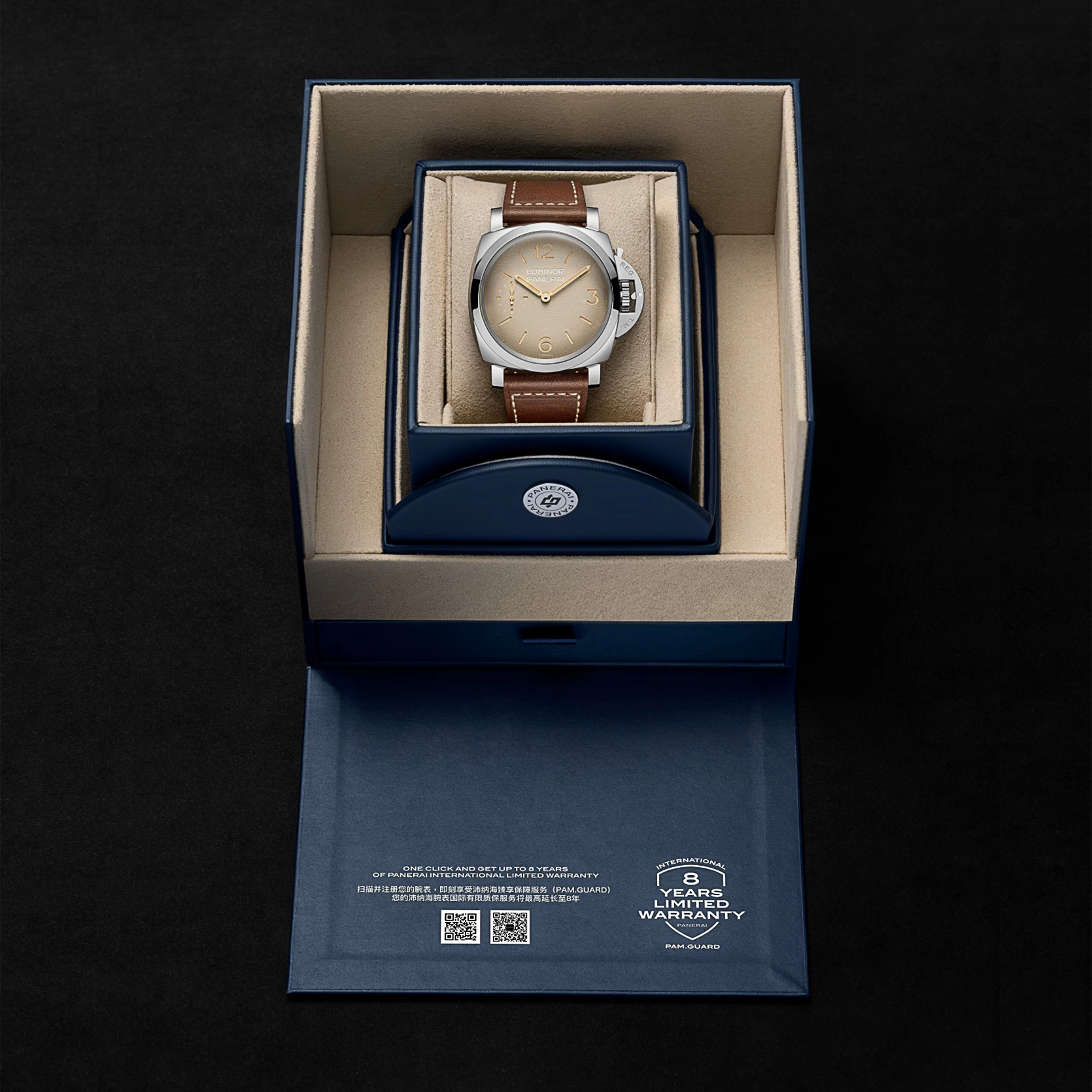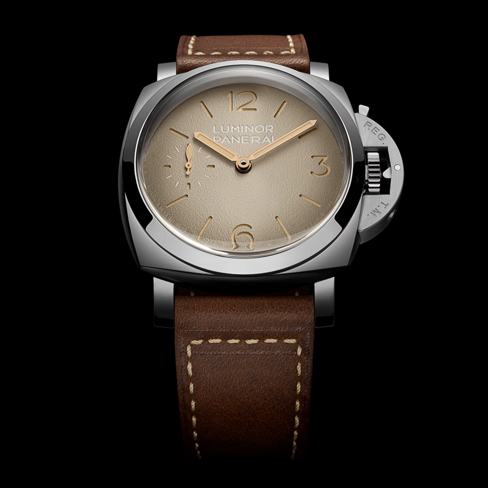 Ref. PAM01735 - Die Luminor PAM01735 greift die Designmerkmale der ersten Luminor Modelle für die italienische Marine in besonders authentischer Form auf, getragen von einem 47-mm-Gehäuse und einem markanten „tropischen“ Zifferblatt. In Anlehnung an die Referenz 6152/1 aus den 1960ern spiegeln das 47 mm große Stahlgehäuse, das gewölbte Glas und das Sandwich-Zifferblatt die funktionalen Lösungen wider, die für Unterwassereinsätze entwickelt wurden, bei denen Ablesbarkeit und Zuverlässigkeit entscheidend waren. Das „tropische“ Zifferblatt orientiert sich an historischen Panerai Uhren, deren ursprünglich schwarze Zifferblätter sich im Laufe der Zeit durch Sonnenlicht und Gebrauch in warme Farbtöne verwandelt haben. Ein Zeitmesser, konzipiert als robustes Instrument und definiert durch jene Elemente, die die Luminor bis heute zu einer unverwechselbaren Ikone machen.