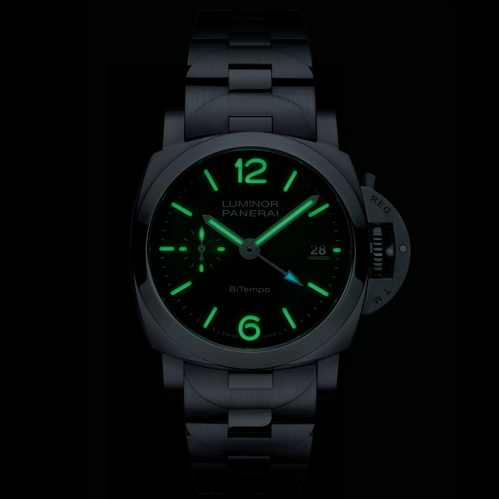 Kaliber P.900/GMT, 12 ½ Linien, 5,2 mm stark, 23 Steine, 28.800 Halbschwingungen/Stunde, Incabloc®-Stoßsicherung, ein Federhaus, 171 Bauteile