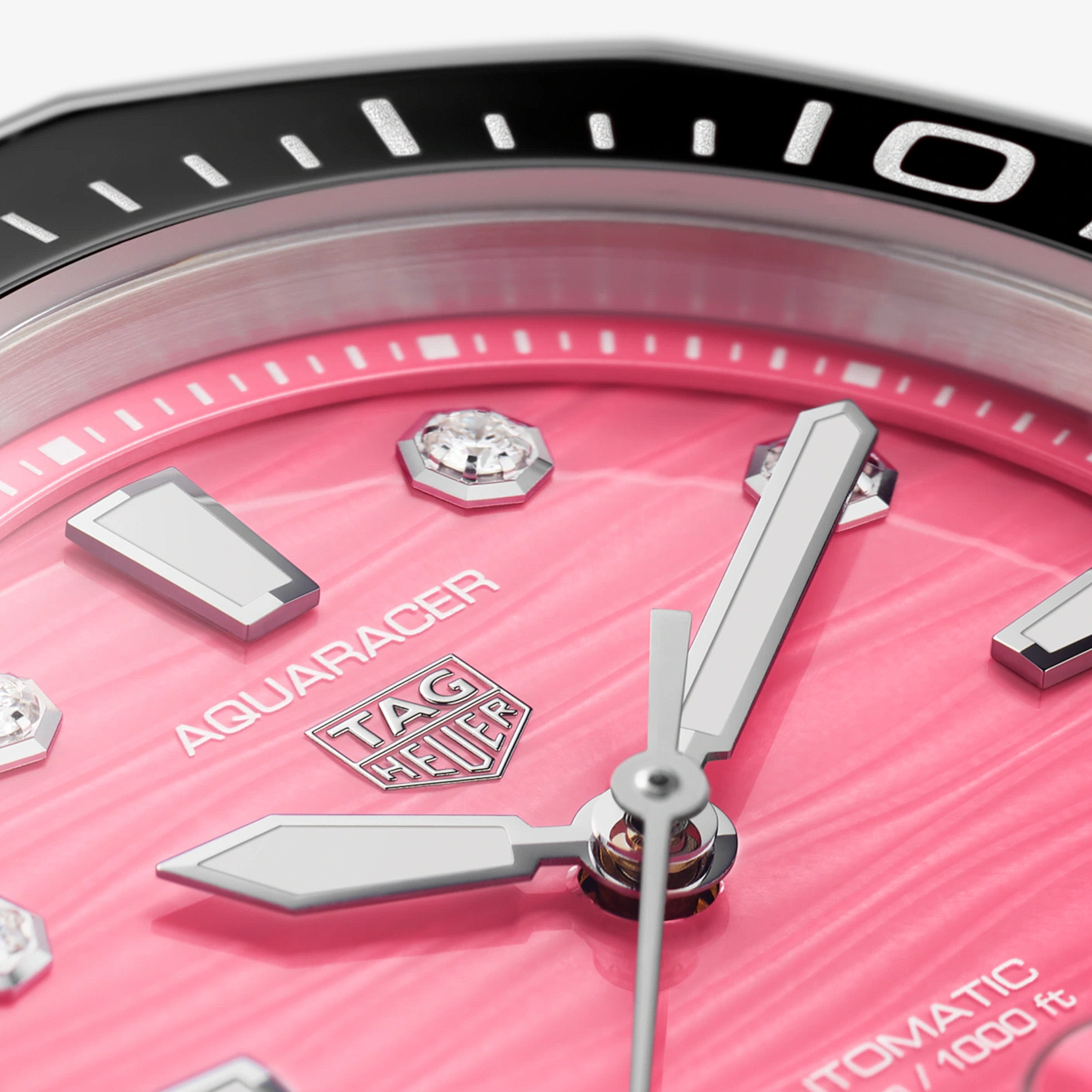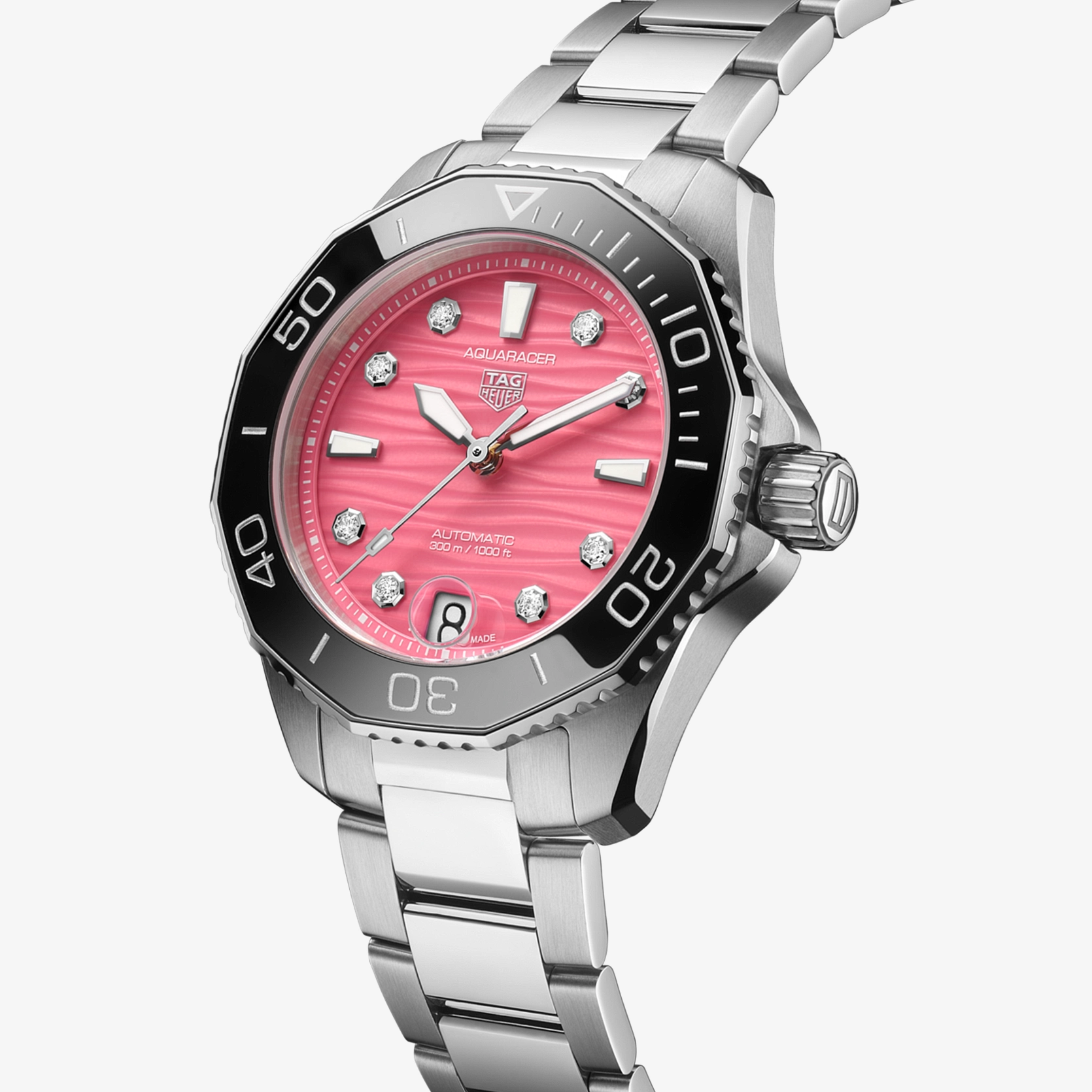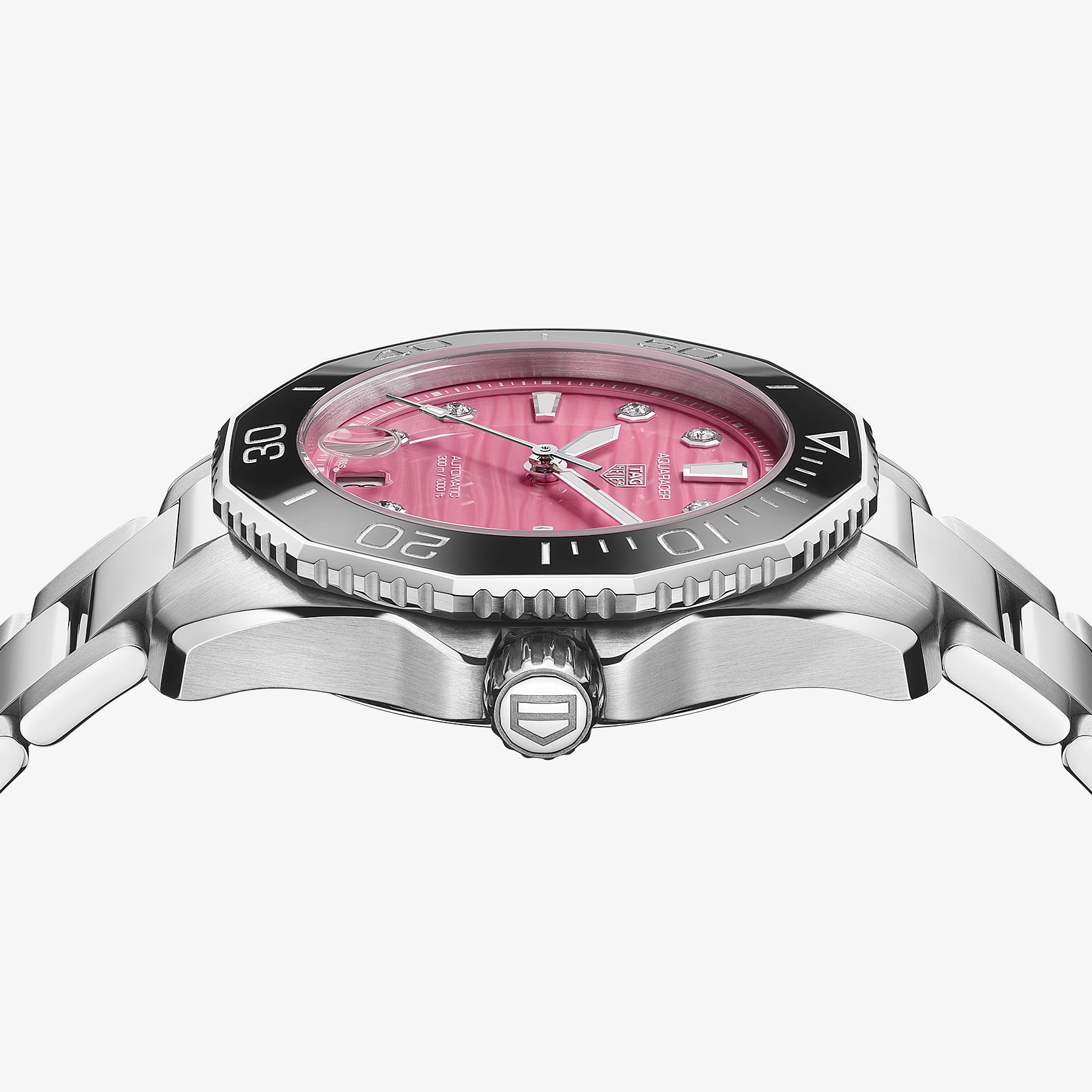 Ref. WBP231J.BA0618 - Diese TAG Heuer Aquaracer ist eine echte Taucheruhr, die mit ihrem 36-mm-Gehäuse und einem neuen Zifferblatt in kräftigem Rosa hohe Wellen schlägt. Das druckfeste Profimodell mit Wellenmotiv hält allen Bedingungen stand und ist ein unverzichtbarer Verbündeter beim Erreichen Ihrer Ziele.