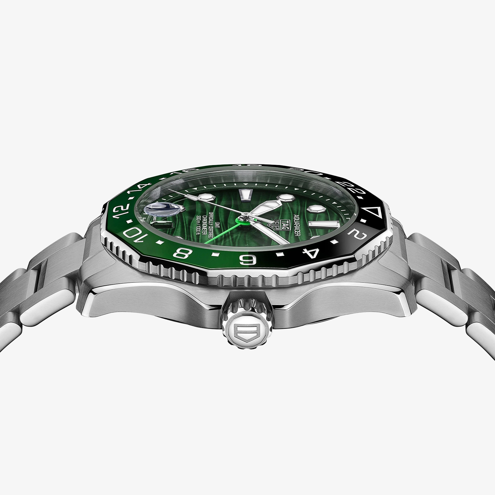 Das intensiv grüne, gebürstete Zifferblatt mit Sonnenstrahleneffekt ist mit weißen Super-LumiNova®-gefüllten Zeigern und Indizes sowie einem unverwechselbaren hellgrünen GMT-Zeiger ausgestattet. Das Gehäuse ist aus fein gebürstetem und poliertem Edelstahl gefertigt, die bidirektionale Lünette verfügt über eine ergonomische Einlage aus schwarzer und grüner Keramik mit einer 24-Stunden-Skala. Das COSC-zertifizierte Calibre TH31-03 mit integrierter GMT-Funktion sorgt dafür, dass Sie die Zeit im Blick behalten, egal wohin Sie Ihre Abenteuer führen.