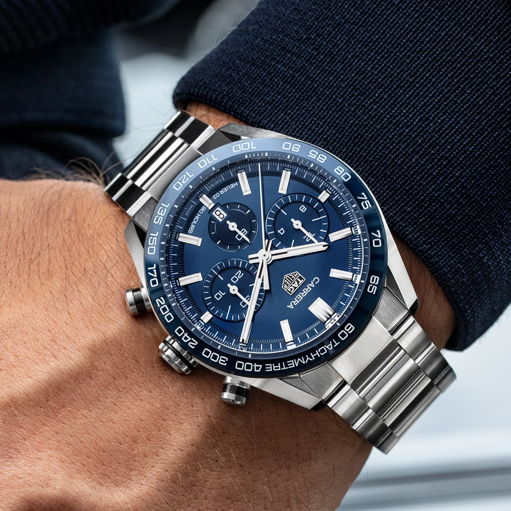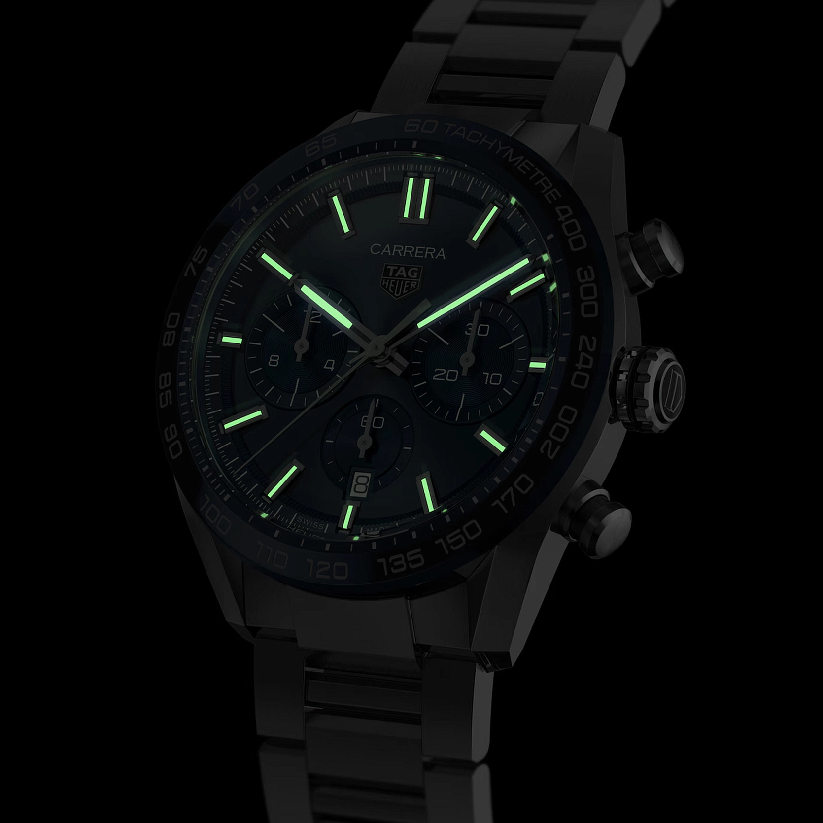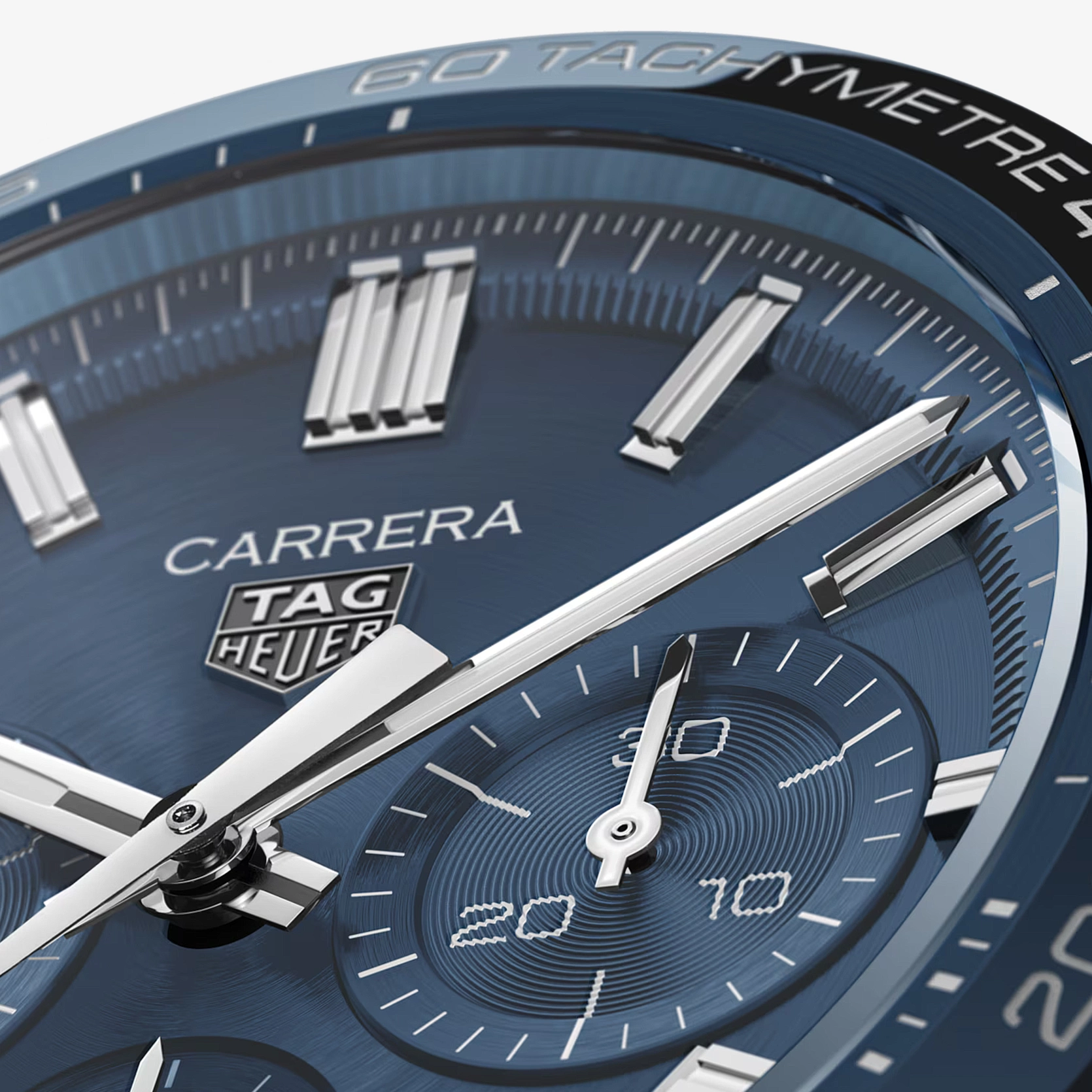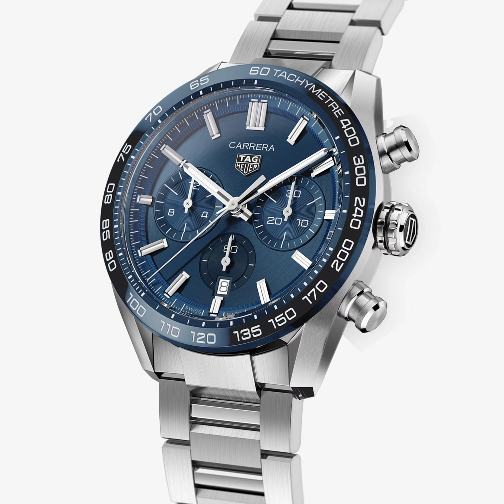 Ref. CBN2A1A.BA0643 - Eine sportlich-elegante TAG Heuer Carrera mit einem 44-mm-Gehäuse aus fein gebürstetem, poliertem Edelstahl mit blauem Zifferblatt und H-förmigem Armband aus Edelstahl. Unser hauseigenes Automatikwerk TH20-00 vereint Luxus und Technik.