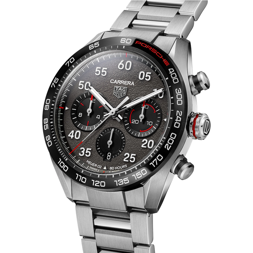 Ref. CBN2A1F.BA0643 - Vereint in dem Antrieb zur Innovation und geprägt durch die gemeinsame Geschichte im Rennsport, steht die TAG Heuer Carrera Porsche Chronograph für die perfekte Verschmelzung der Universen von Porsche und TAG Heuer. Eine Uhr aus Edelstahl mit zahlreichen Verbindungen der für Porsche und TAG Heuer typischen Formen, Farben und Effekte, die speziell für diese Uhr kreiert wurden – ein wahres Zeugnis der Leidenschaft für die Straße.