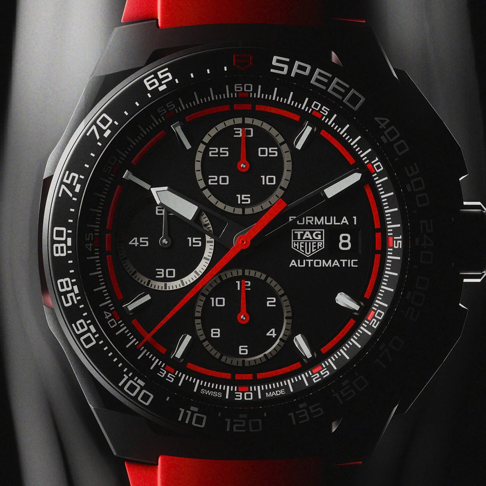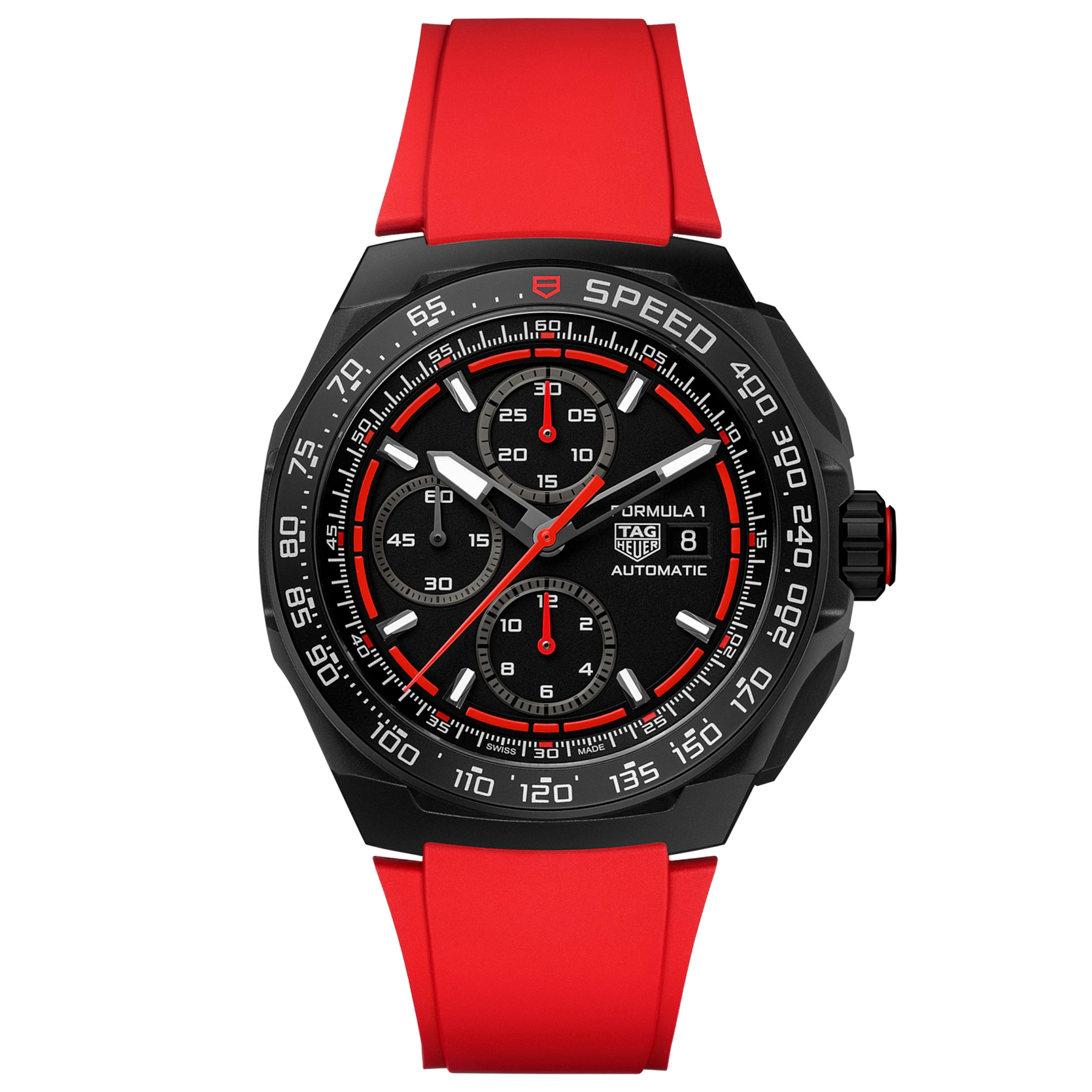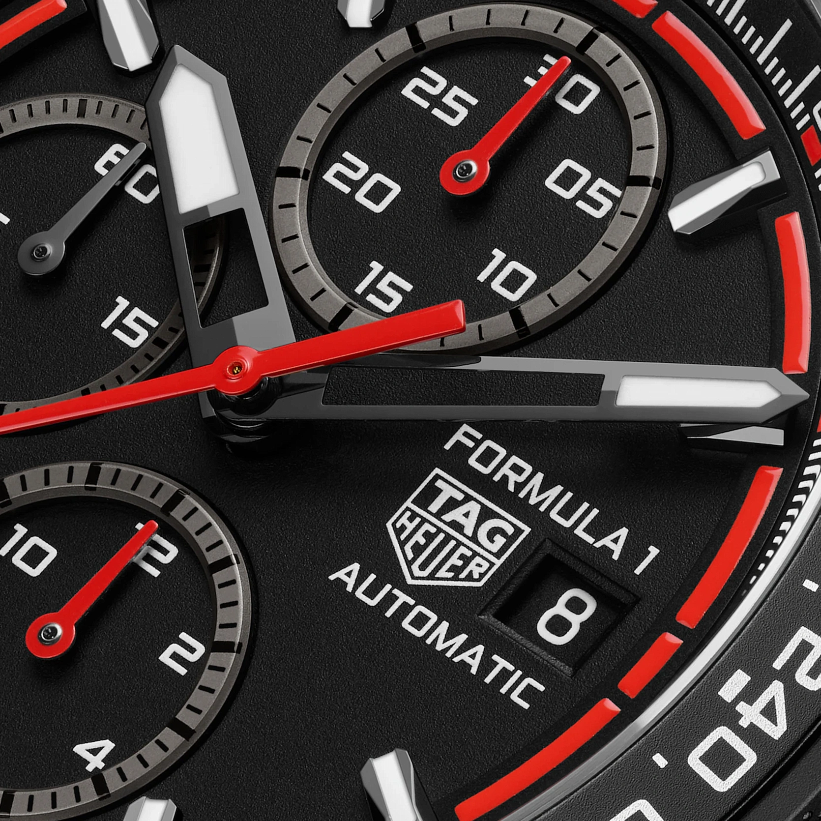 Ref. CBZ2085.FT8093 - Der von der Intensität des Rennsports inspirierte TAG Heuer Formula 1 Chronograph mit einem Durchmesser von 44 mm richtet sich an echte Rennsportfans. Mit seinem schlanken Gehäuse aus Titan Grad 2 und den leuchtend roten Akzenten ist dieser Zeitmesser auf und neben der Rennstrecke ein kühnes Stilbekenntnis.